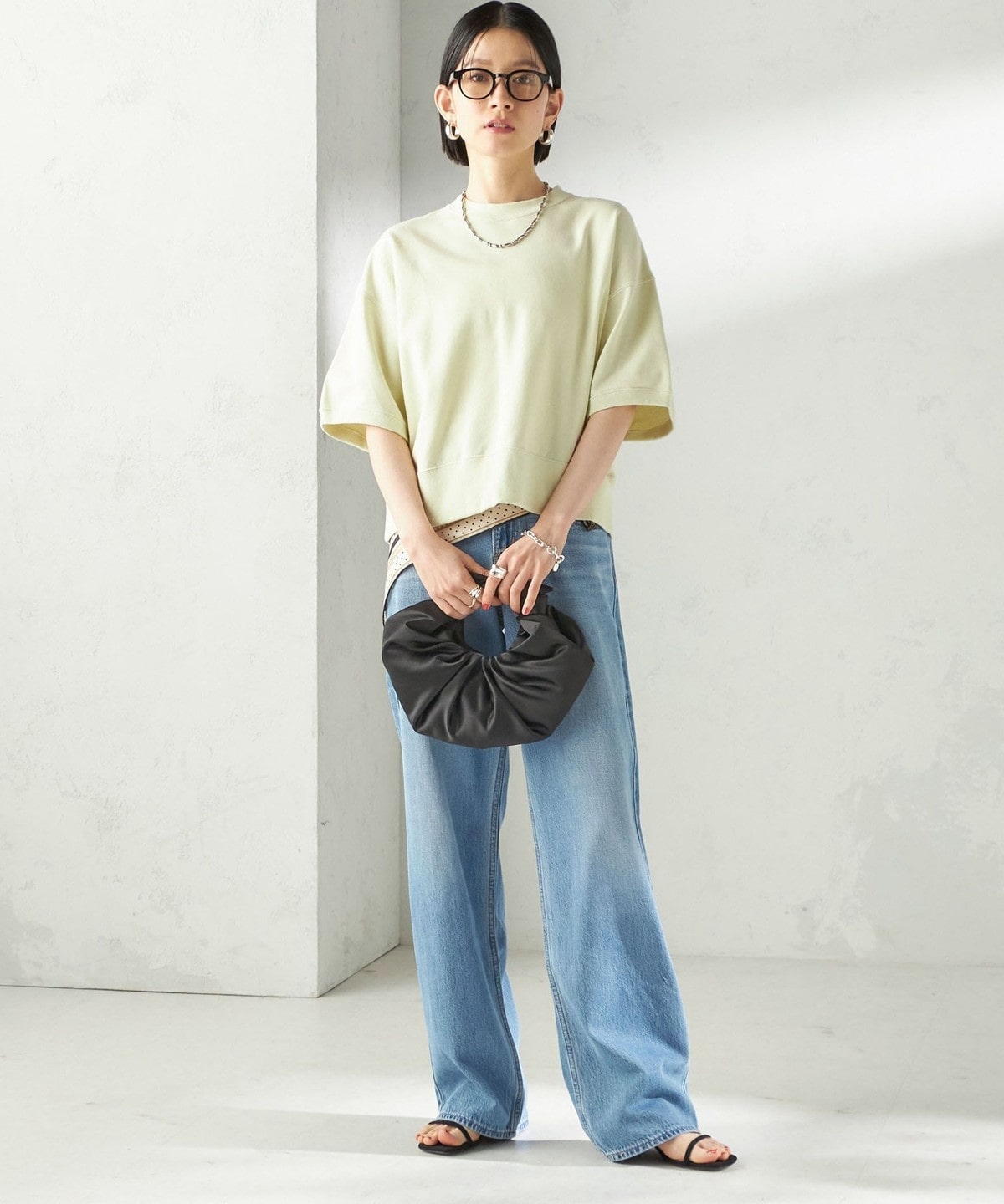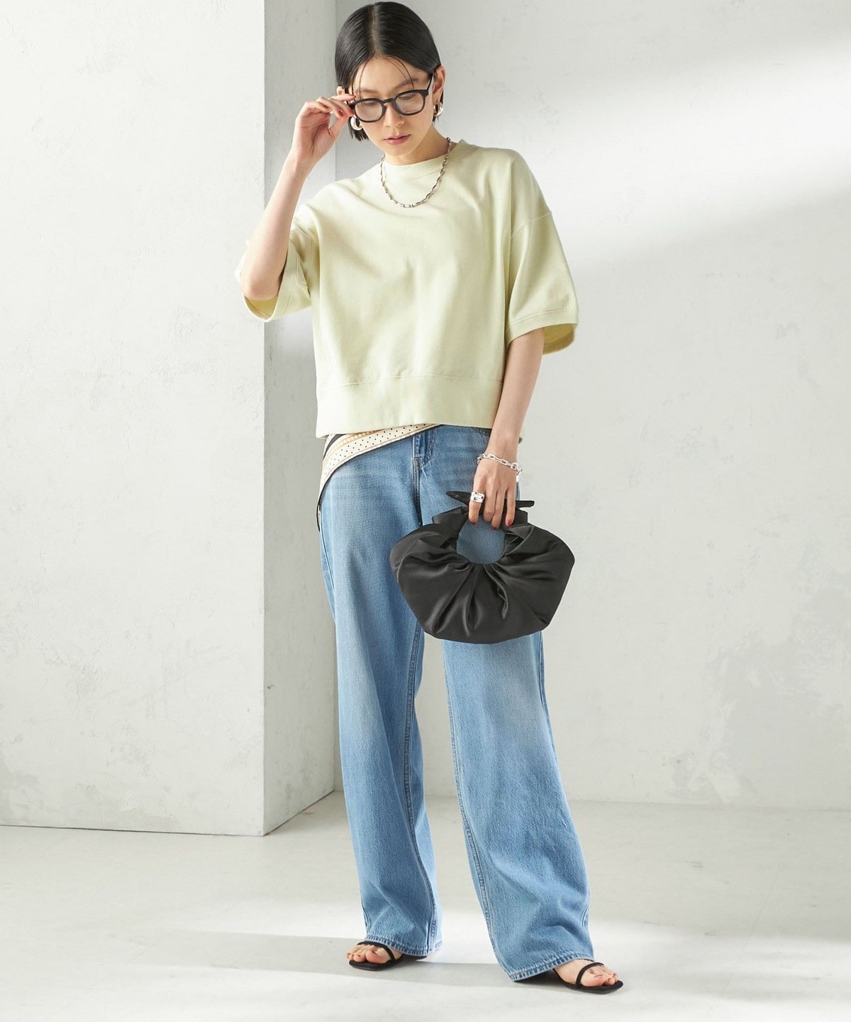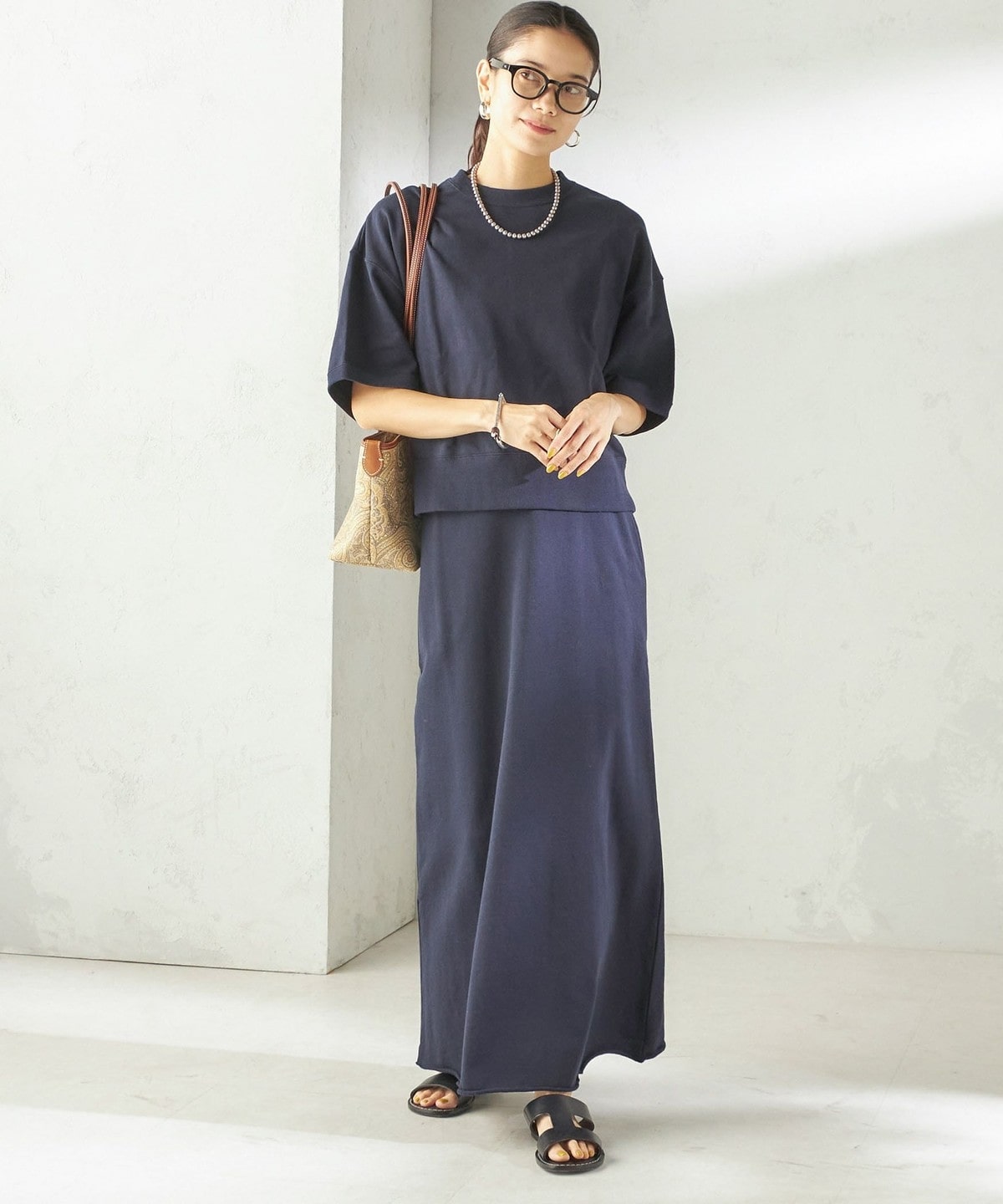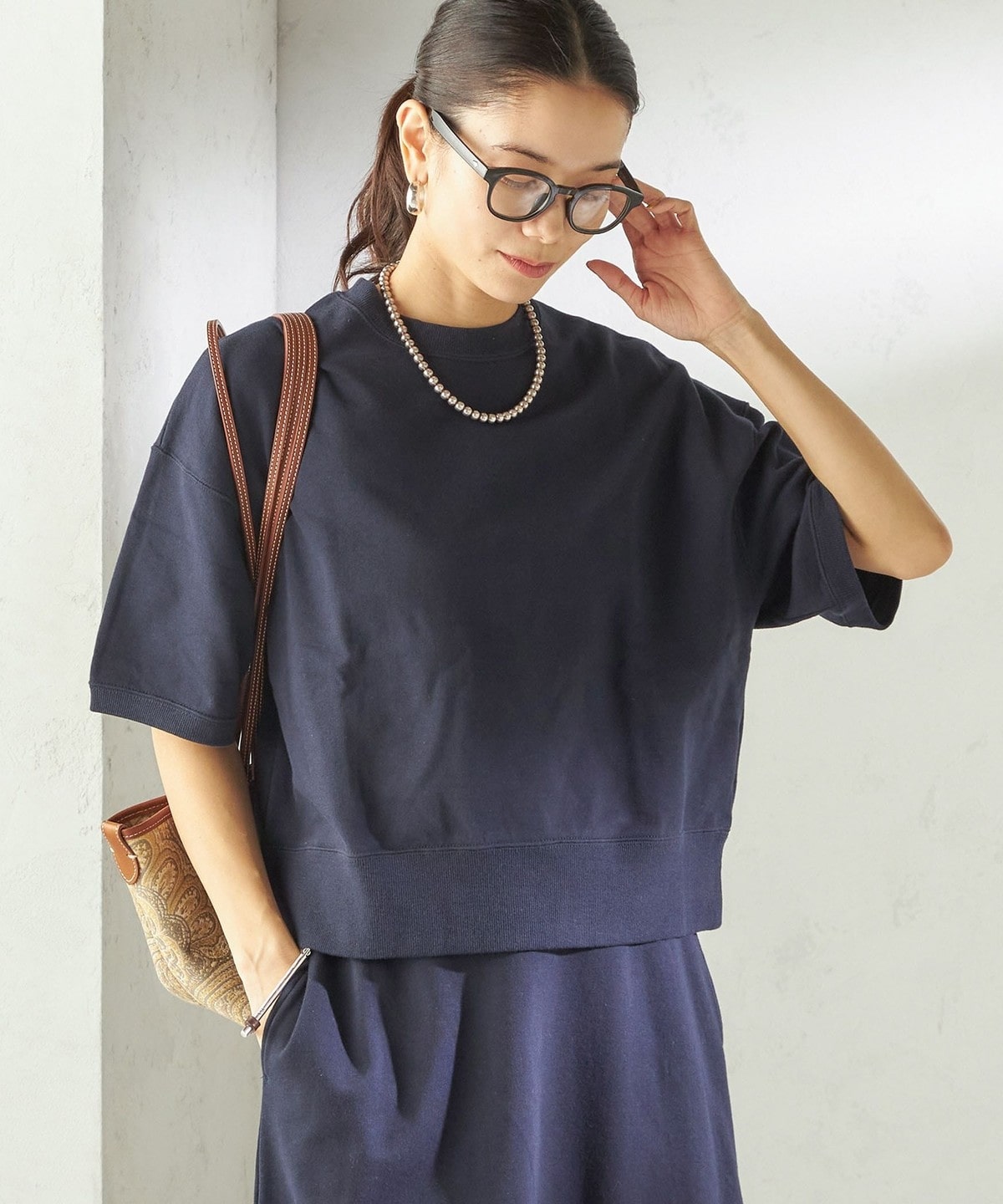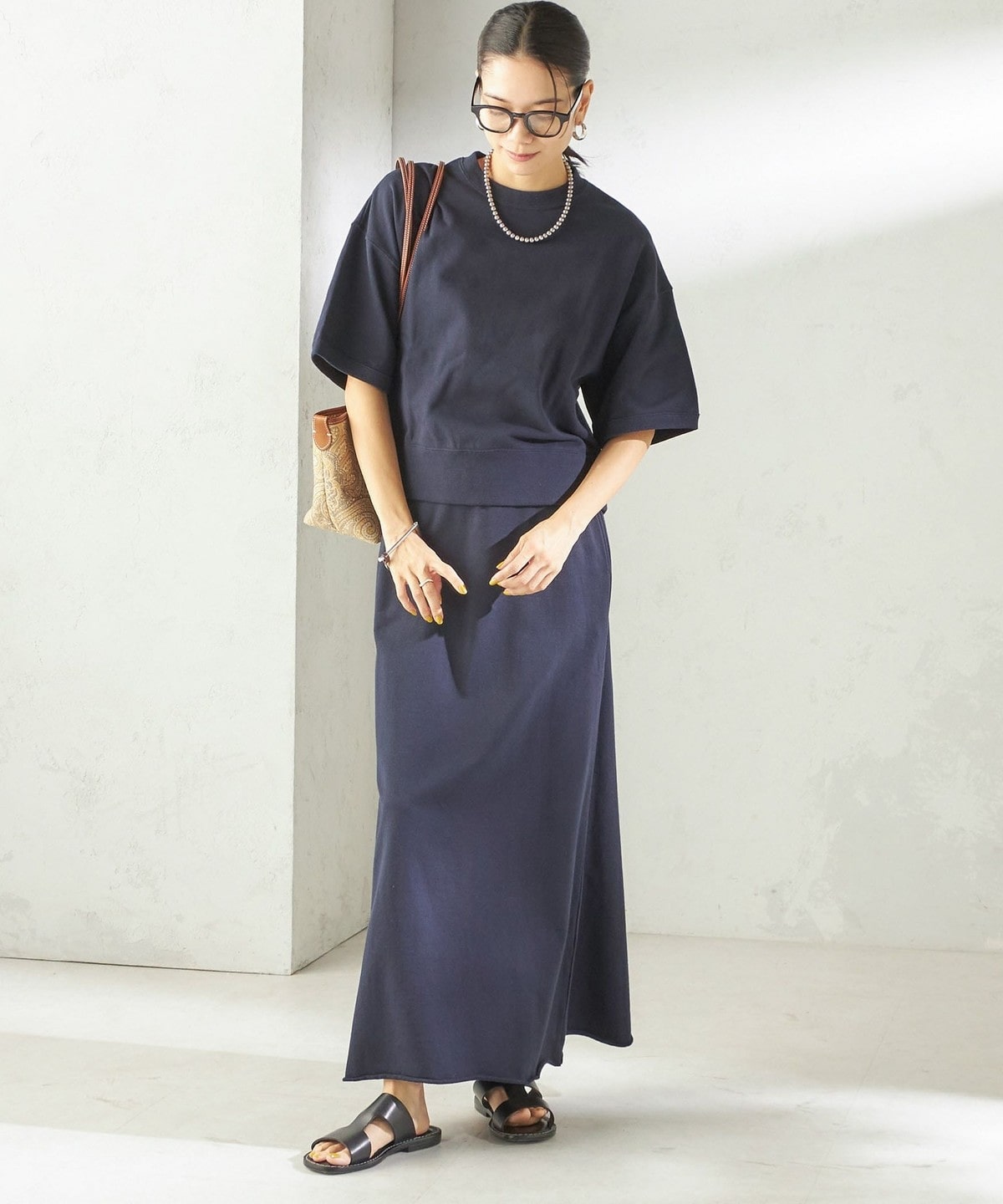 カジュアルすぎない生地感でスタイリッシュな雰囲気を生み出すスウェット
