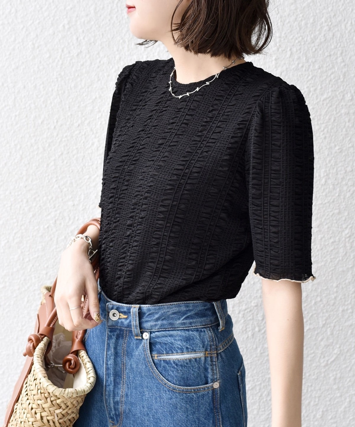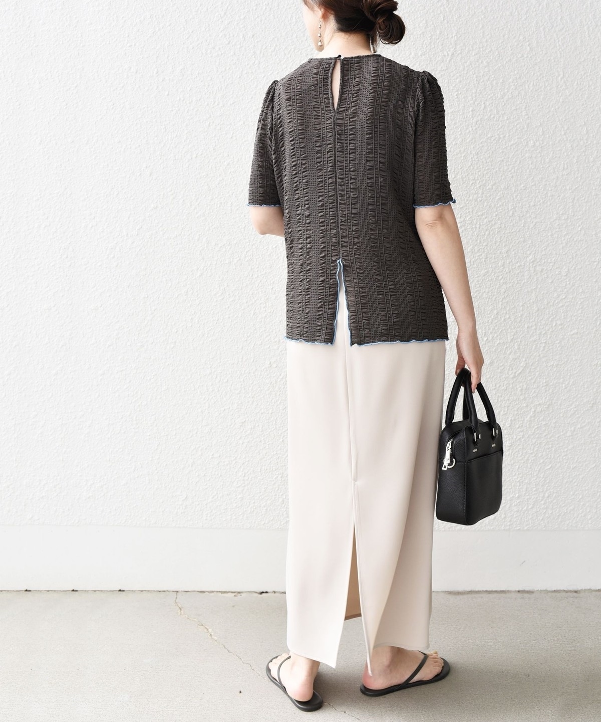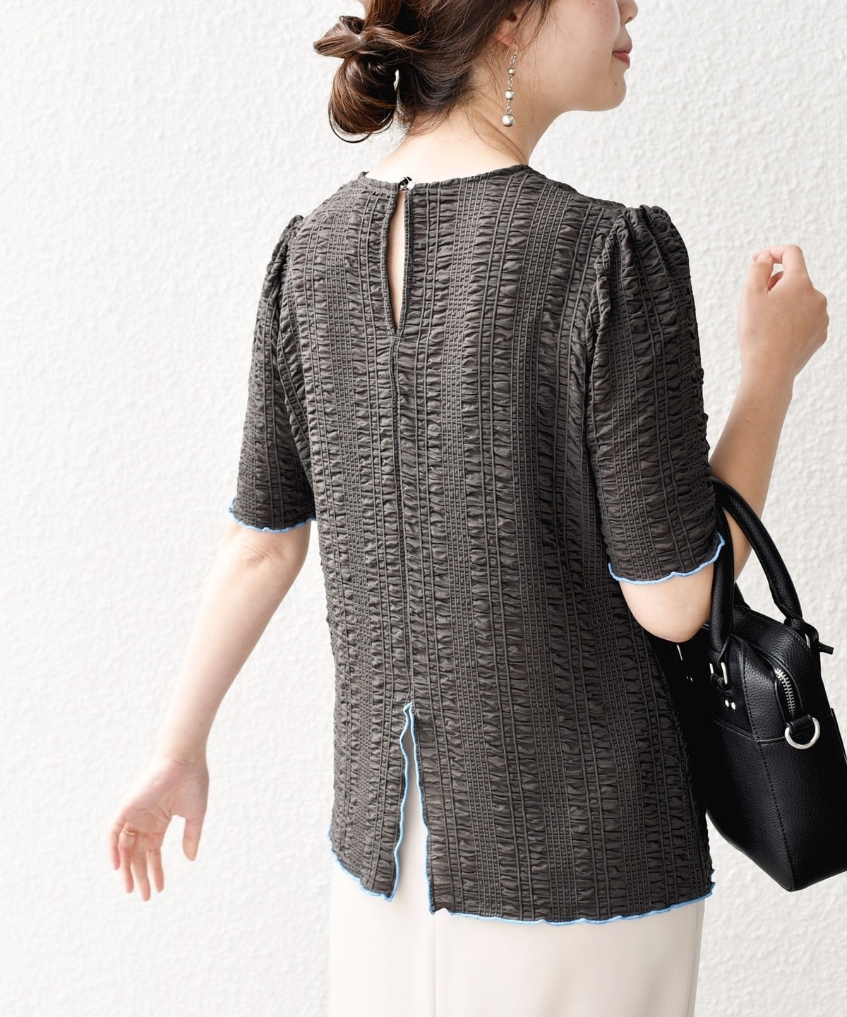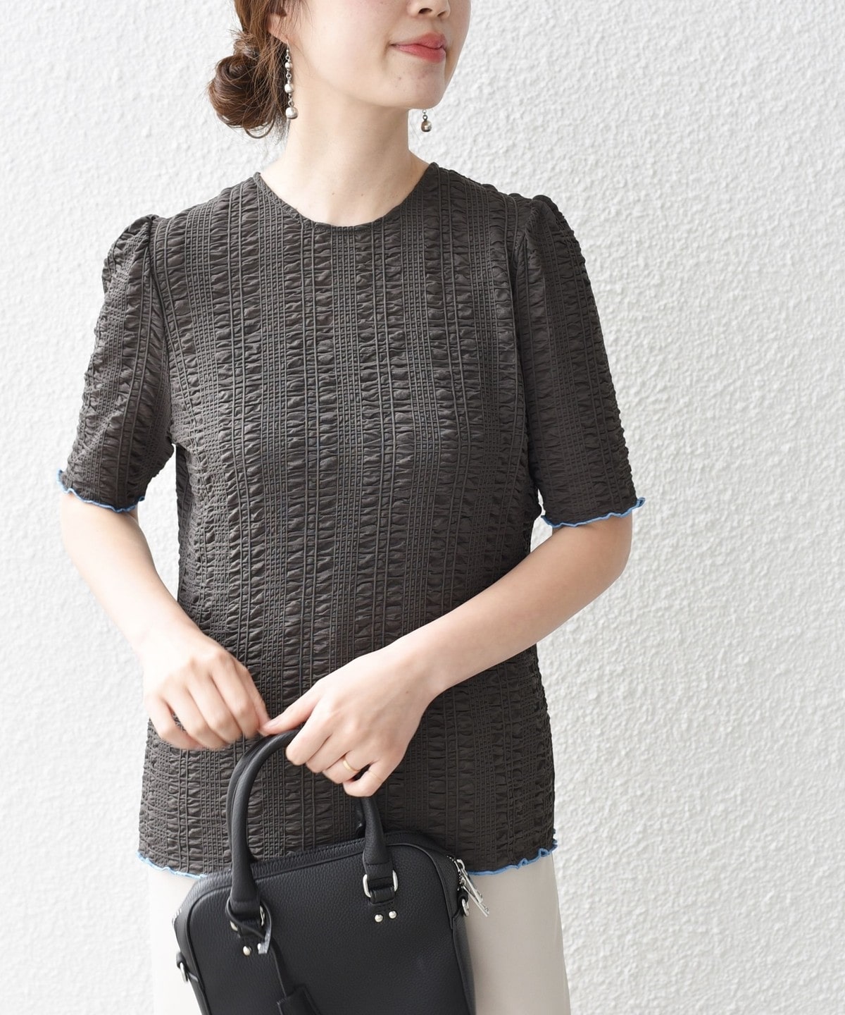 〈手洗い可能〉ドライテレコ ボートネック 5分袖 カットソー