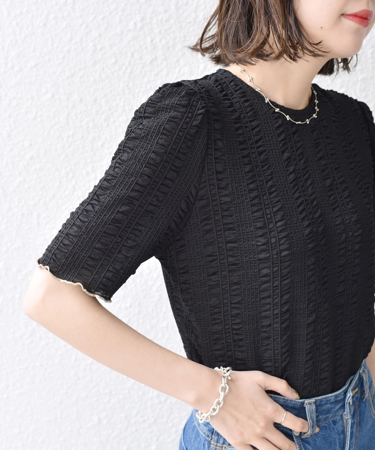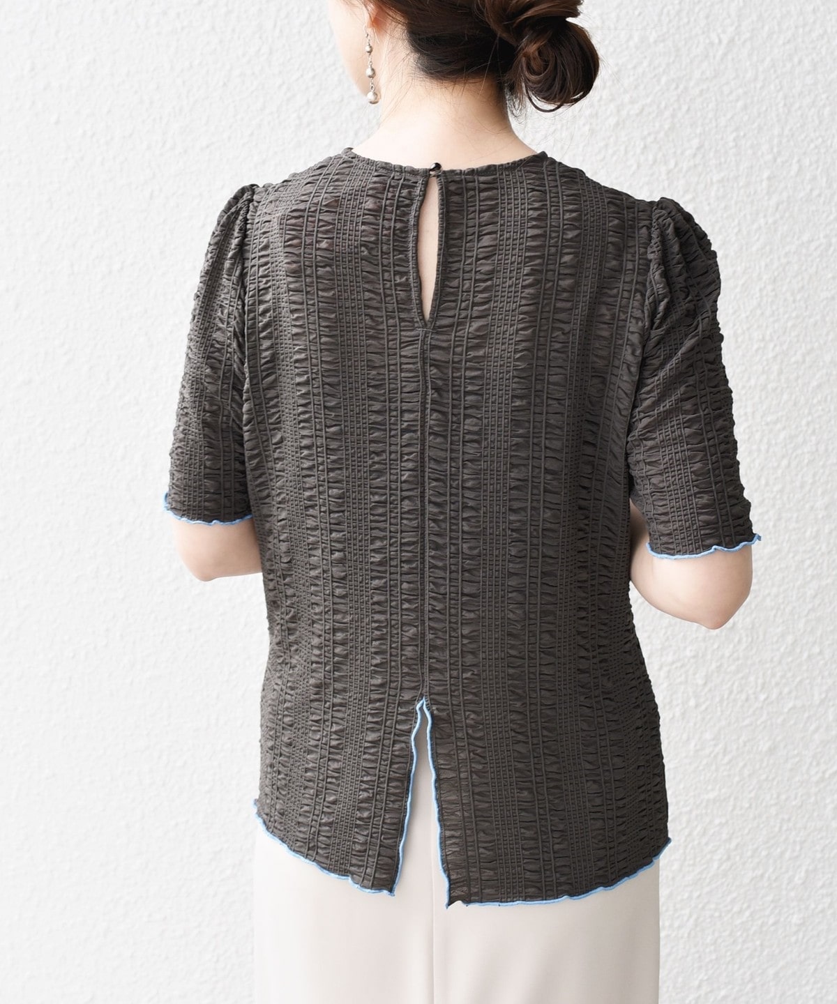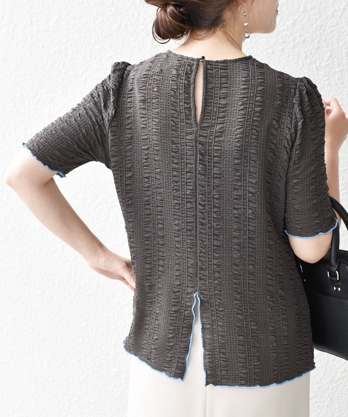 〈手洗い可能〉ドライテレコ ボートネック 5分袖 カットソー