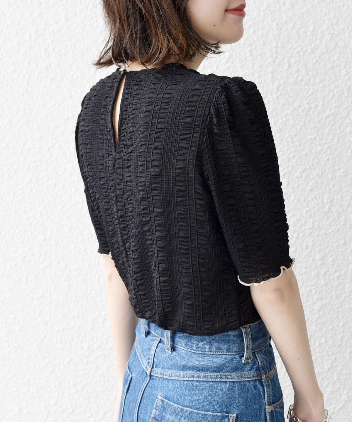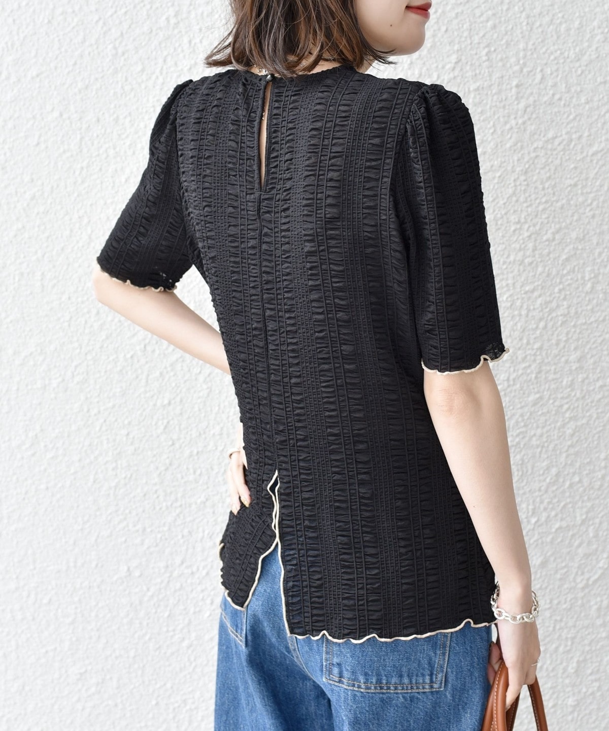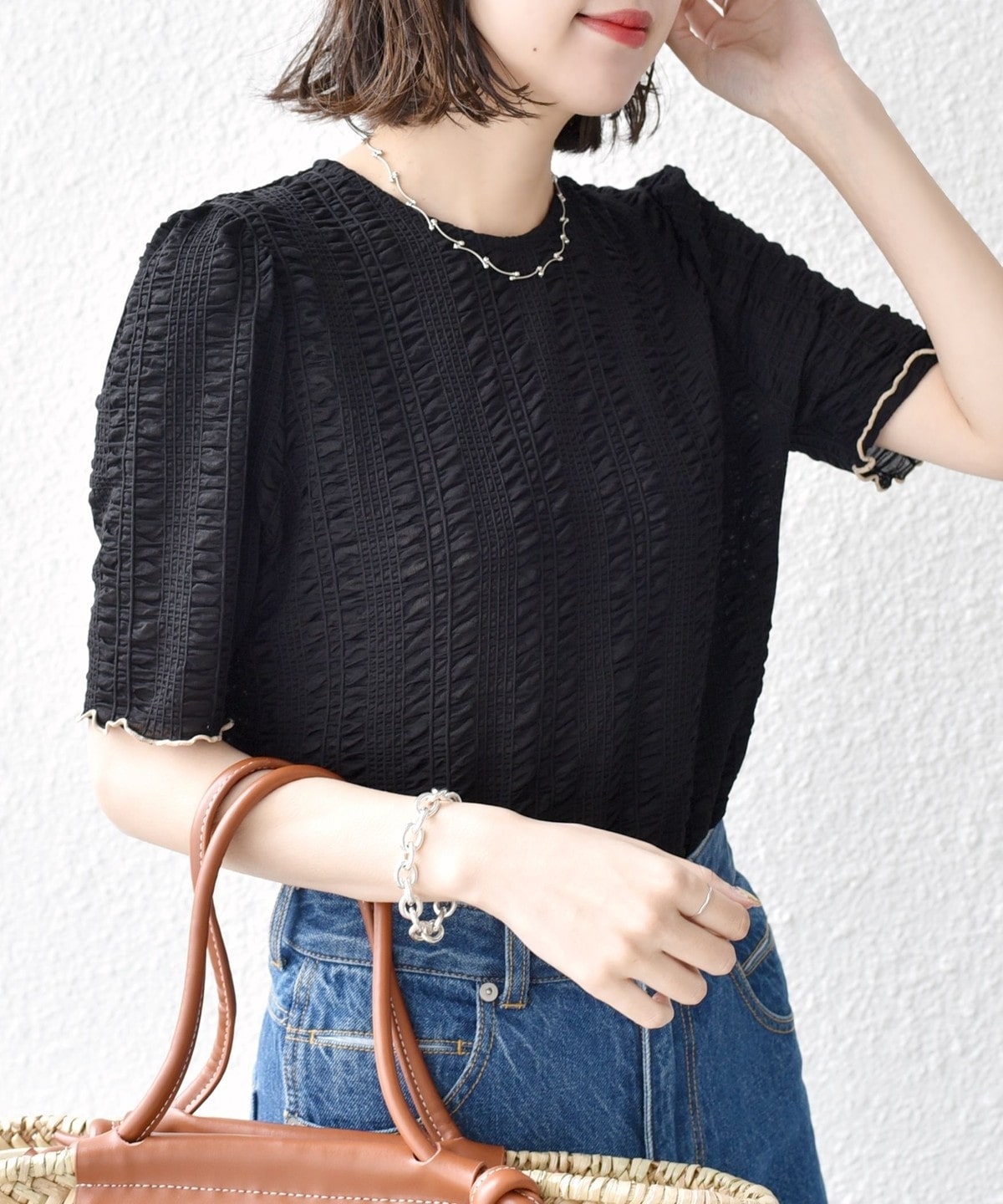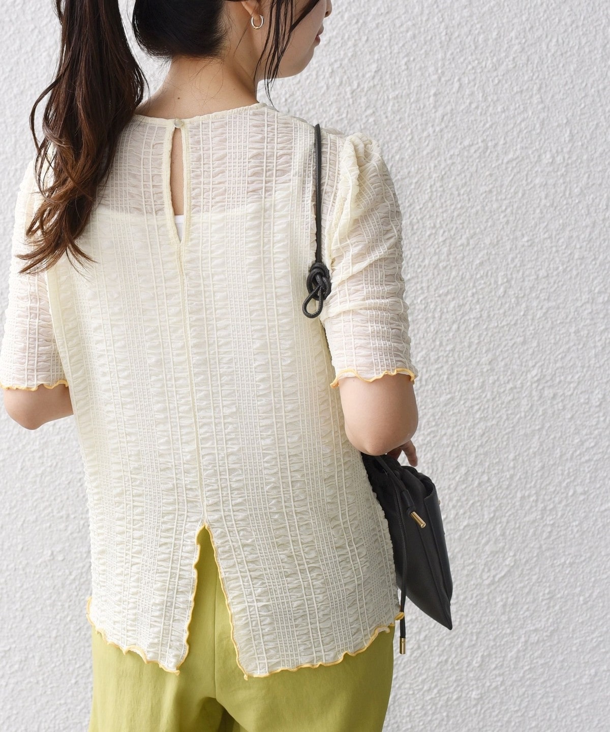 〈手洗い可能〉ドライテレコ ボートネック 5分袖 カットソー