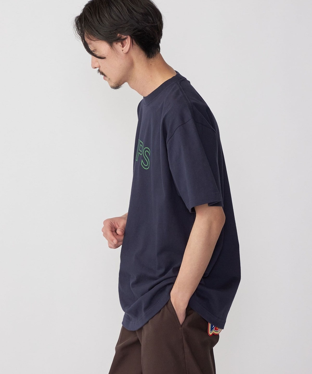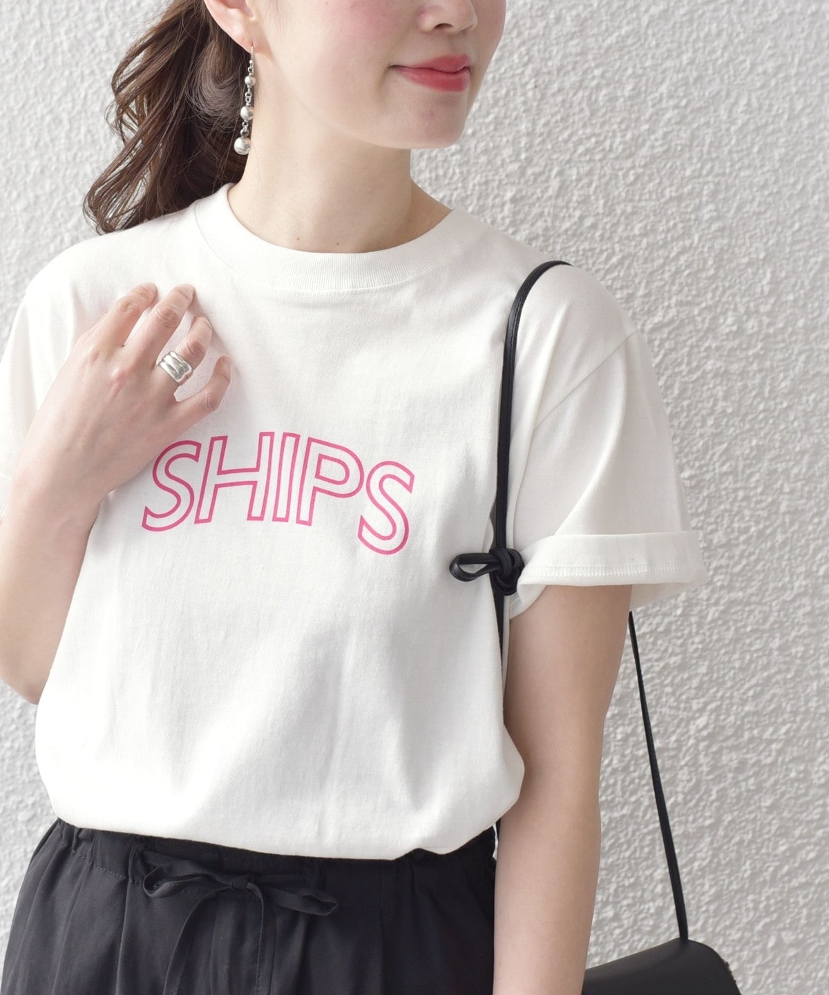 【WEB限定】 SHIPS ラウンド プリント ロゴ TEE