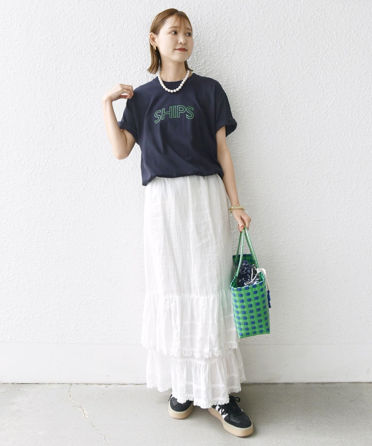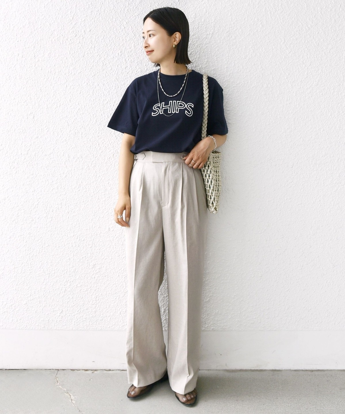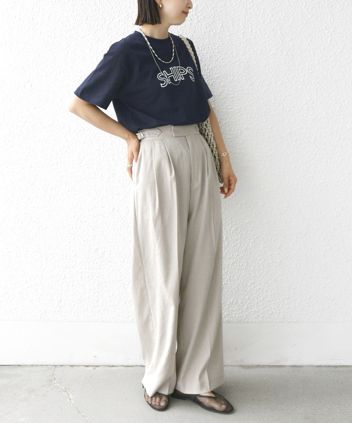 ・夏場はリネン素材のスカートやパンツとのコーディネートも◎