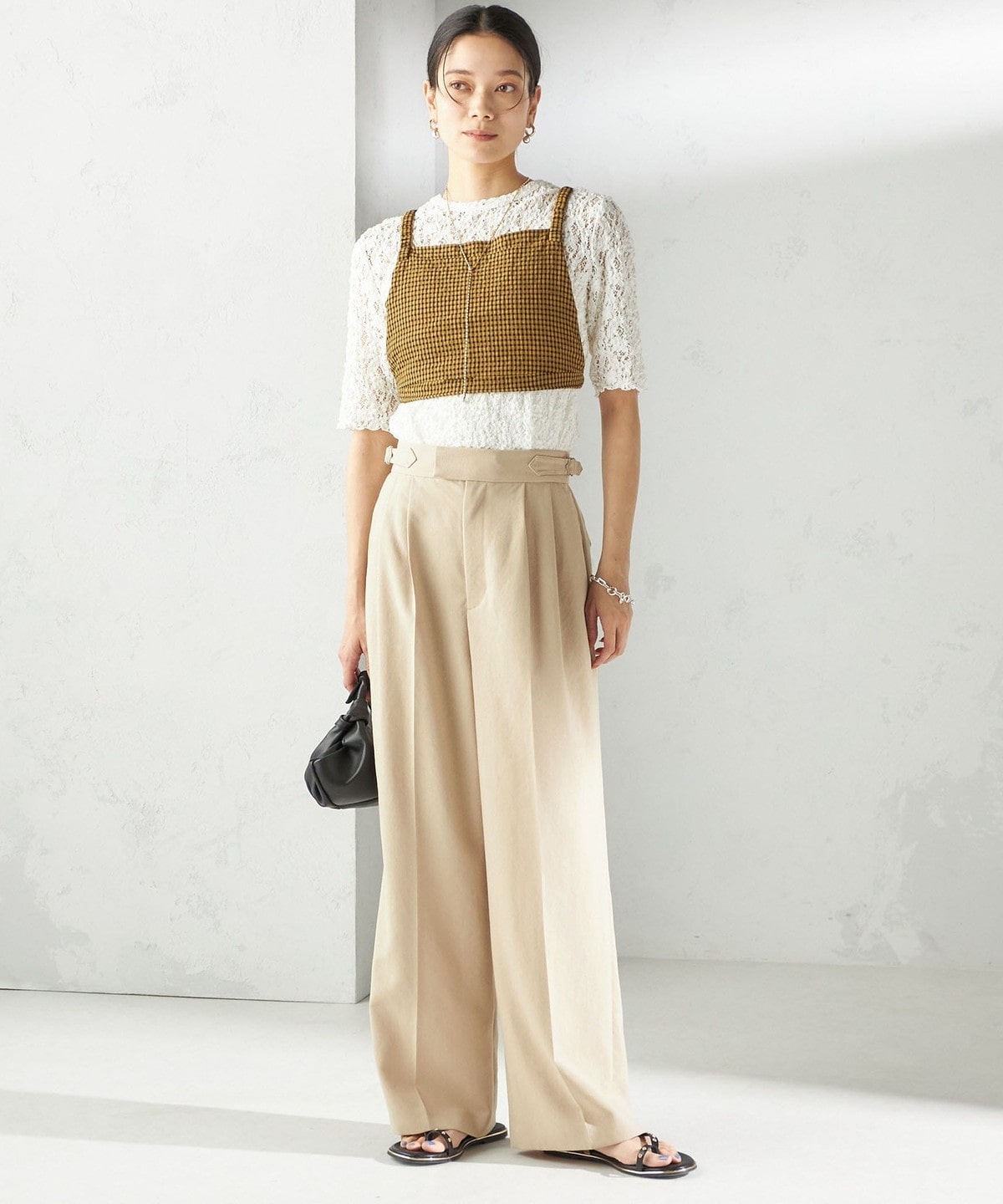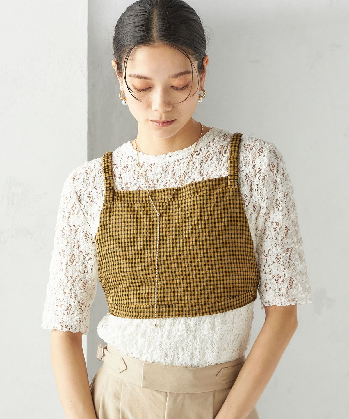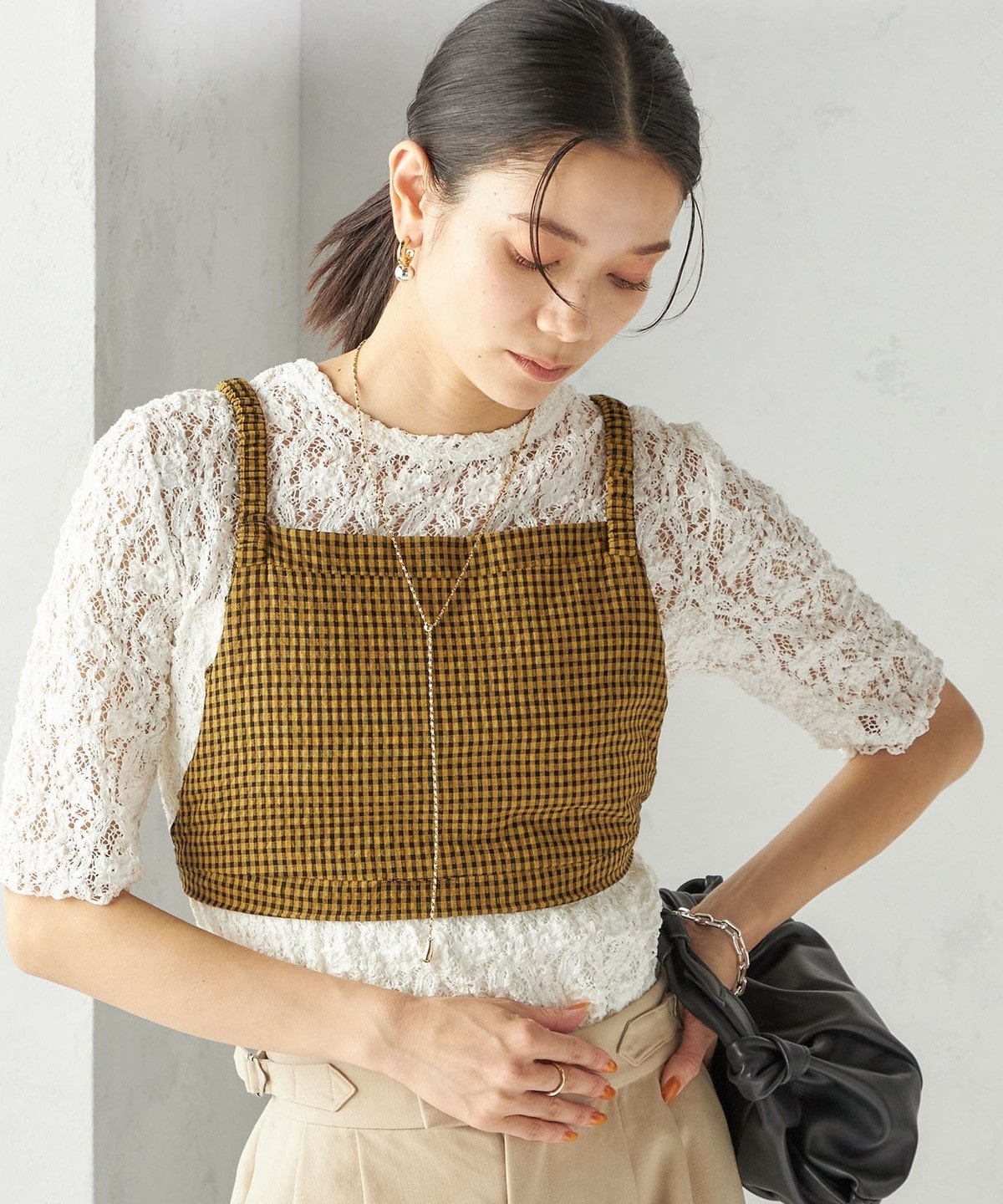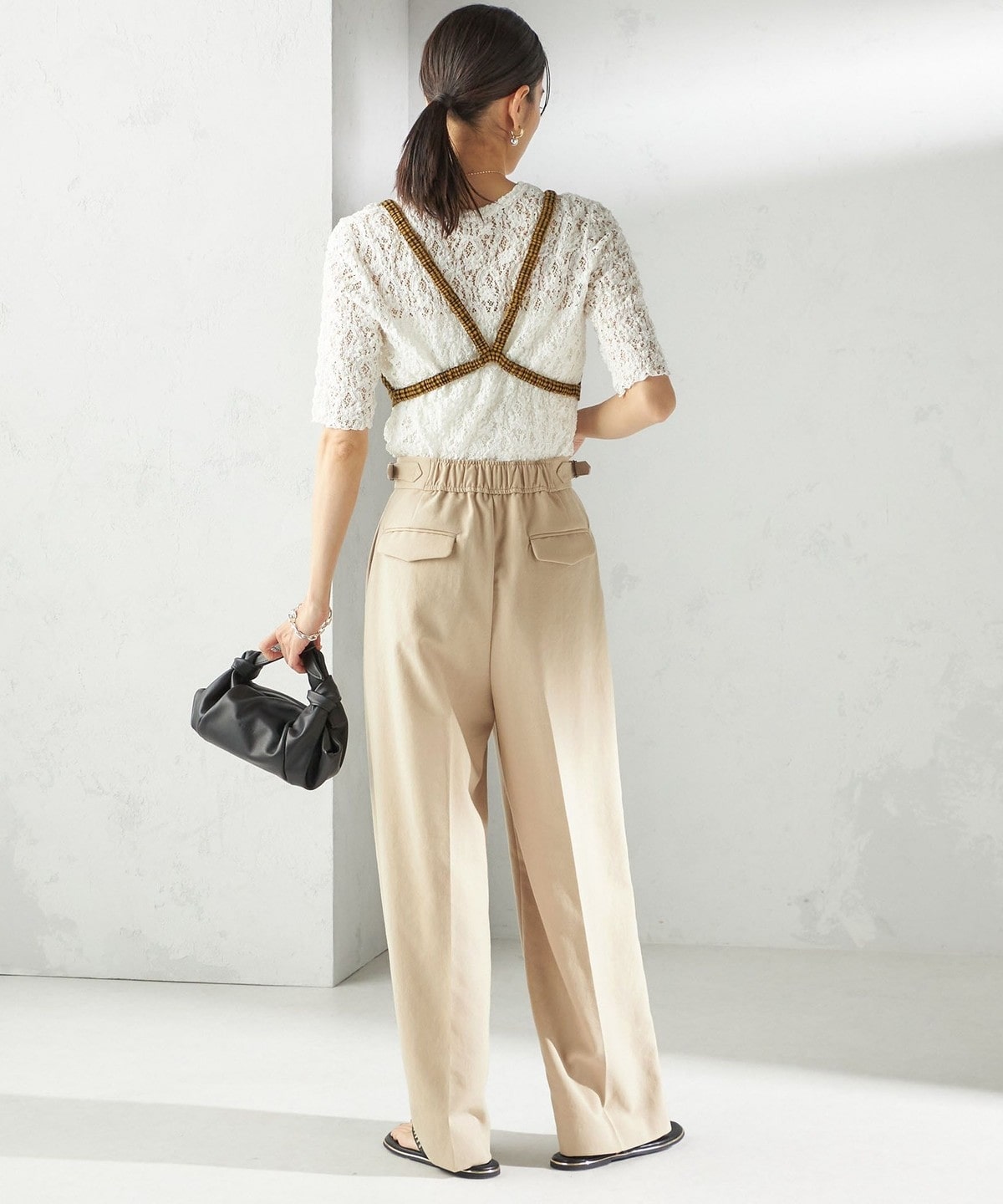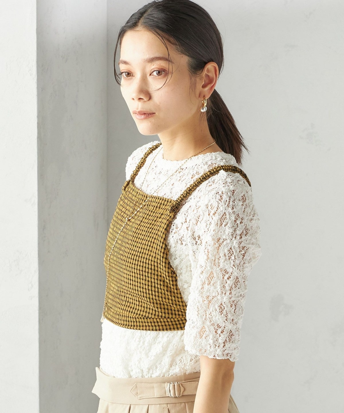 レースの繊細な表情が、コーディネートに女性らしいアクセントを加えてくれます。