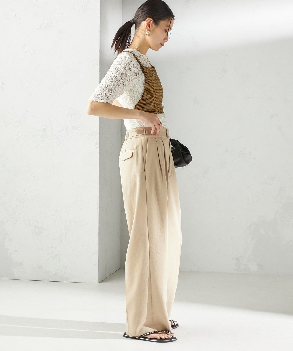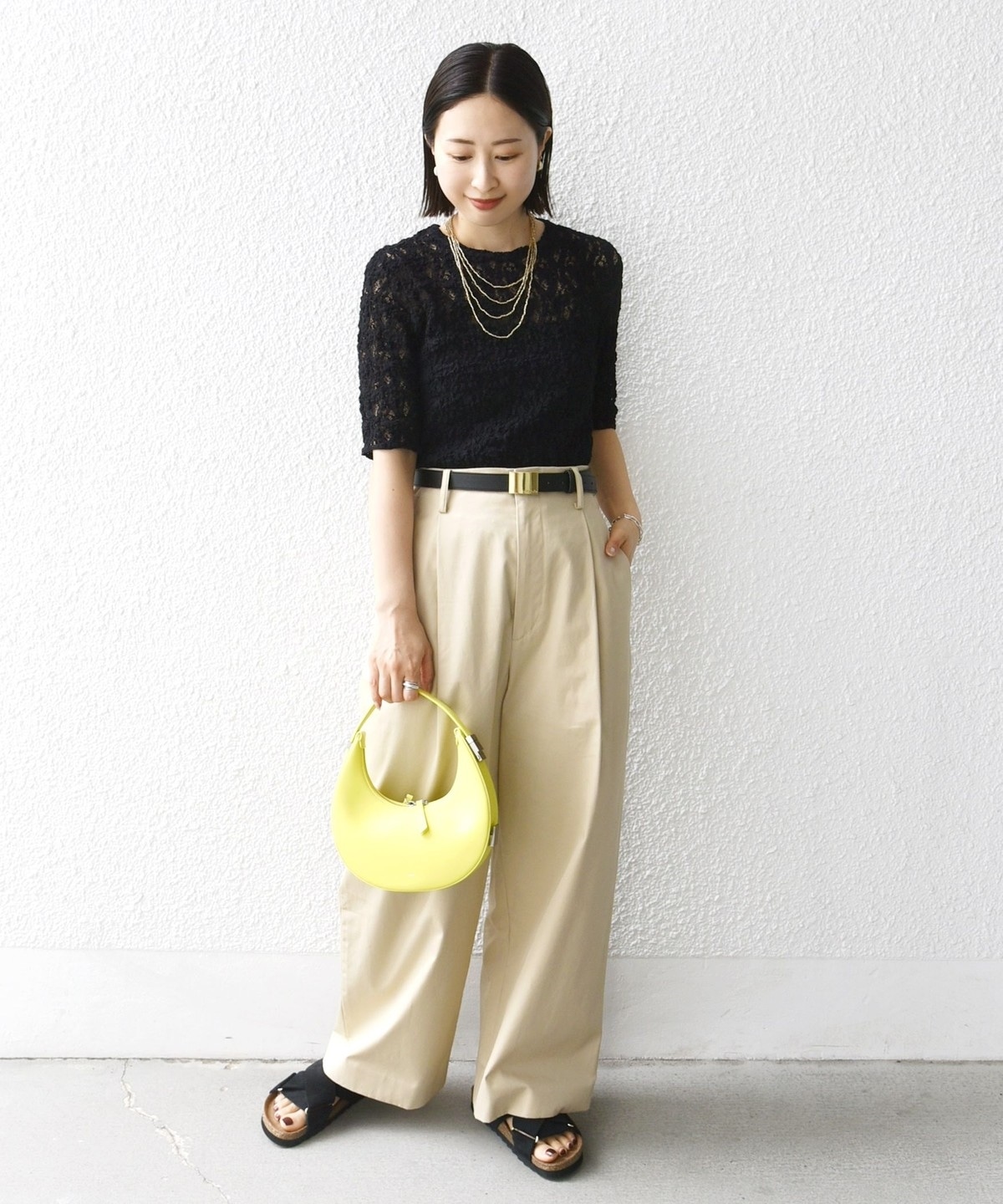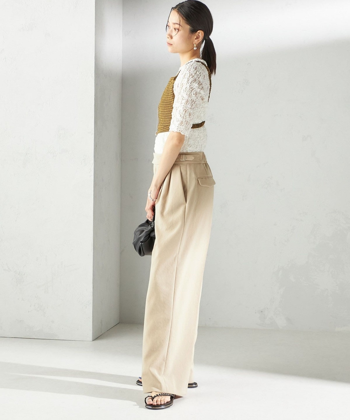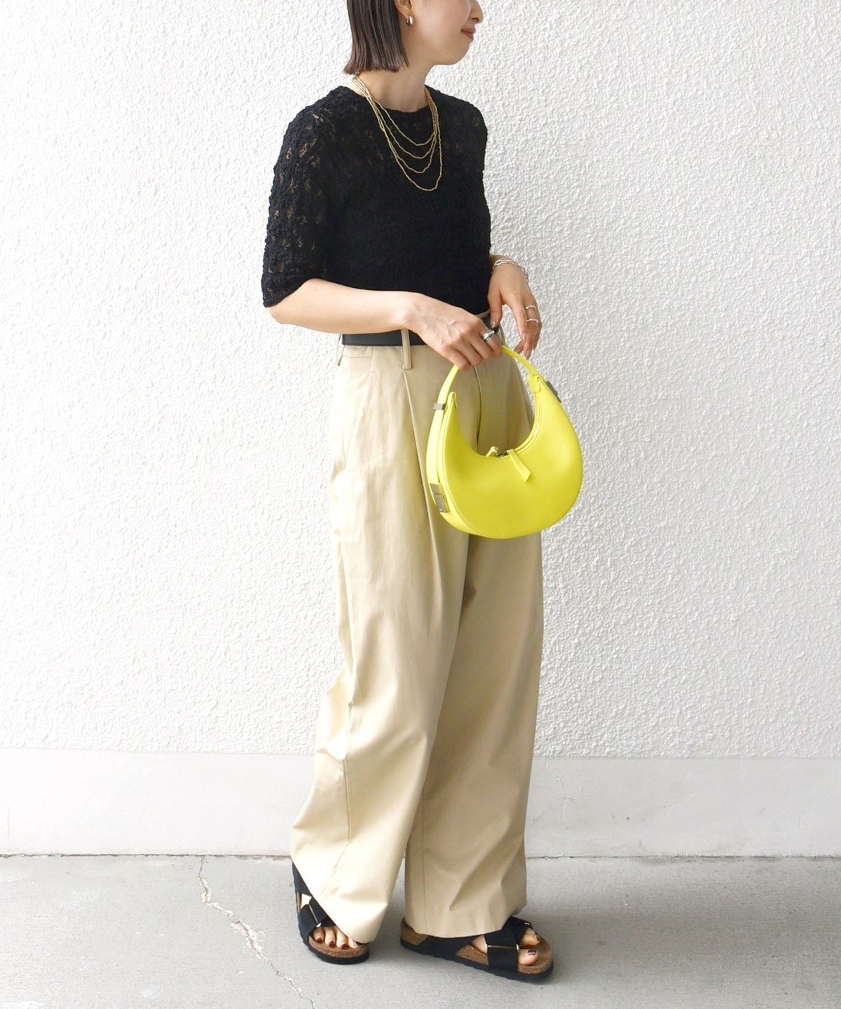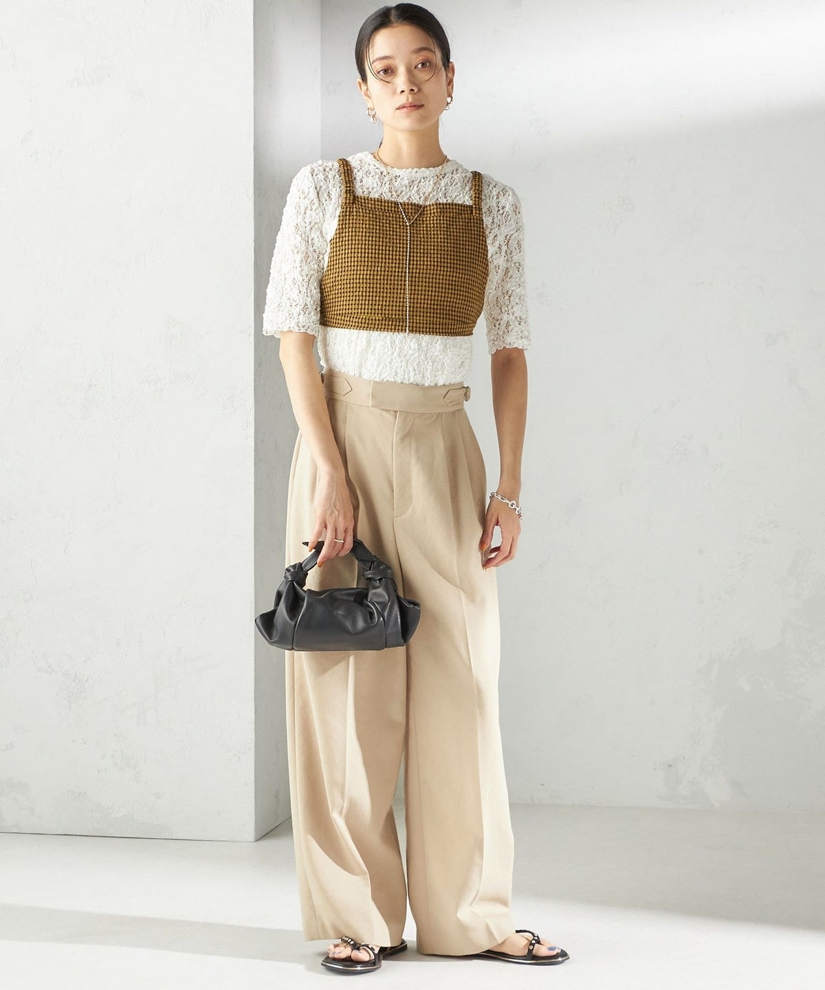 レースの繊細な表情が、コーディネートに女性らしいアクセントを加えてくれます。
