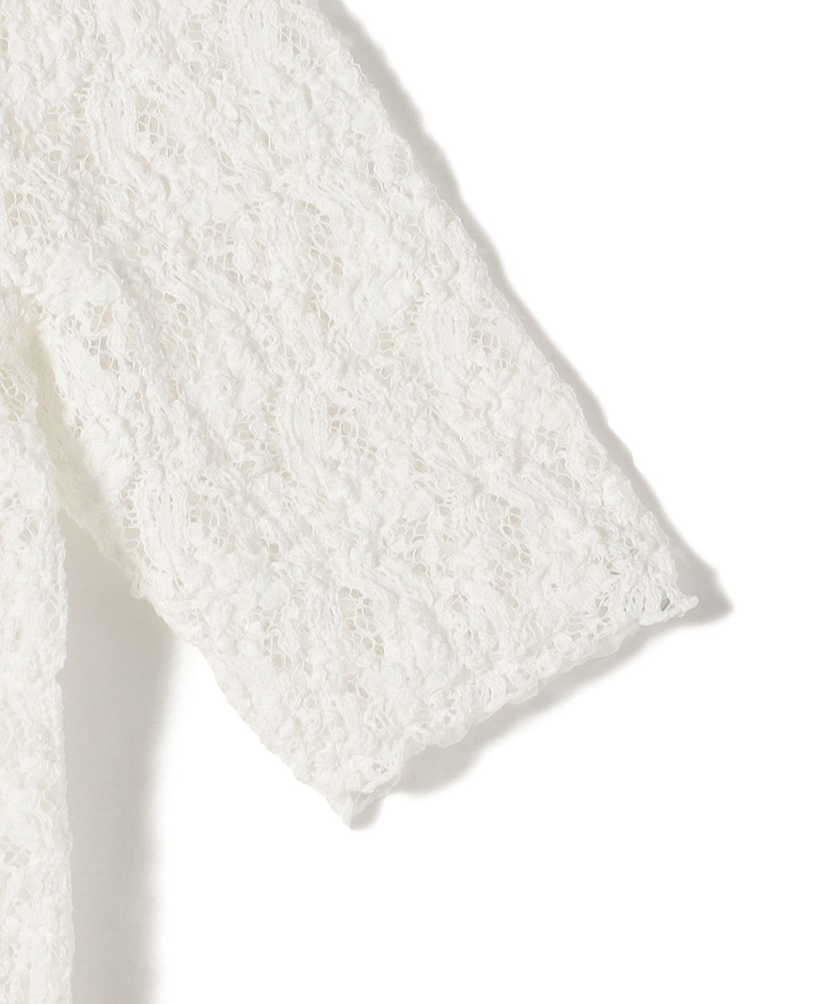 透け感のあるレース素材が軽やかさをプラスし、夏の終わりまで長く楽しめる一枚です。