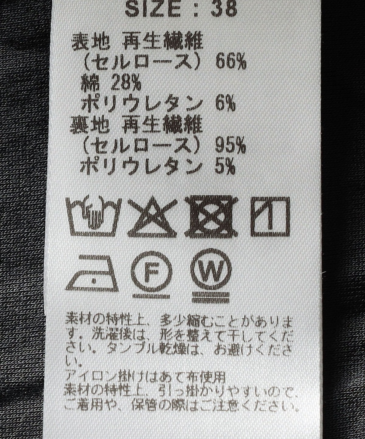 素材:表地: 再生繊維(セルロース)66%, 綿28%, ポリウレタン6%, 裏地: 再生繊維(セルロース)95%, ポリウレタン5%