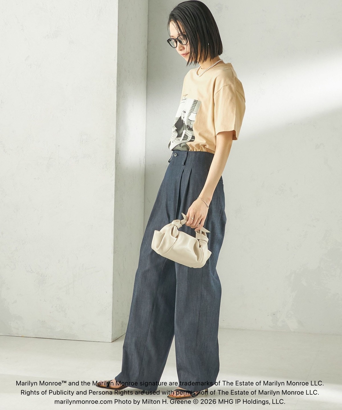 マリリン・モンローらしいハイウエストで女性らしいシルエットのデニムを着用した写真と、サブリナパンツを着用した写真2種類をセレクトしました。