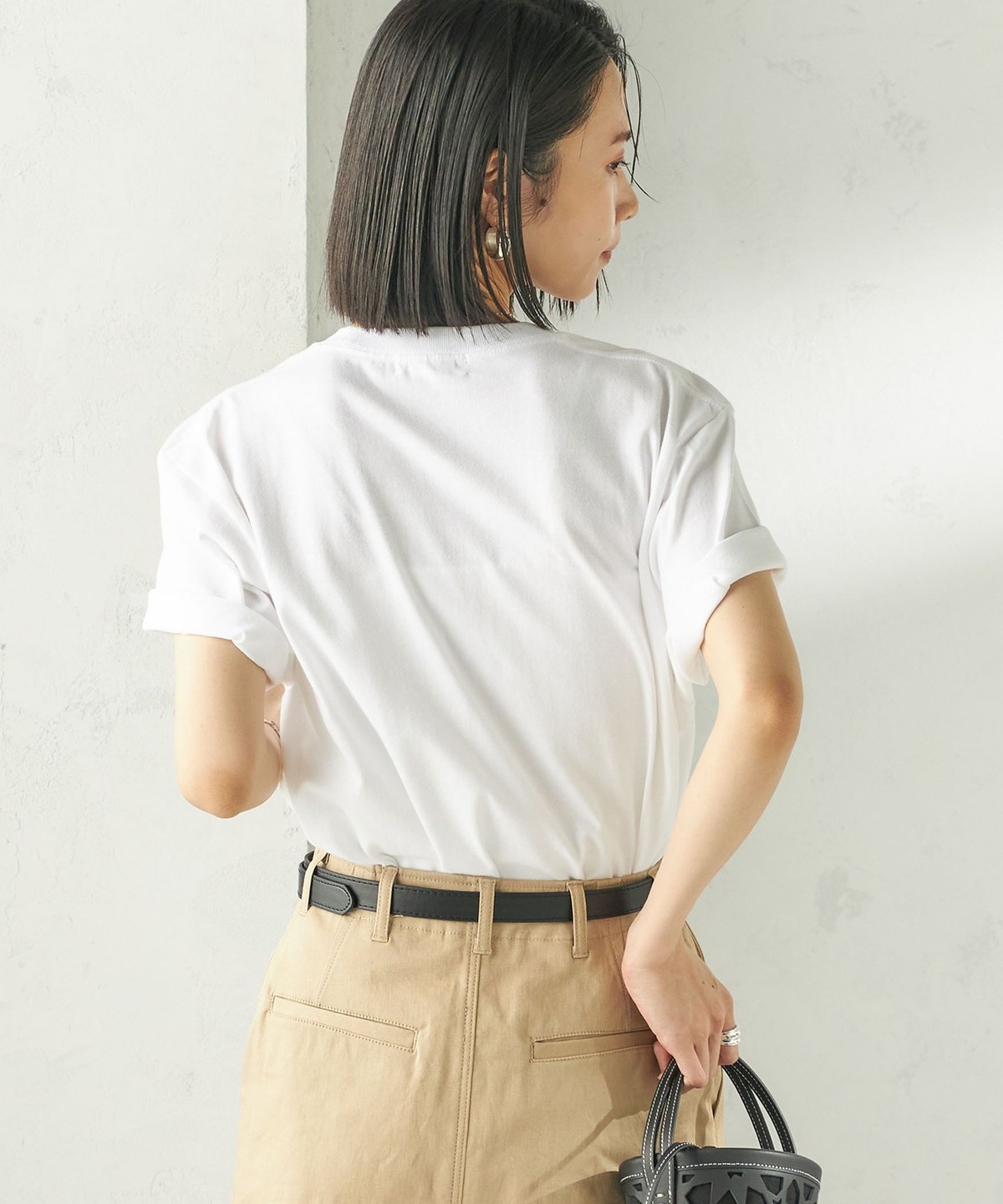ナチュラルメイクにカジュアルな装いが新鮮で目を惹く一枚です。