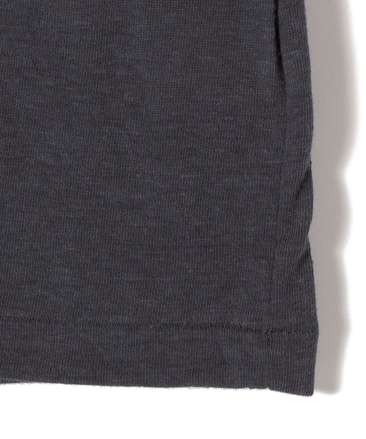 自然なムラ糸をやや甘めに編み上げ、表情豊かでソフトな風合いを持つヴィンテージ感あふれる天竺素材を使用。コンパクトでミニマルなデザインのTシャツです。