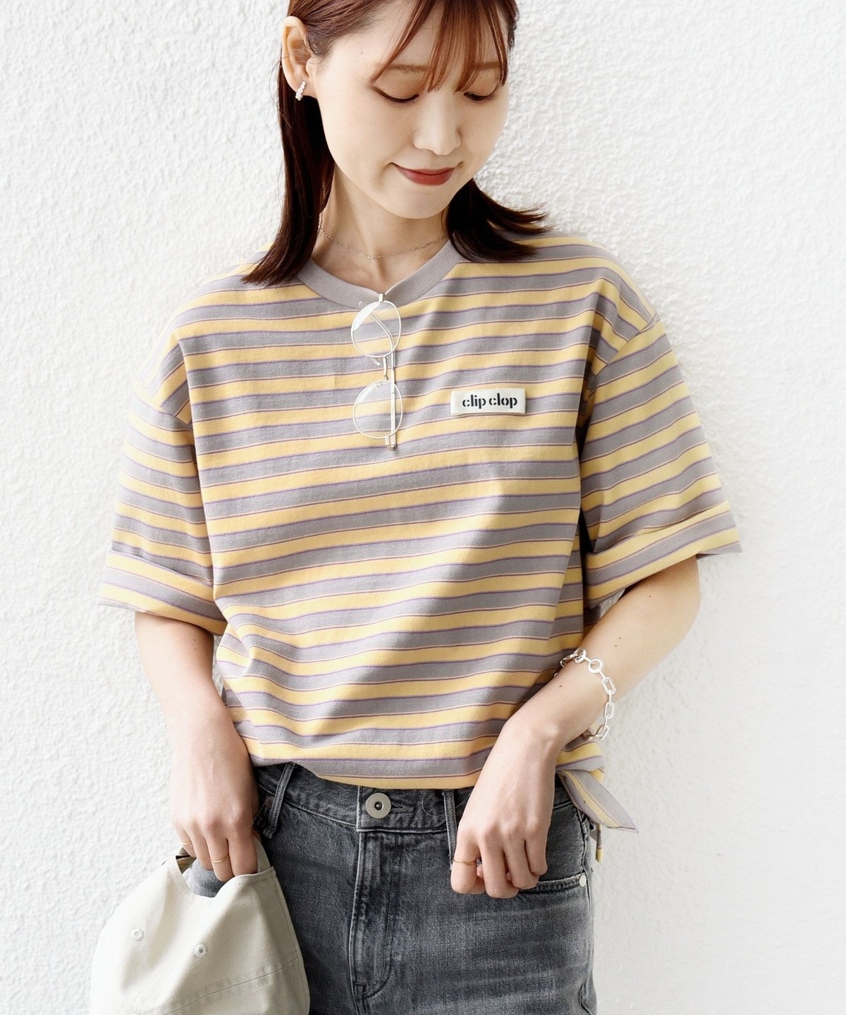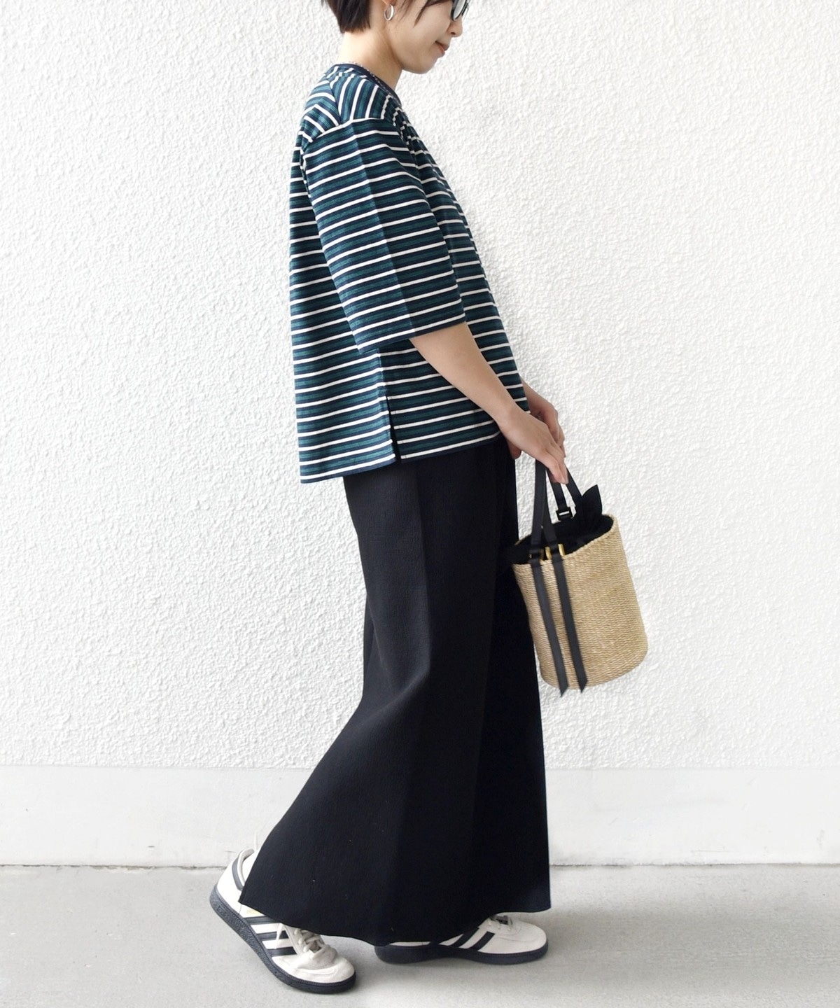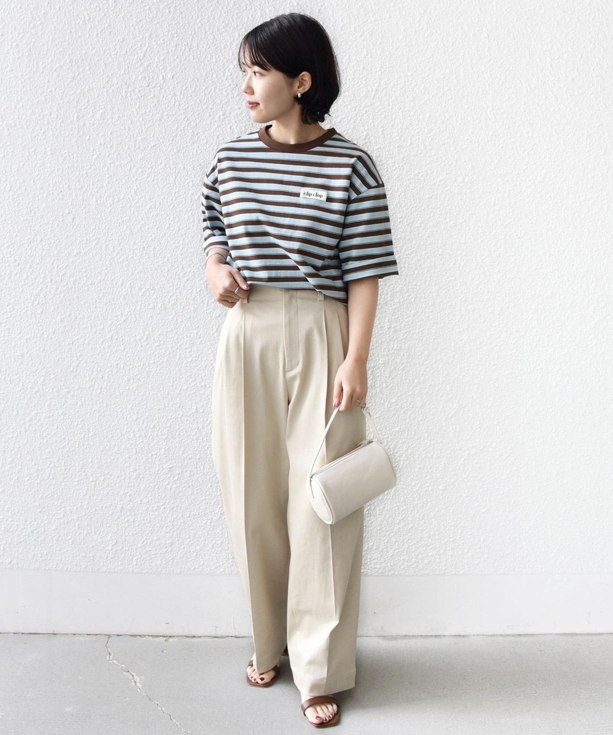 コンパクトなボディ×太めなゆったり袖のバランスが可愛いボーダーTEE