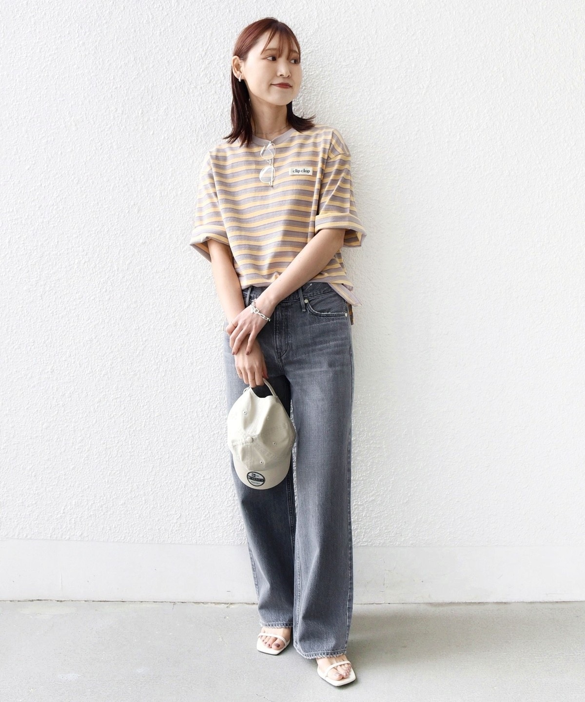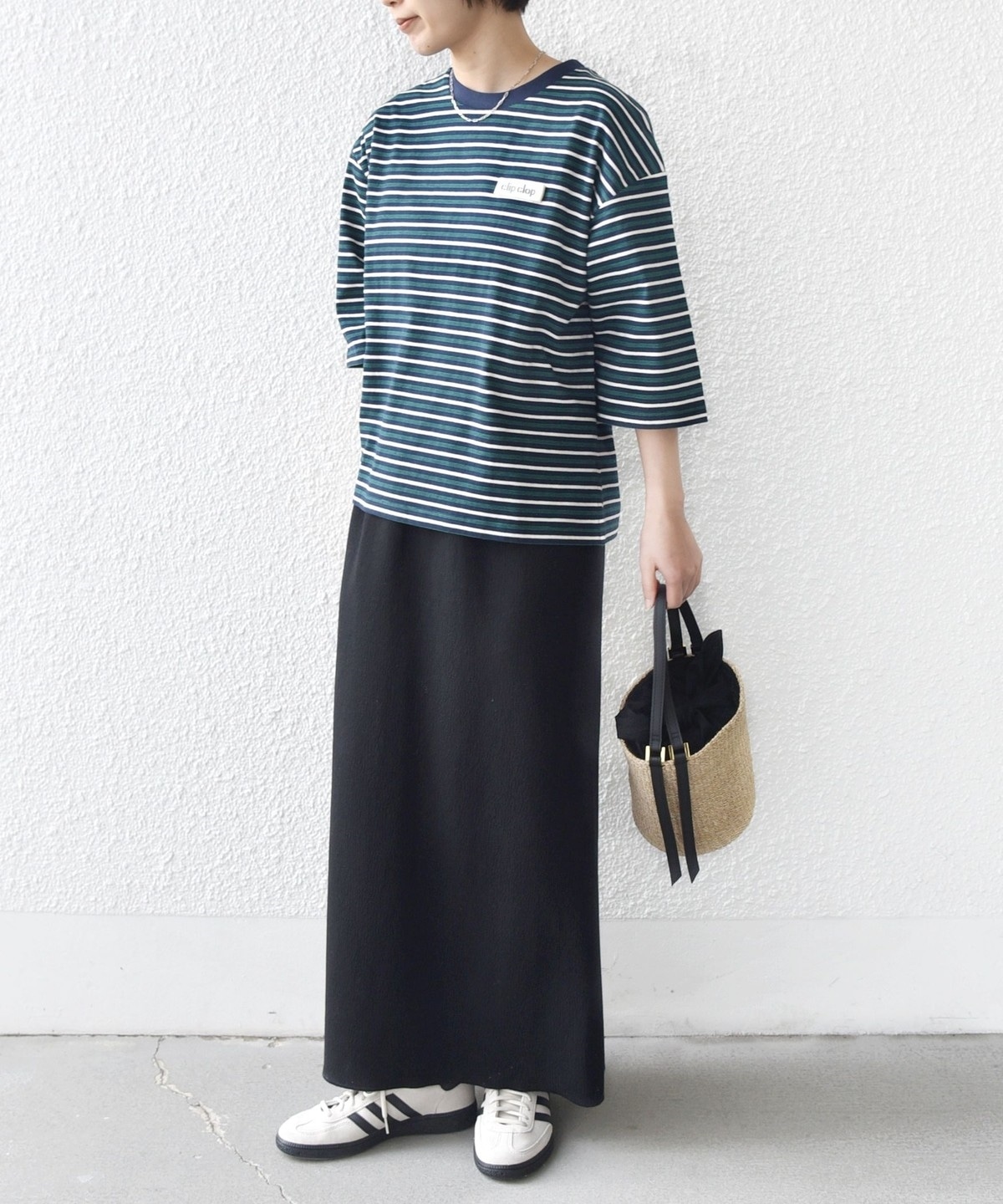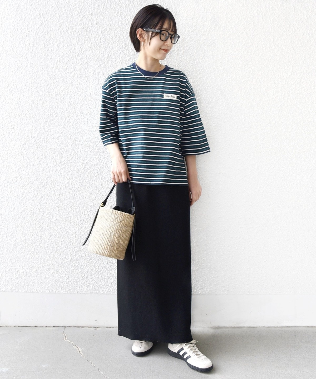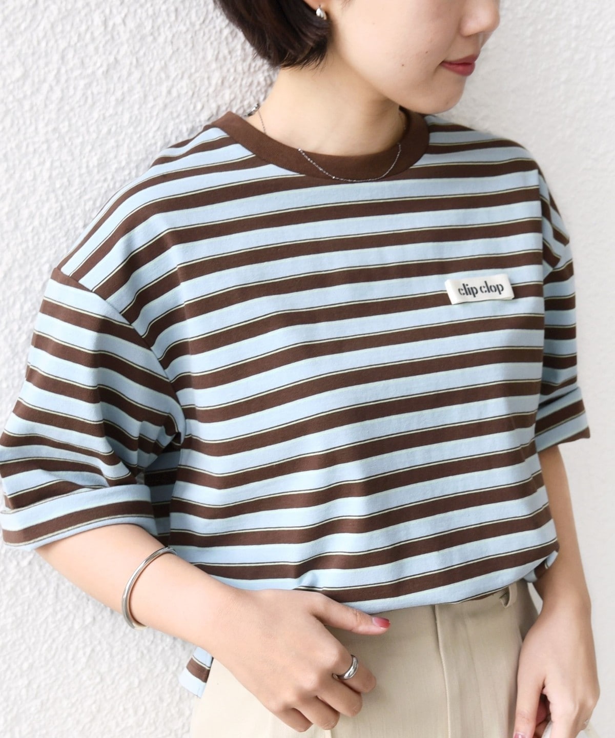 コンパクトなボディ×太めなゆったり袖のバランスが可愛いボーダーTEE