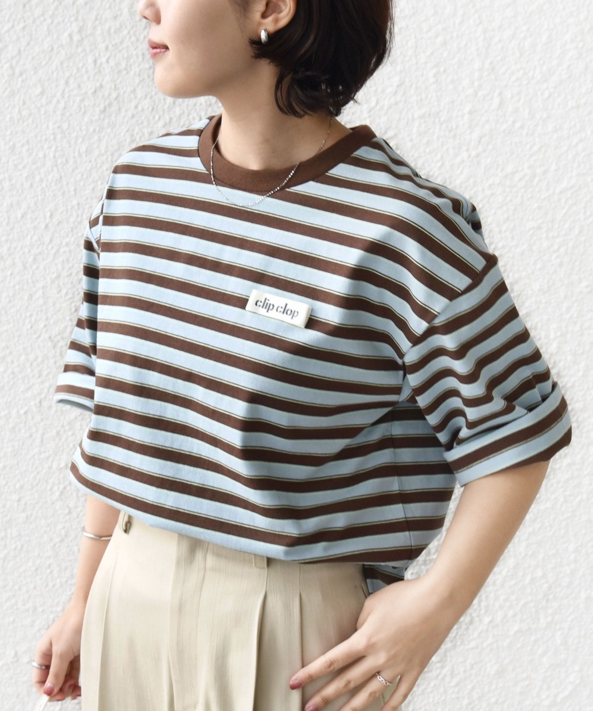 【WEB限定】マルチ ボーダー フレンチスリーブ プルオーバー(品番:312-32-1067)