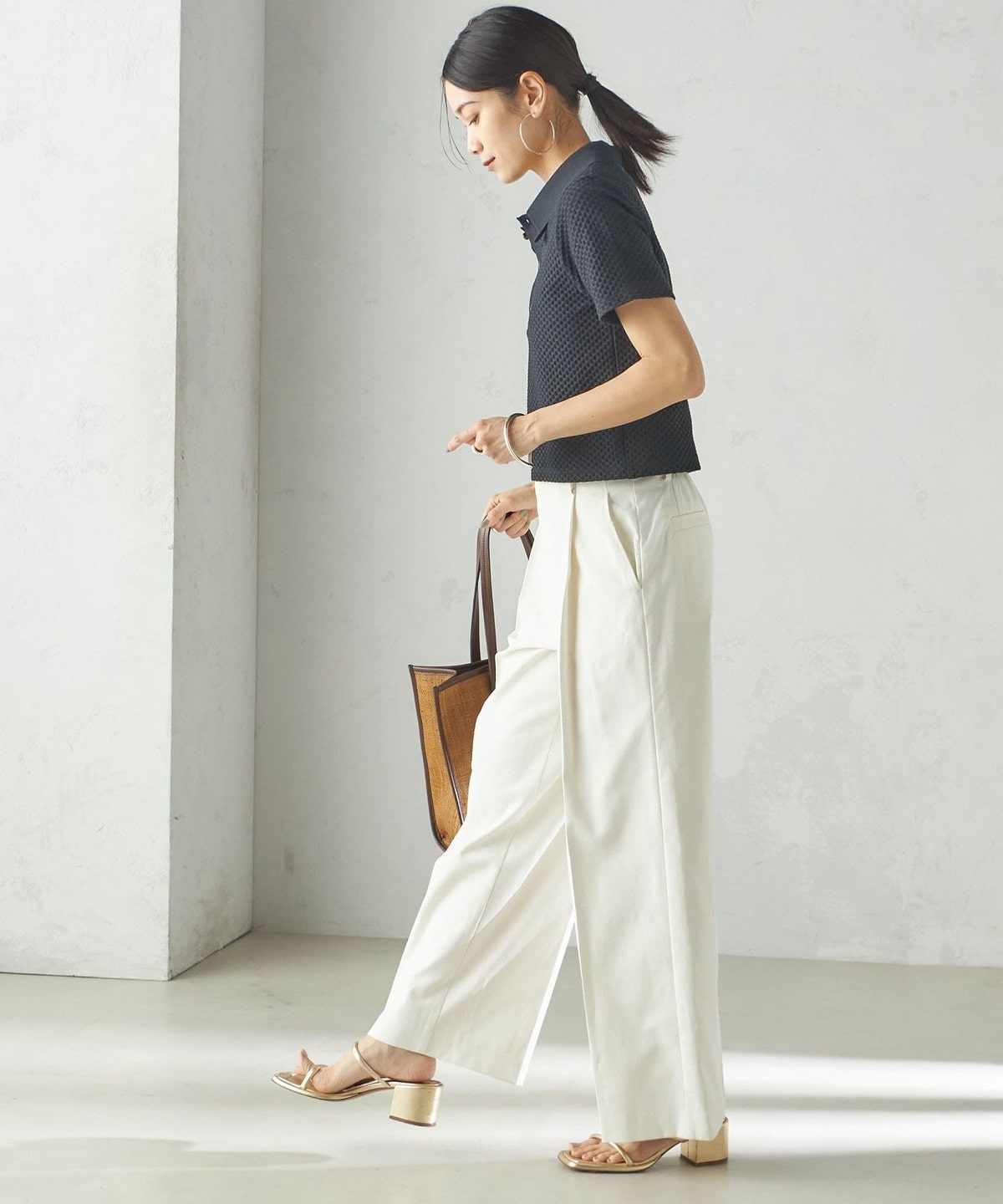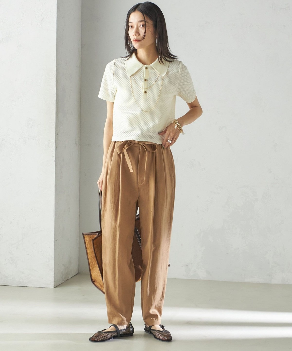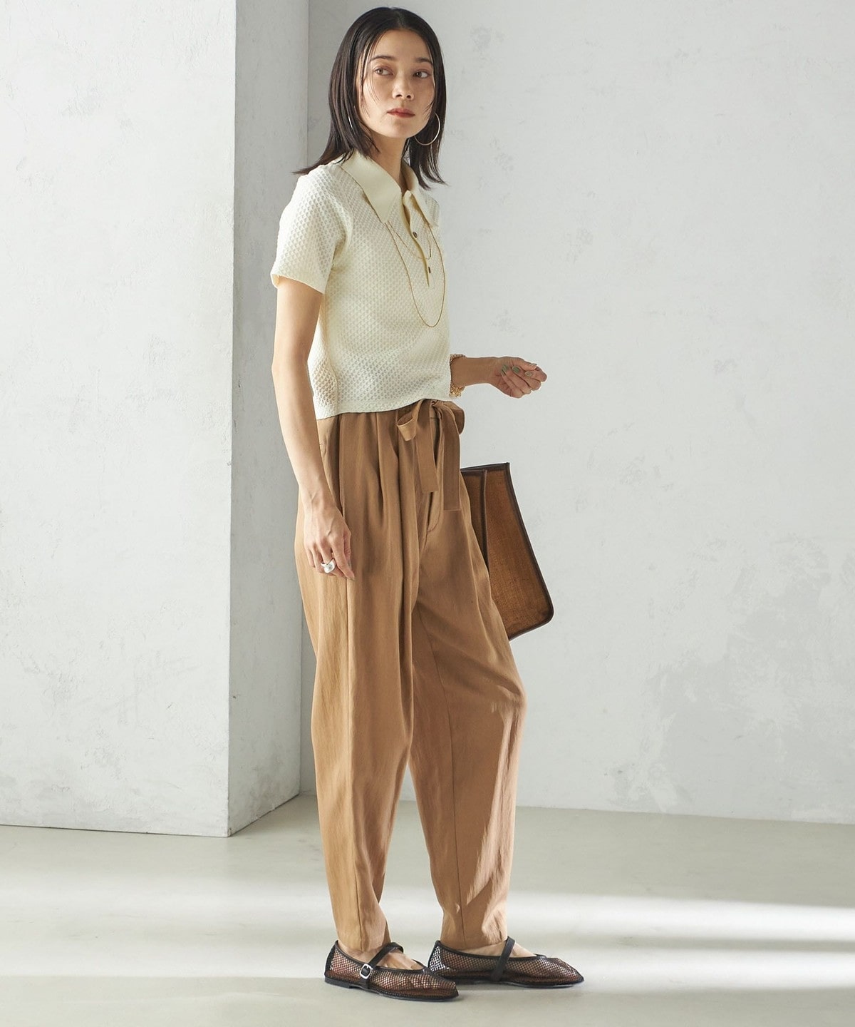 小泉里子コラボ:〈手洗い可能〉ツイル ウエスト テーパード パンツ