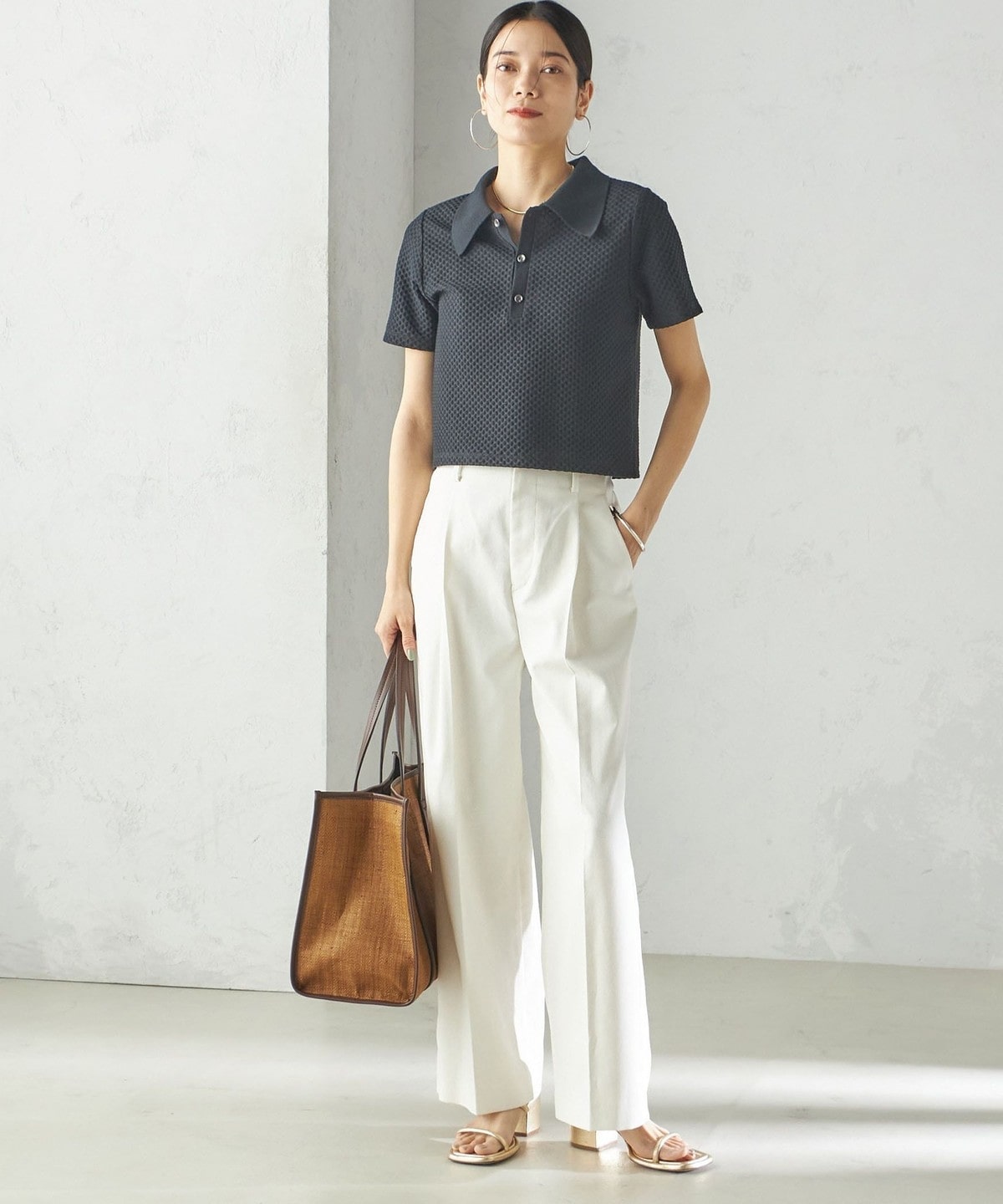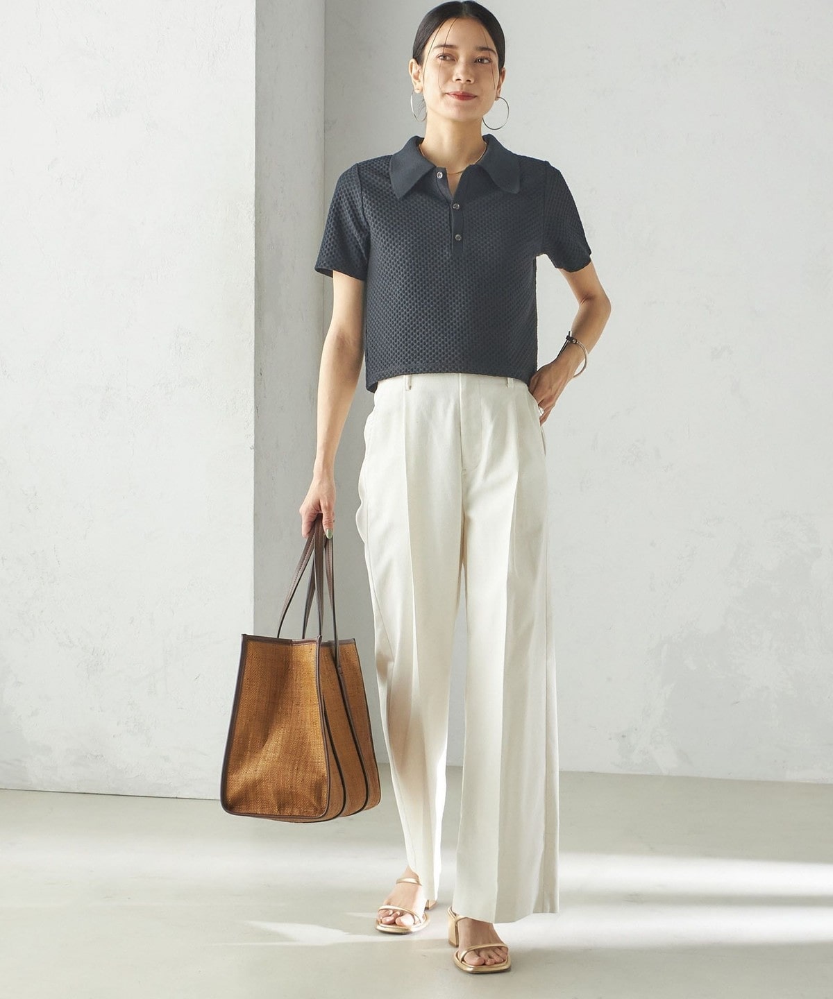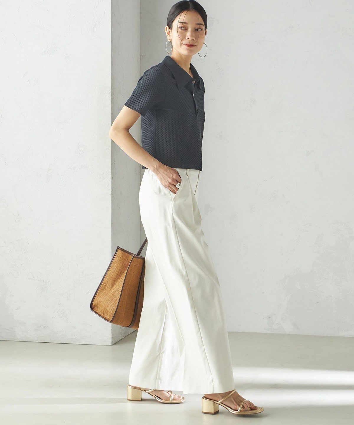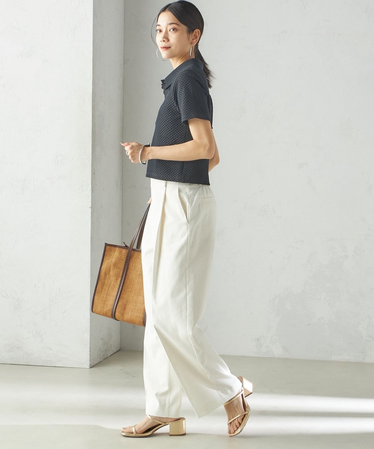 小泉里子コラボ:〈手洗い可能〉ツイル ウエスト テーパード パンツ