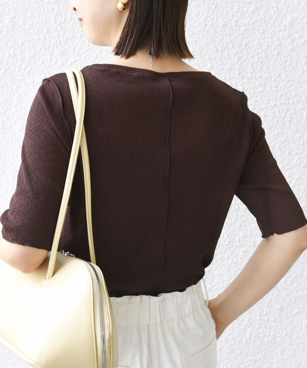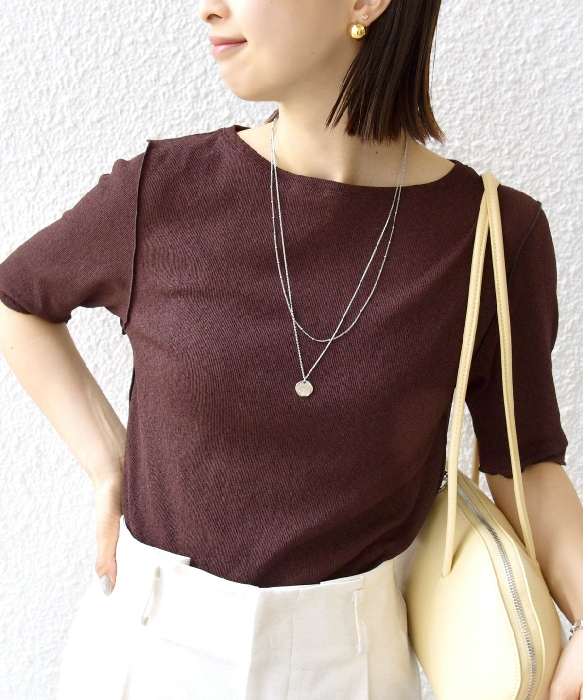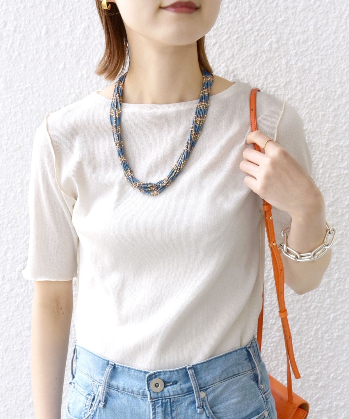 〈手洗い可能〉ラッセル レース クルーネック 5分袖 カットソー