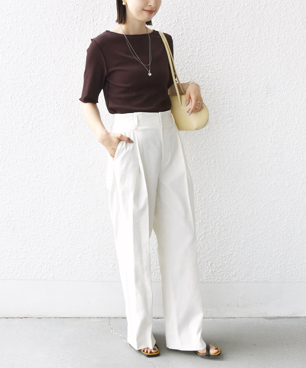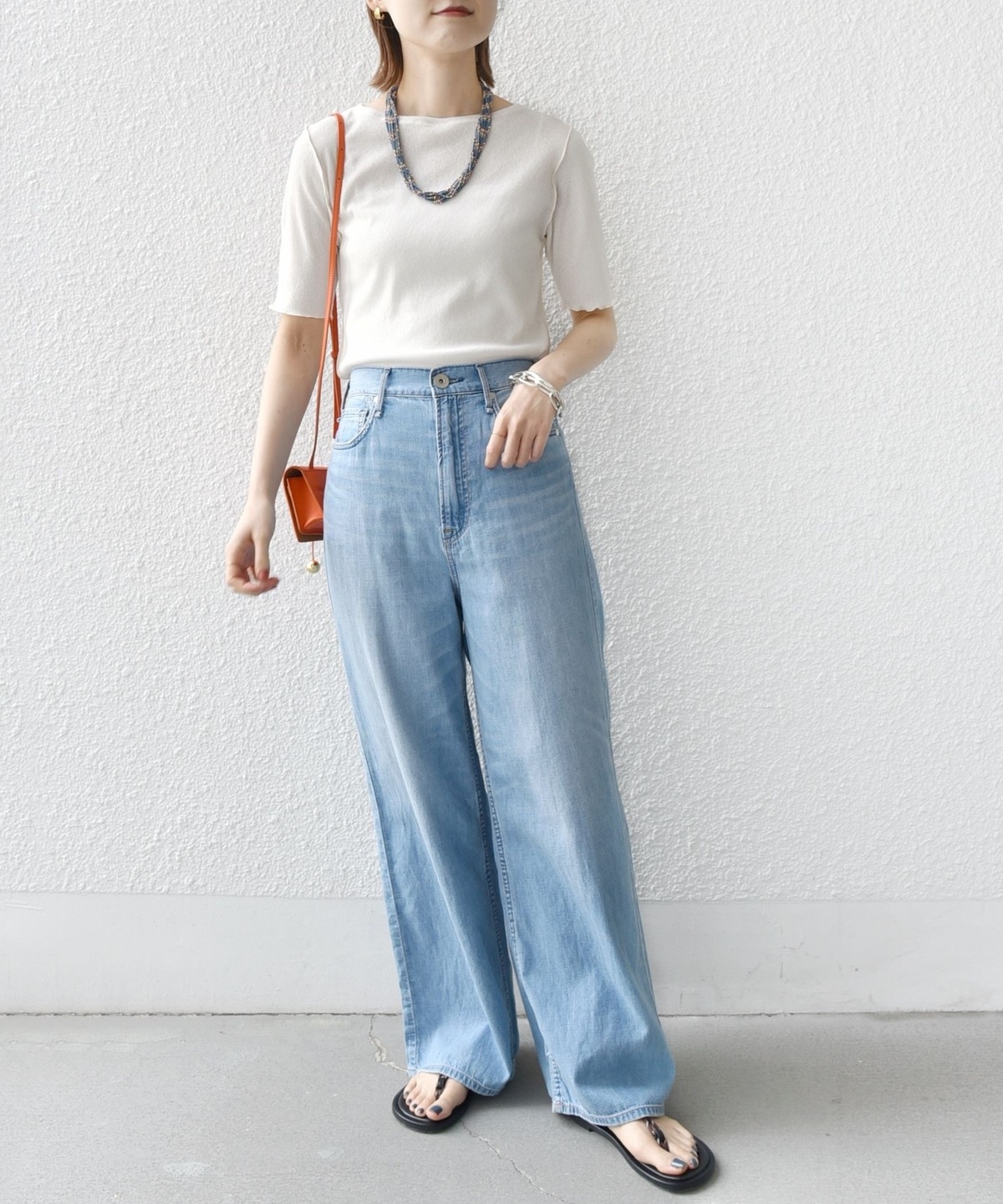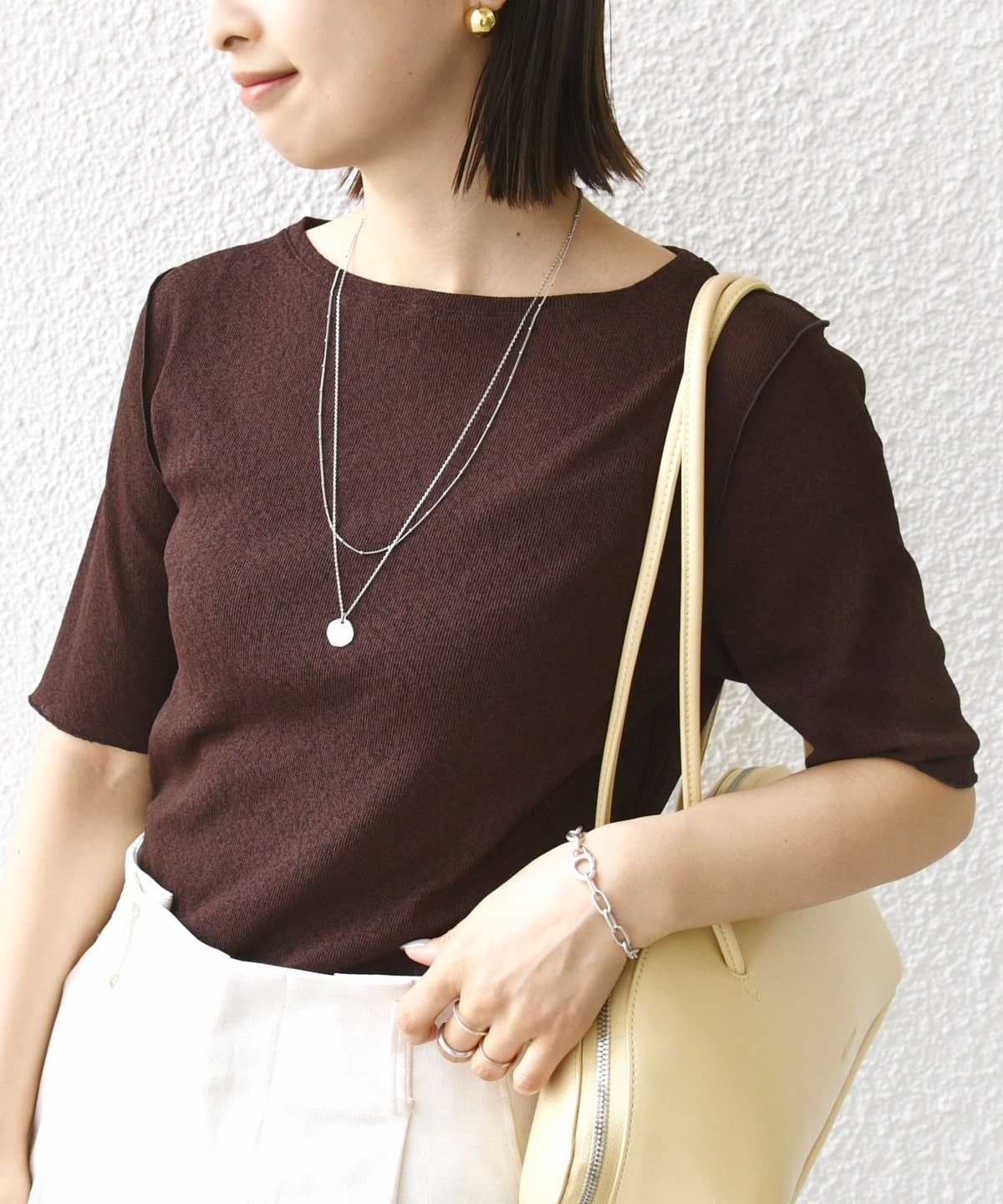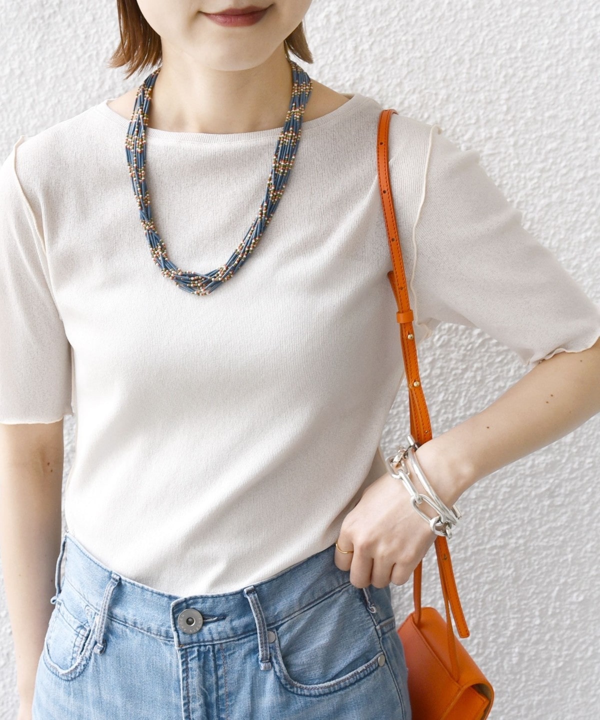 〈手洗い可能〉ラッセル レース クルーネック 5分袖 カットソー
