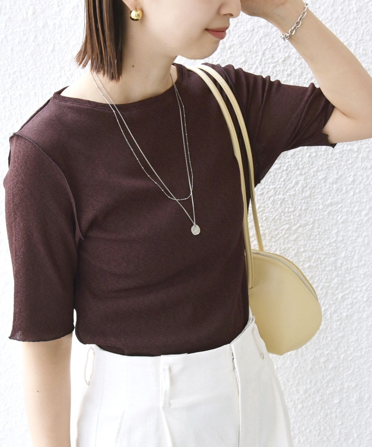 〈手洗い可能〉シアー トリコット ショート スリーブ プルオーバー