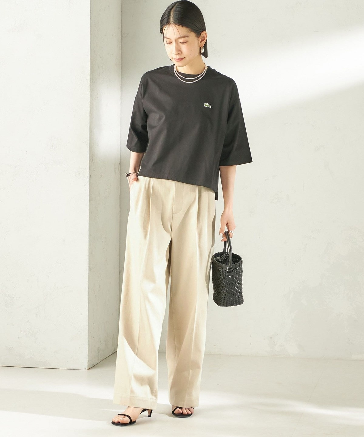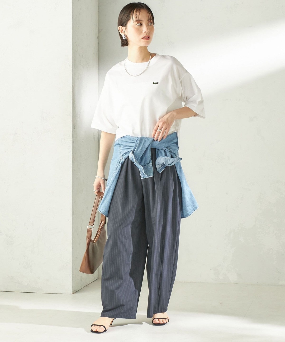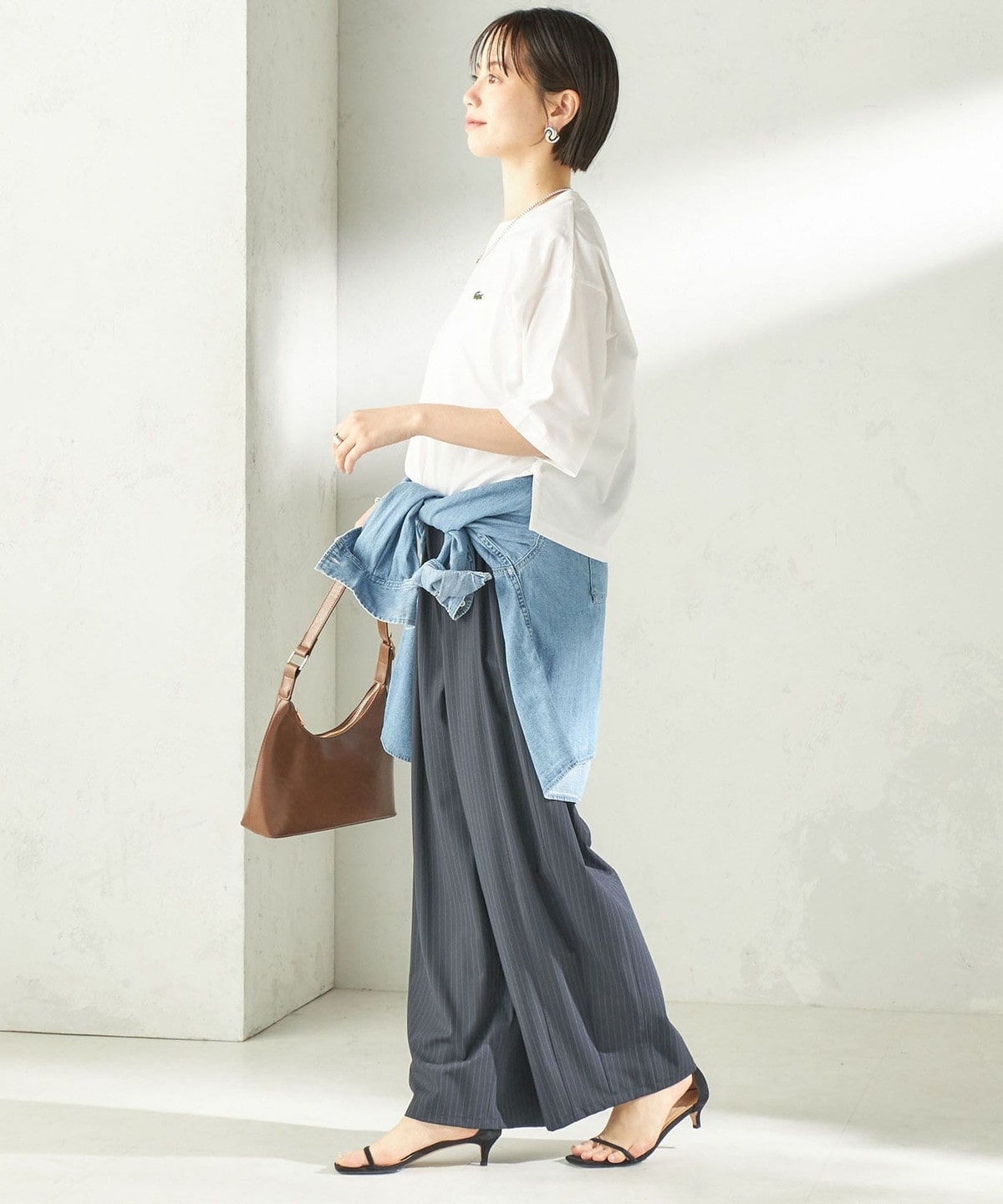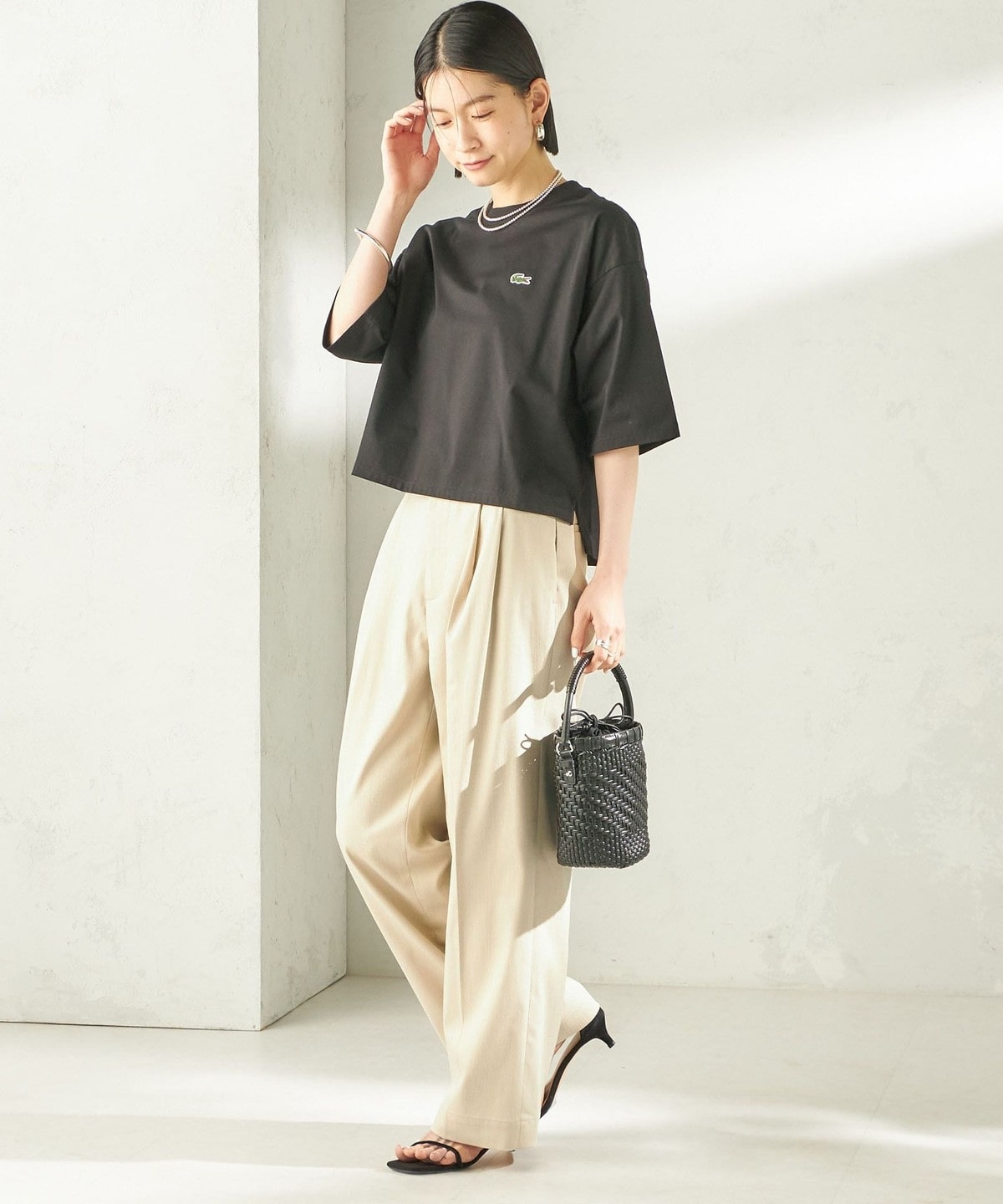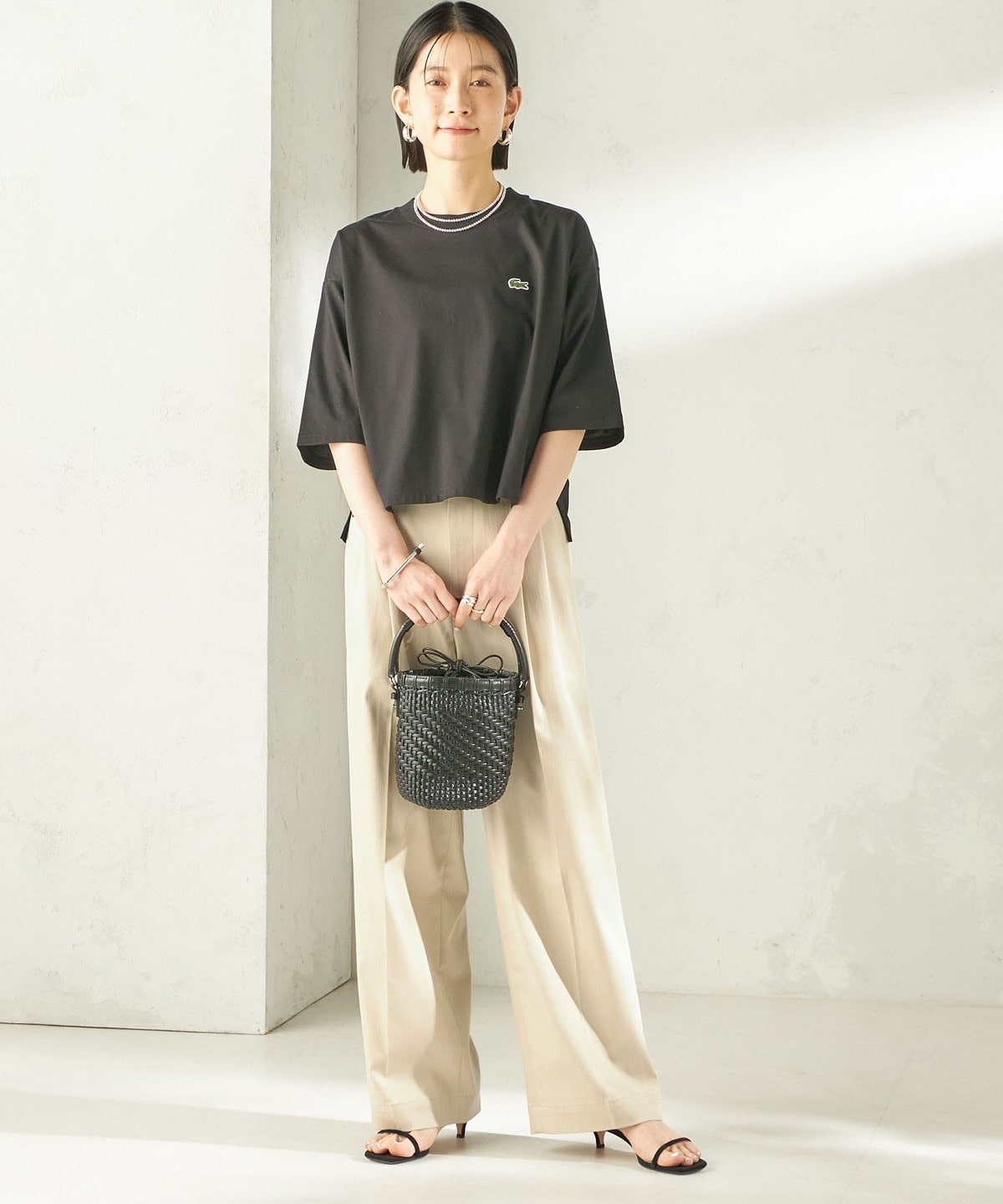 程よい身幅のゆとりと、長すぎない着丈のボックスシルエットのバランスで一枚で着用したときに決まりやすいデザイン。