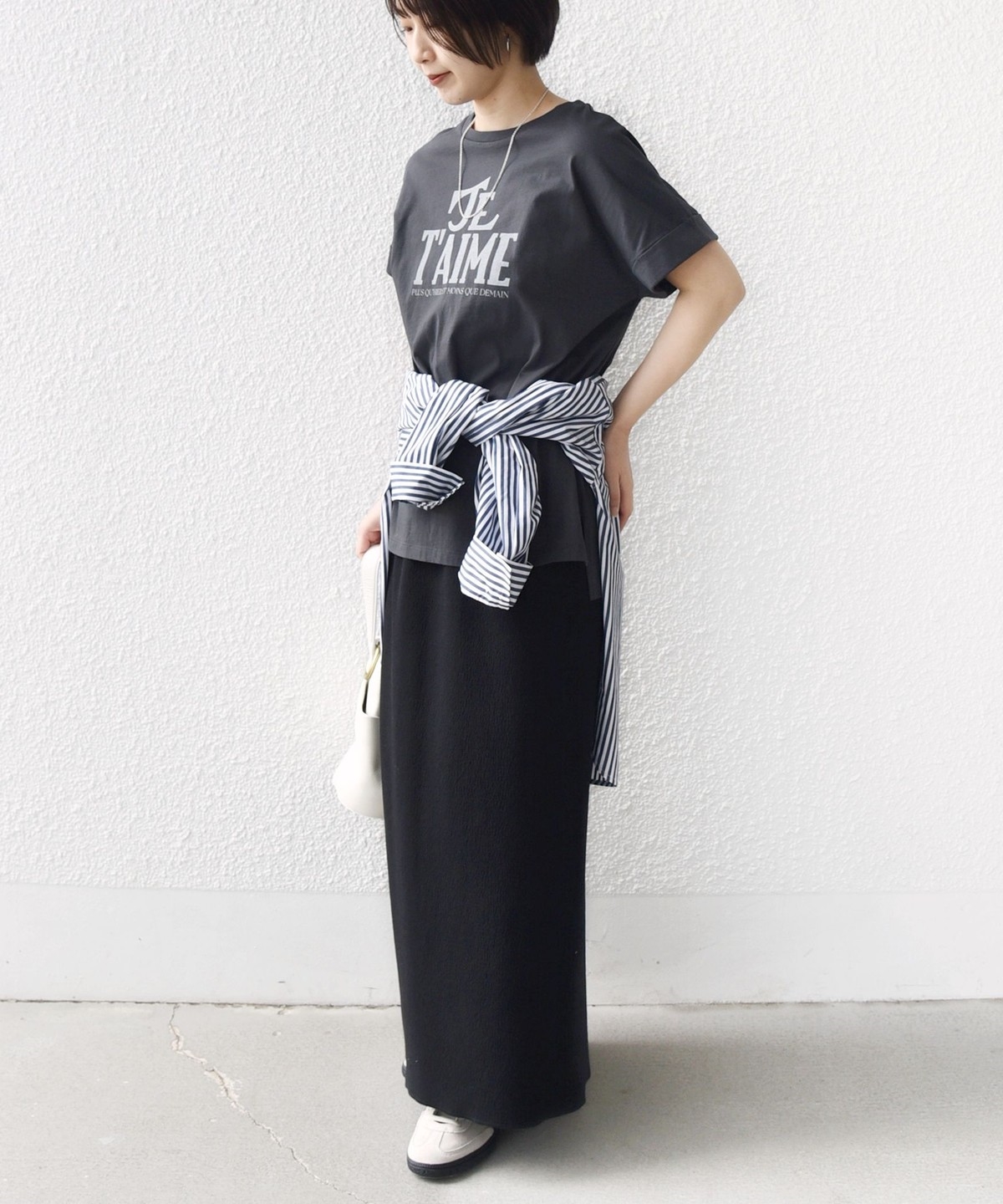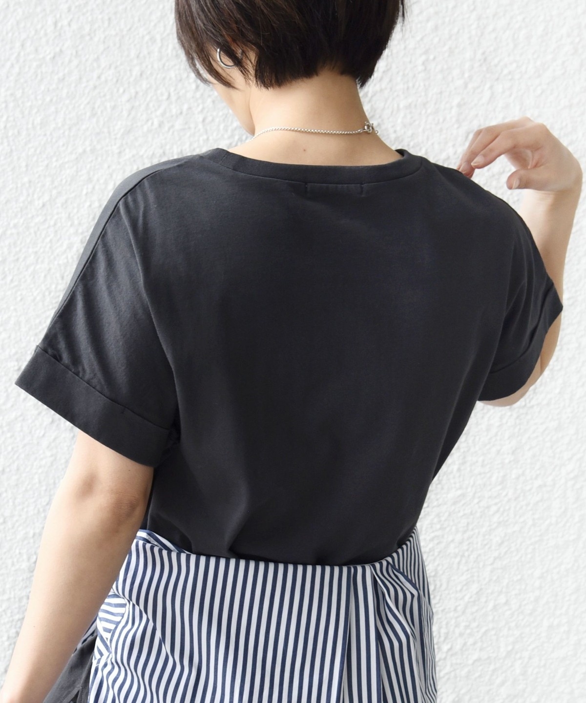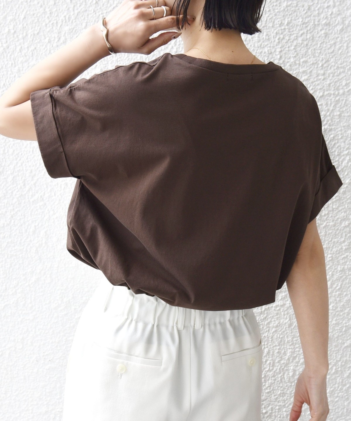 程よくゆったりとした形が着やすく、腕が隠れる袖丈も嬉しいポイントです。