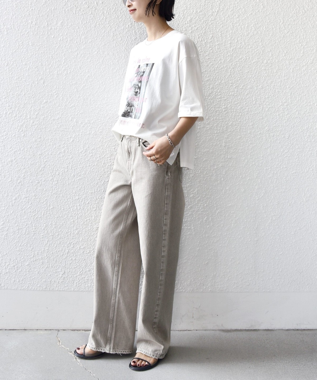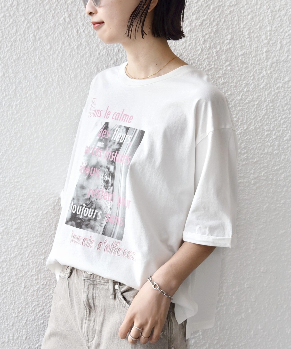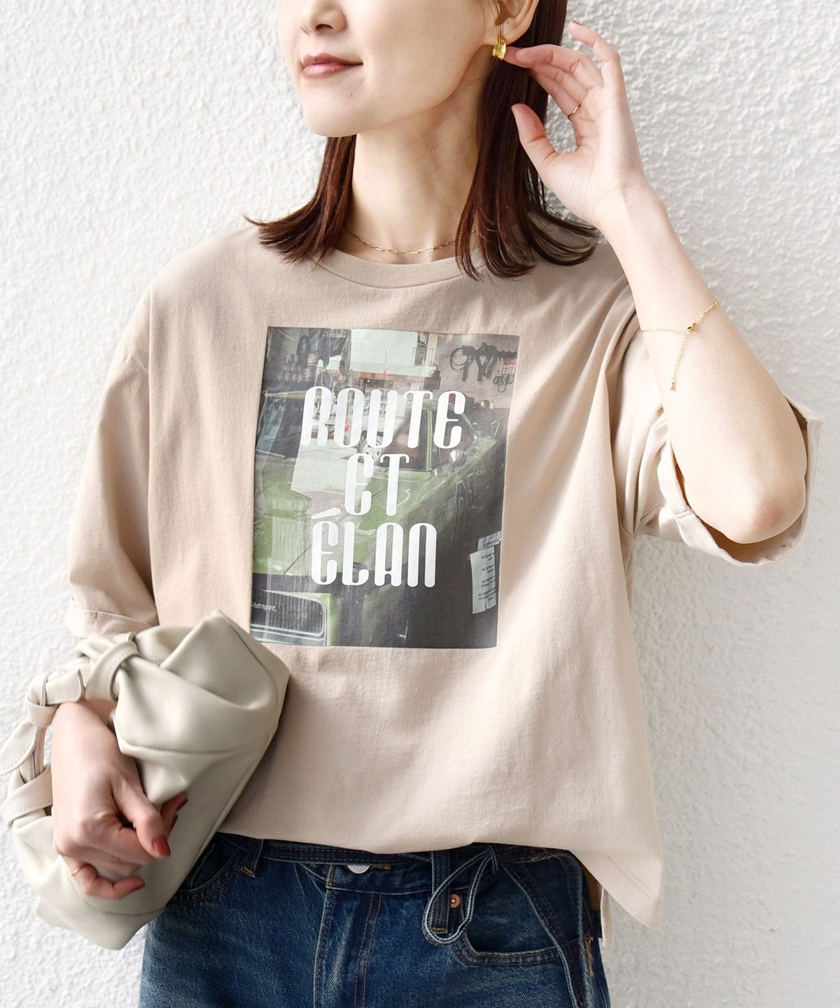 フォト×ロゴの存在感がスタイリングのポイントとなるこだわりTシャツ