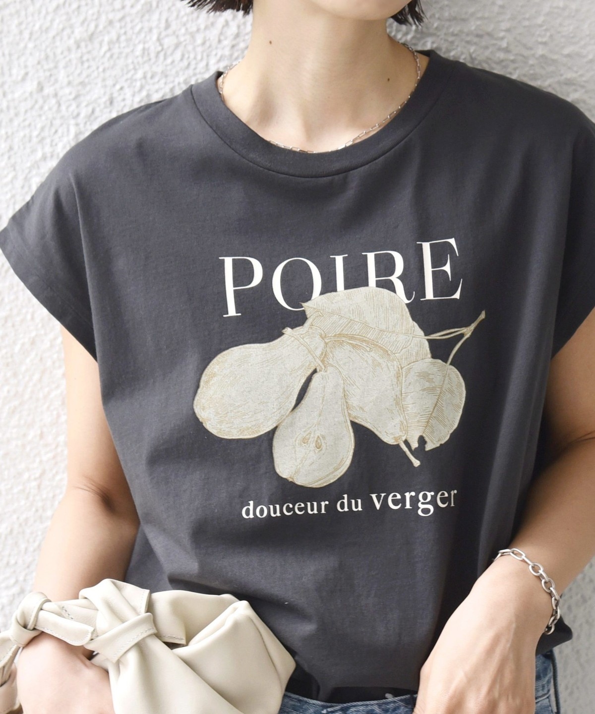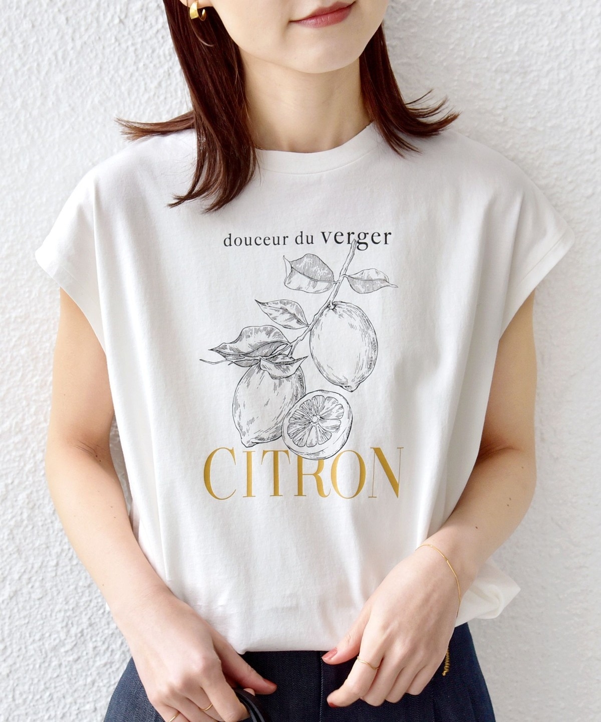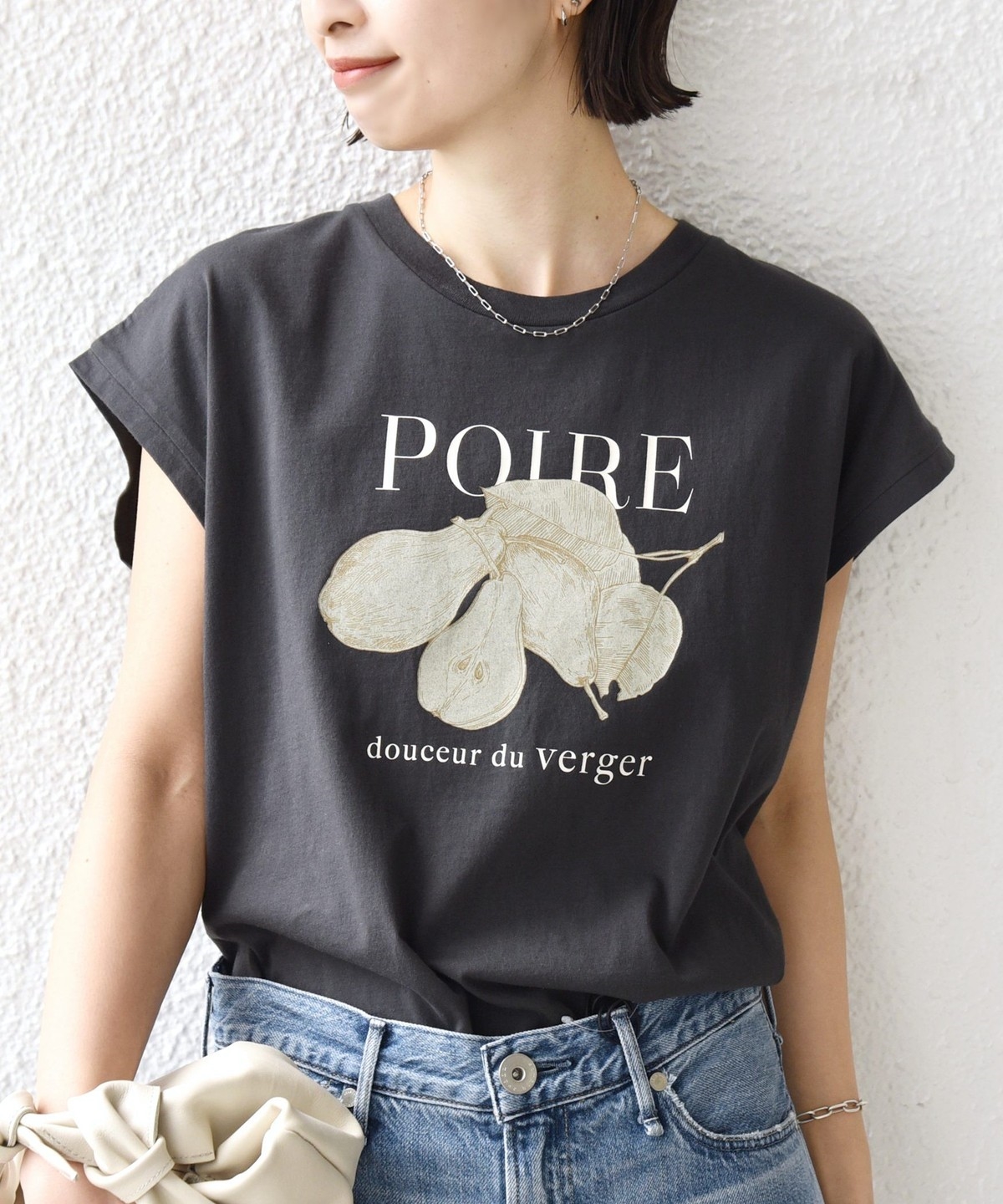 スケッチ風のフルーツモチーフがPOPでありながら大人な印象で着れるプリントTEE。