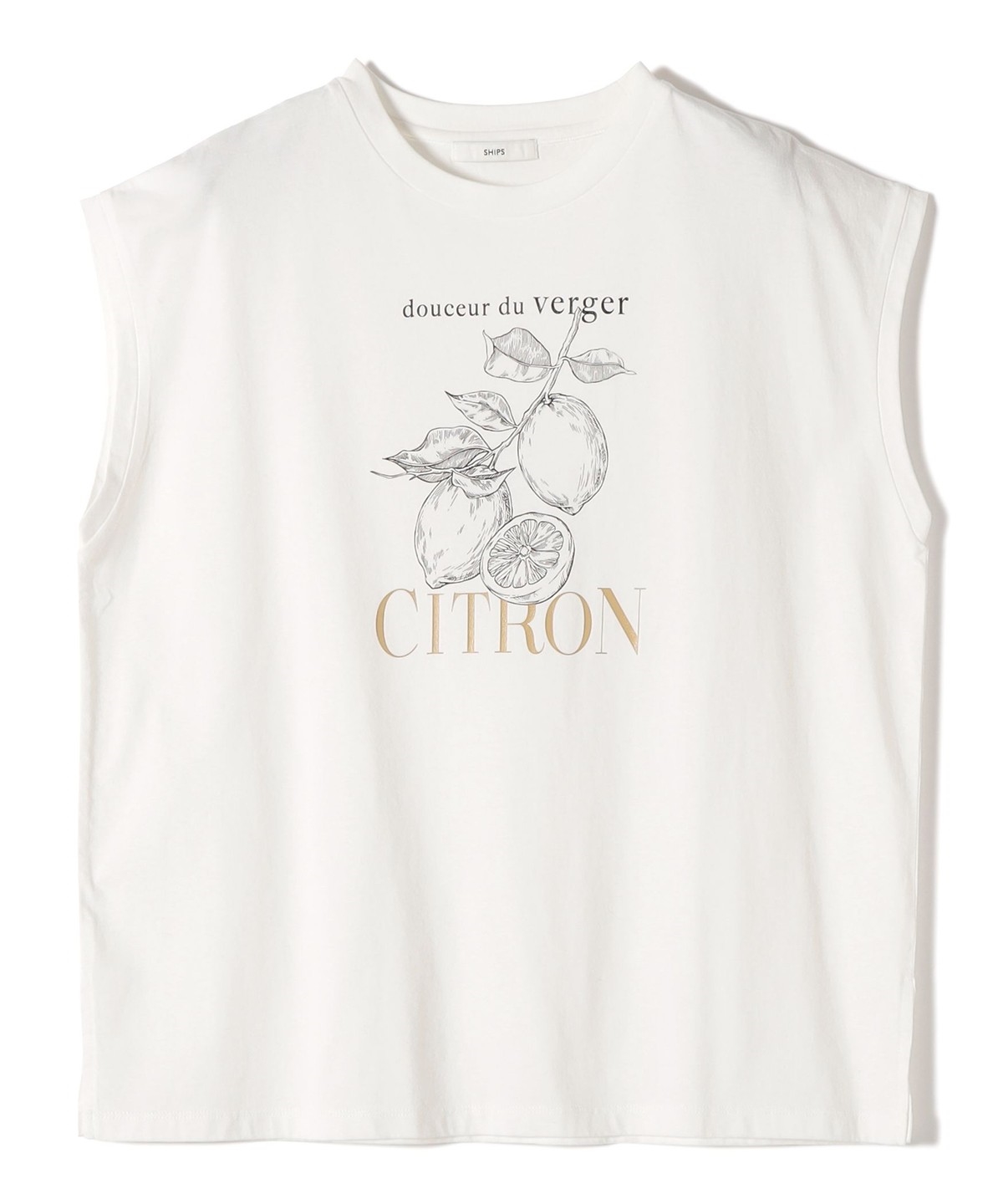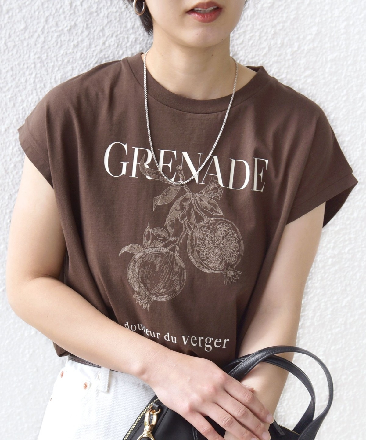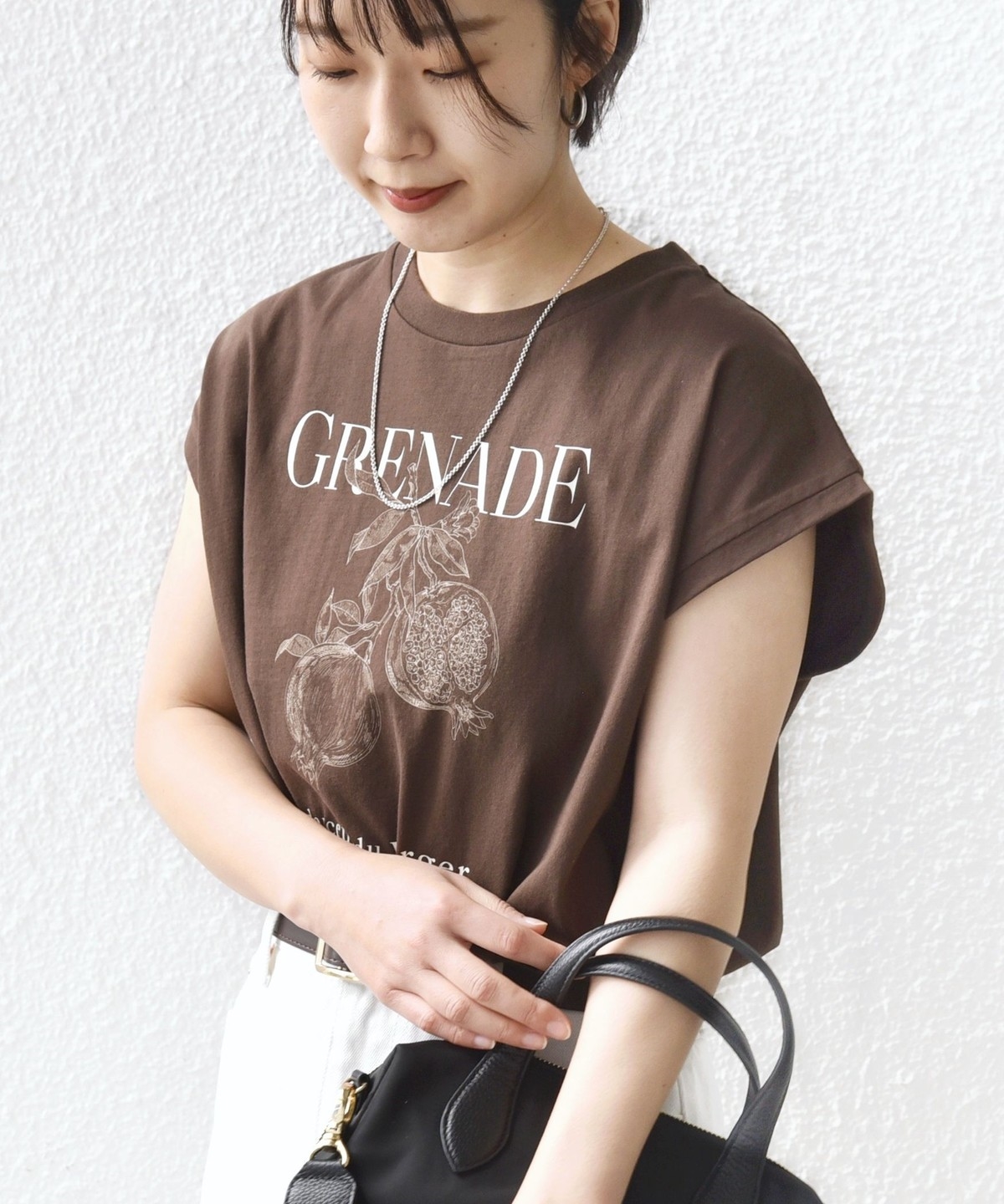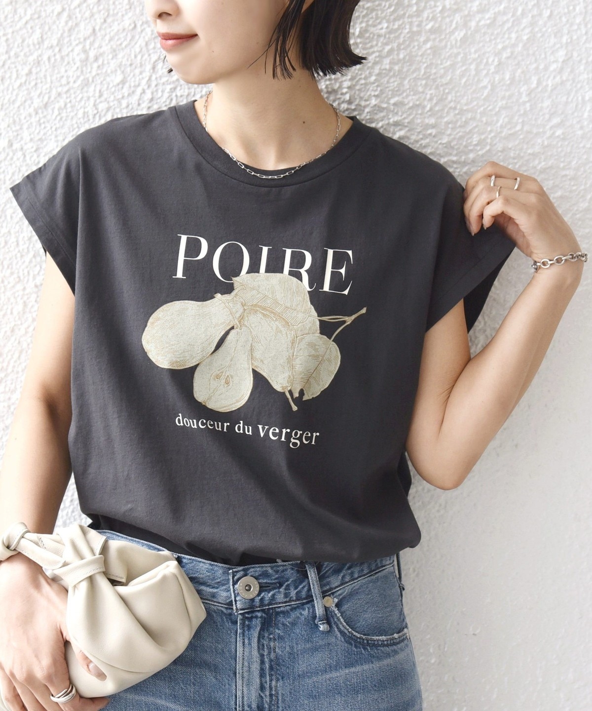 スケッチ風のフルーツモチーフがPOPでありながら大人な印象で着れるプリントTEE。