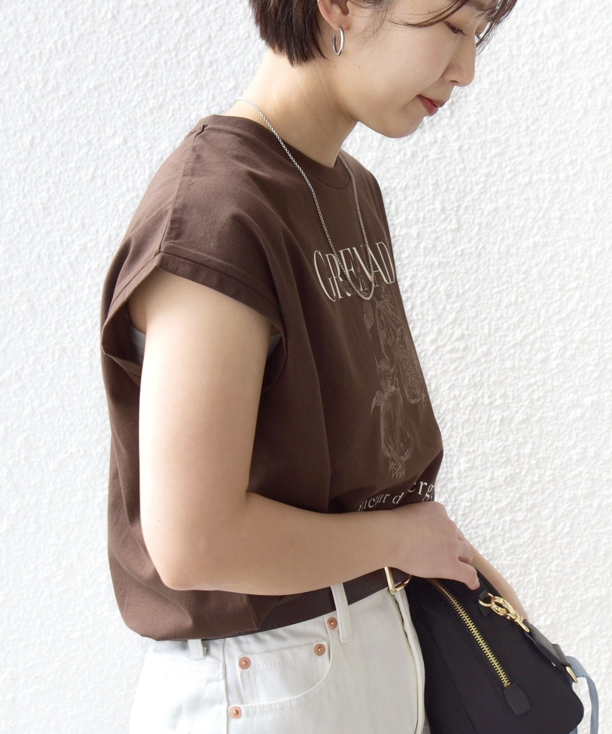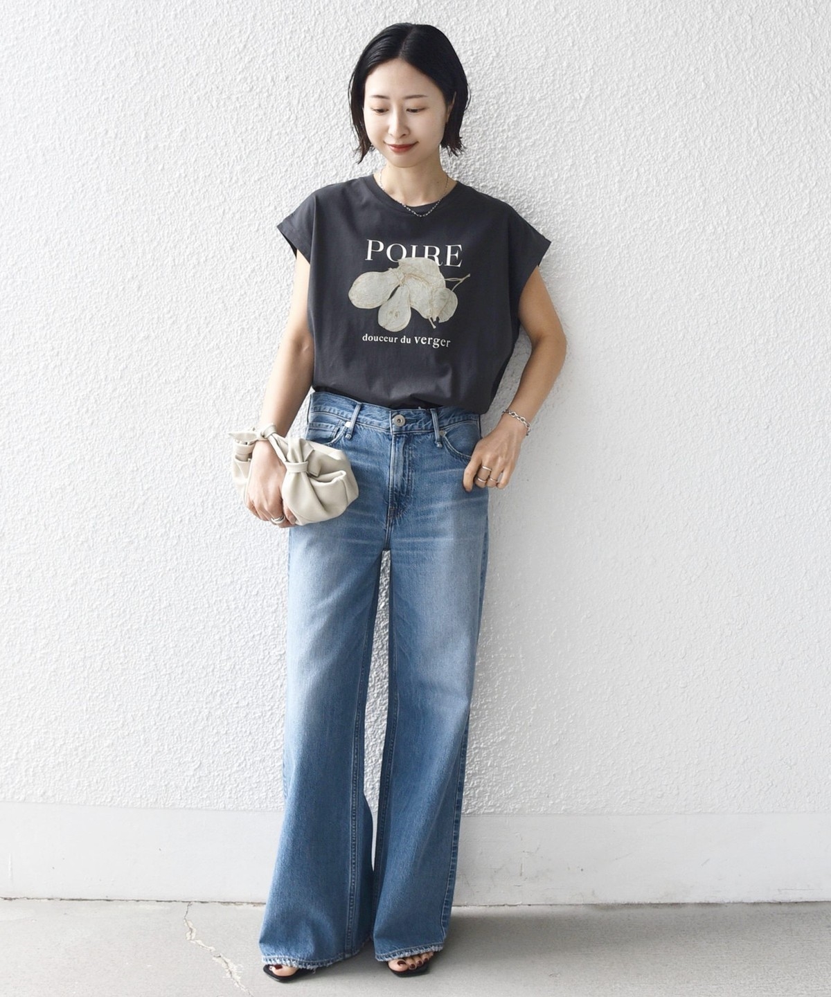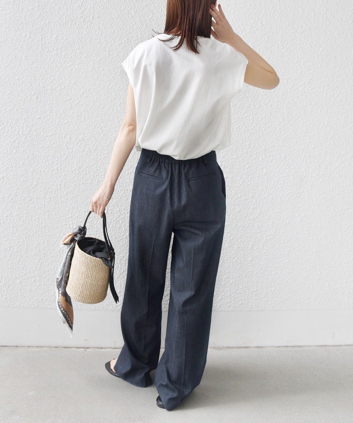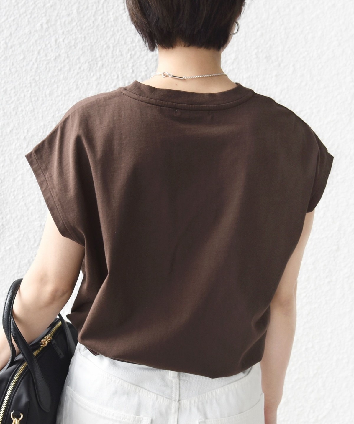 腕が隠れるゆったりとしたノースリーブで、暑い日の一枚着としても活躍します。