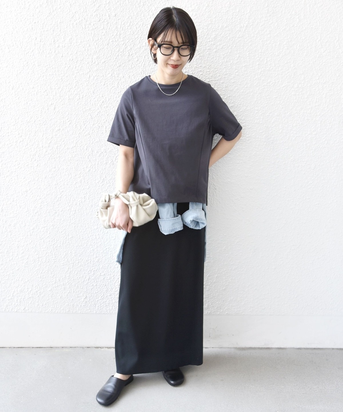 ボリュームの出ないIラインスカートも相性抜群です。