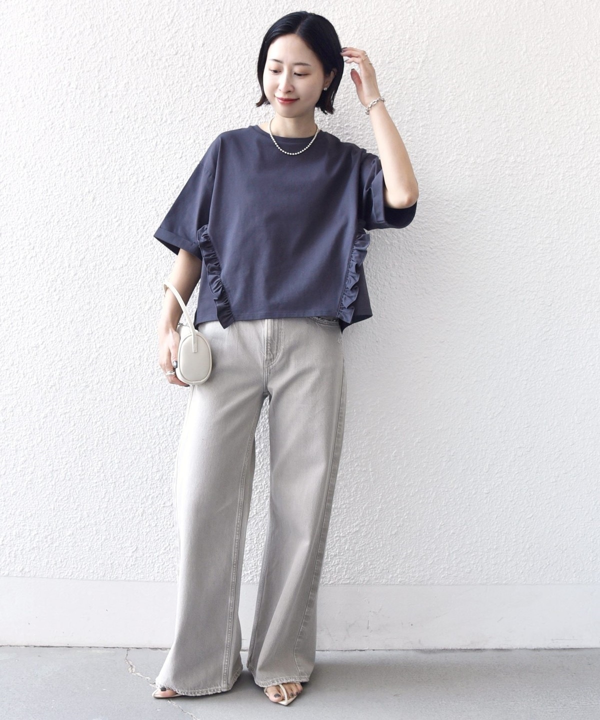 程よくハリのあるきれいめな生地なので、カジュアルになりすぎず着ていただけます。