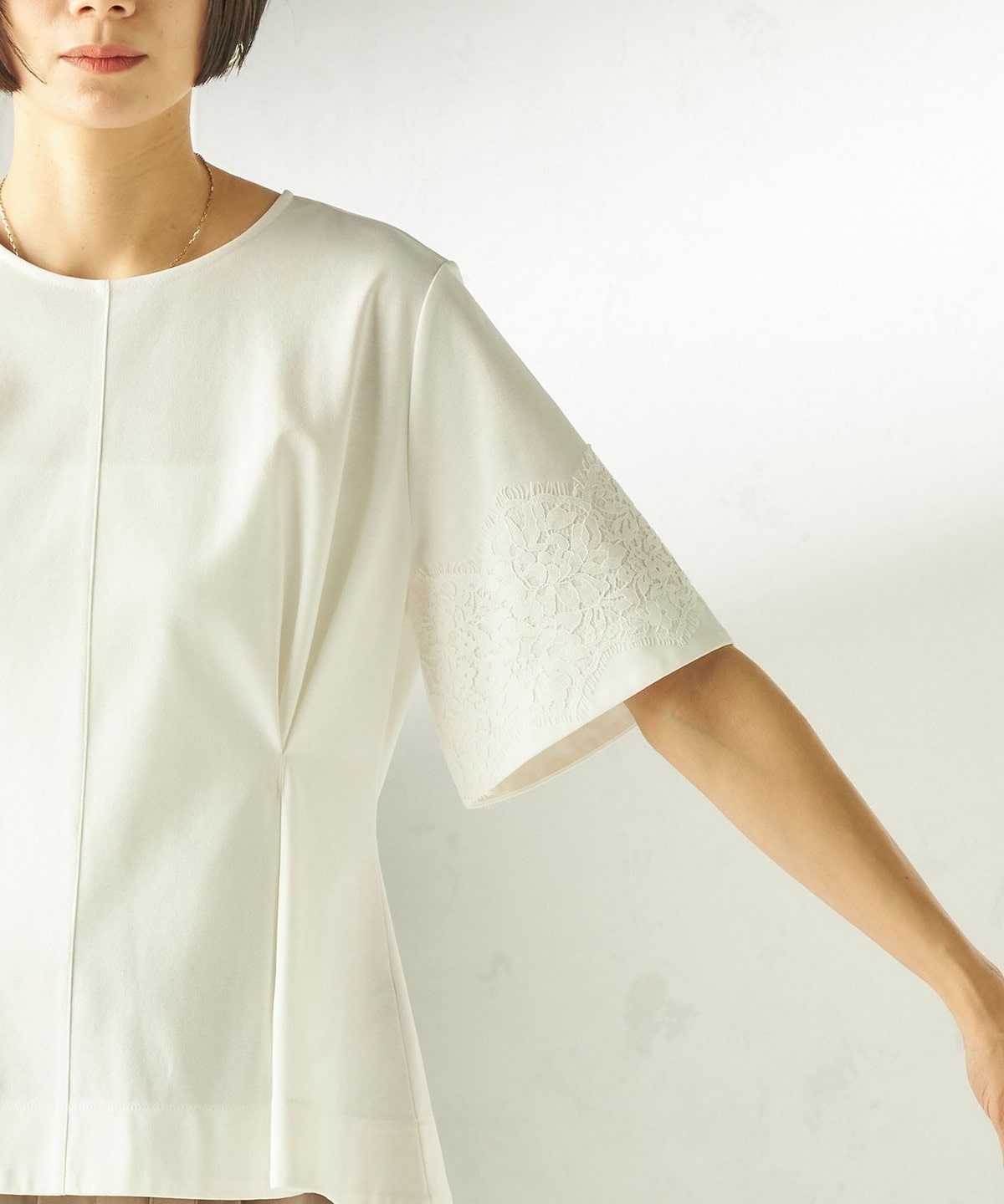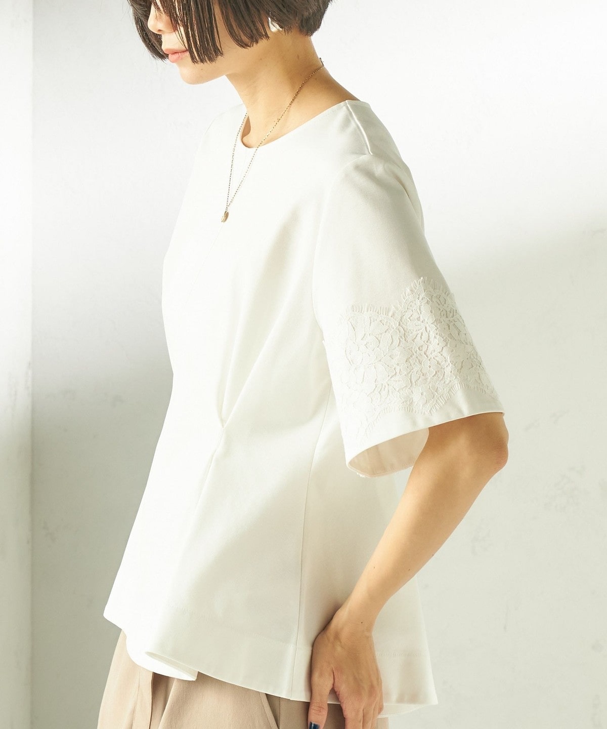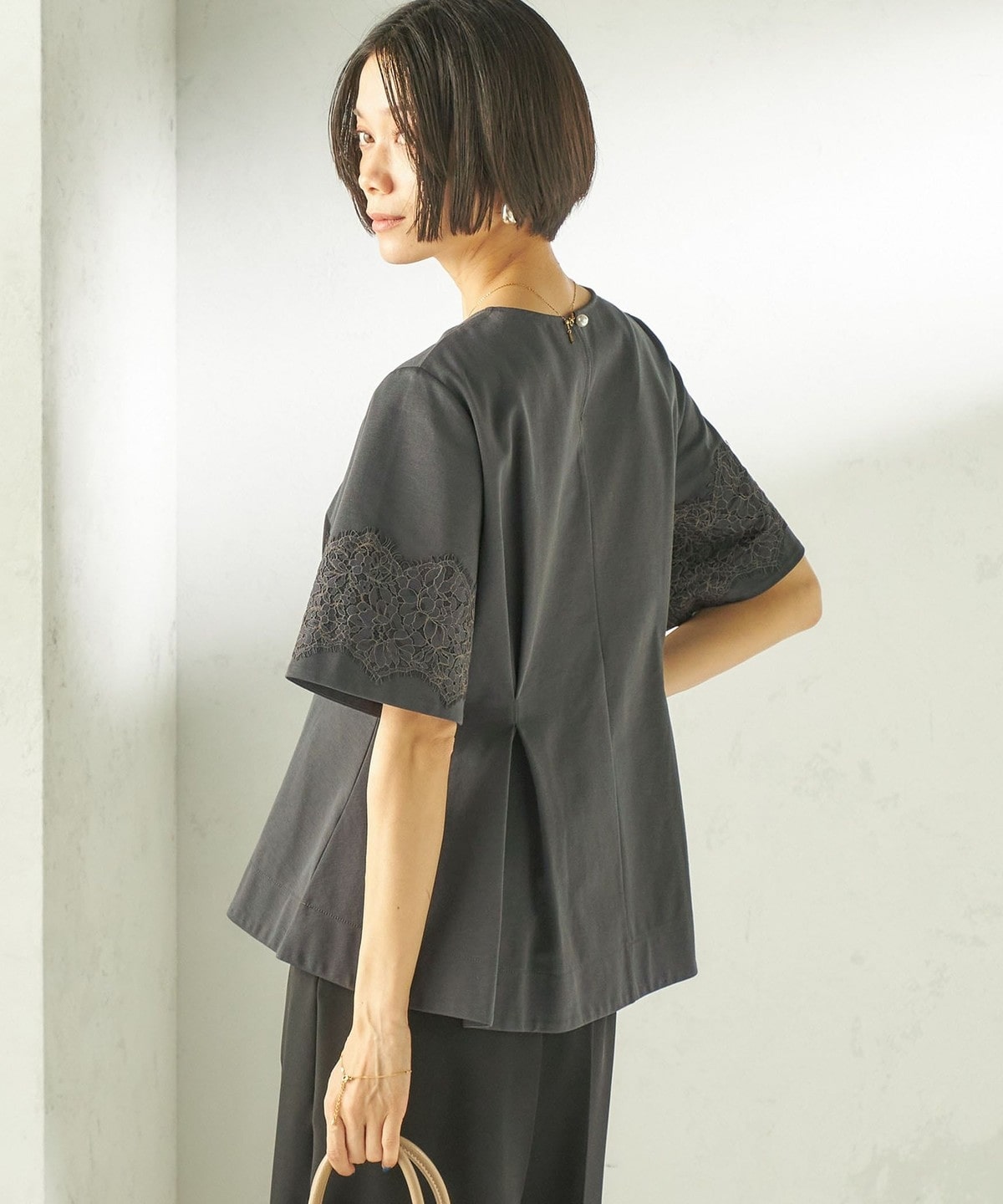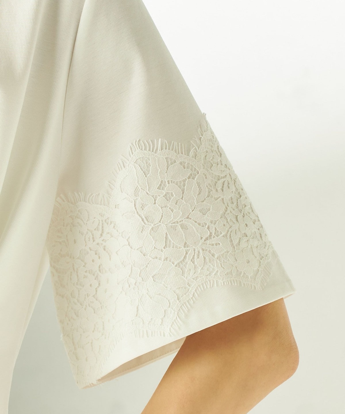 袖のレースはボディと同色でまとめ、さりげない華やかさをプラスしています。