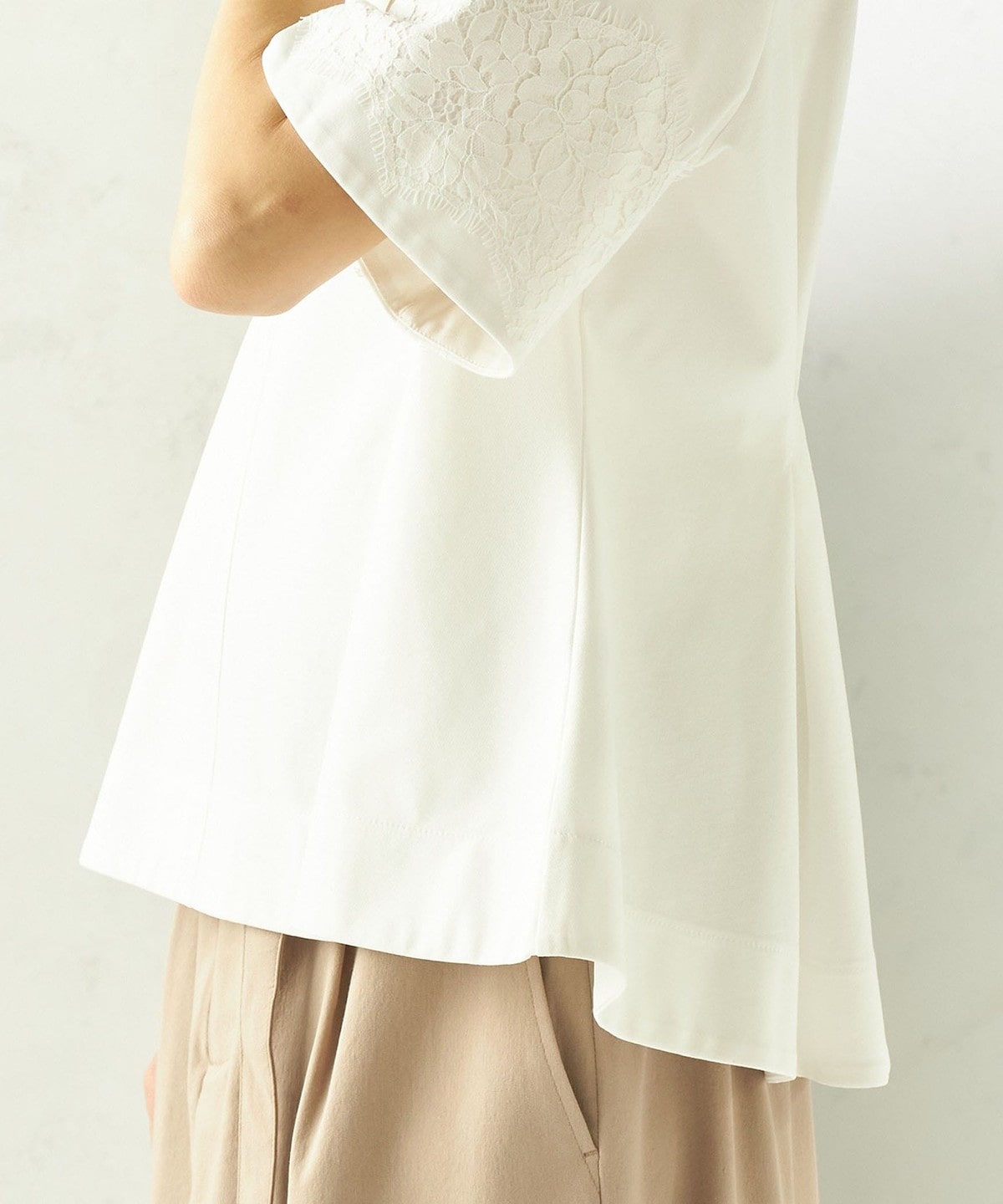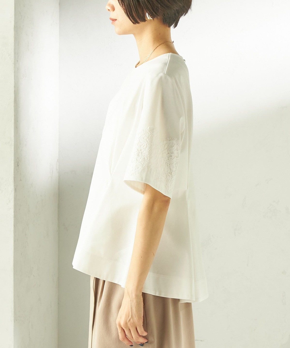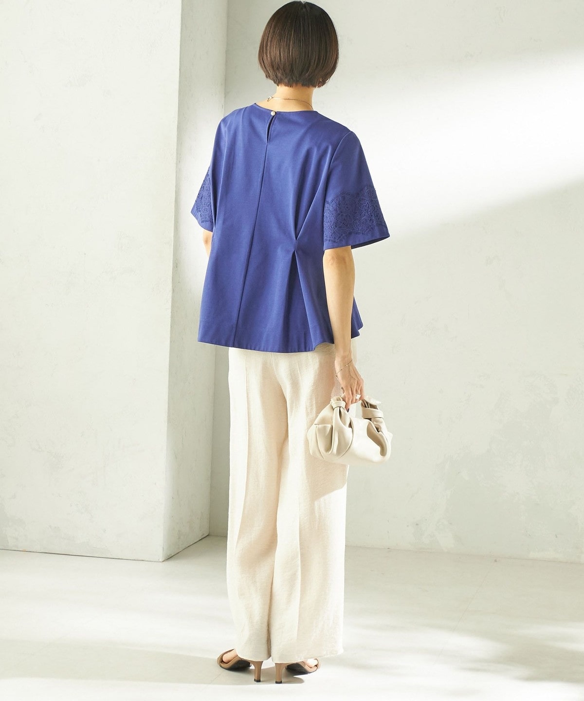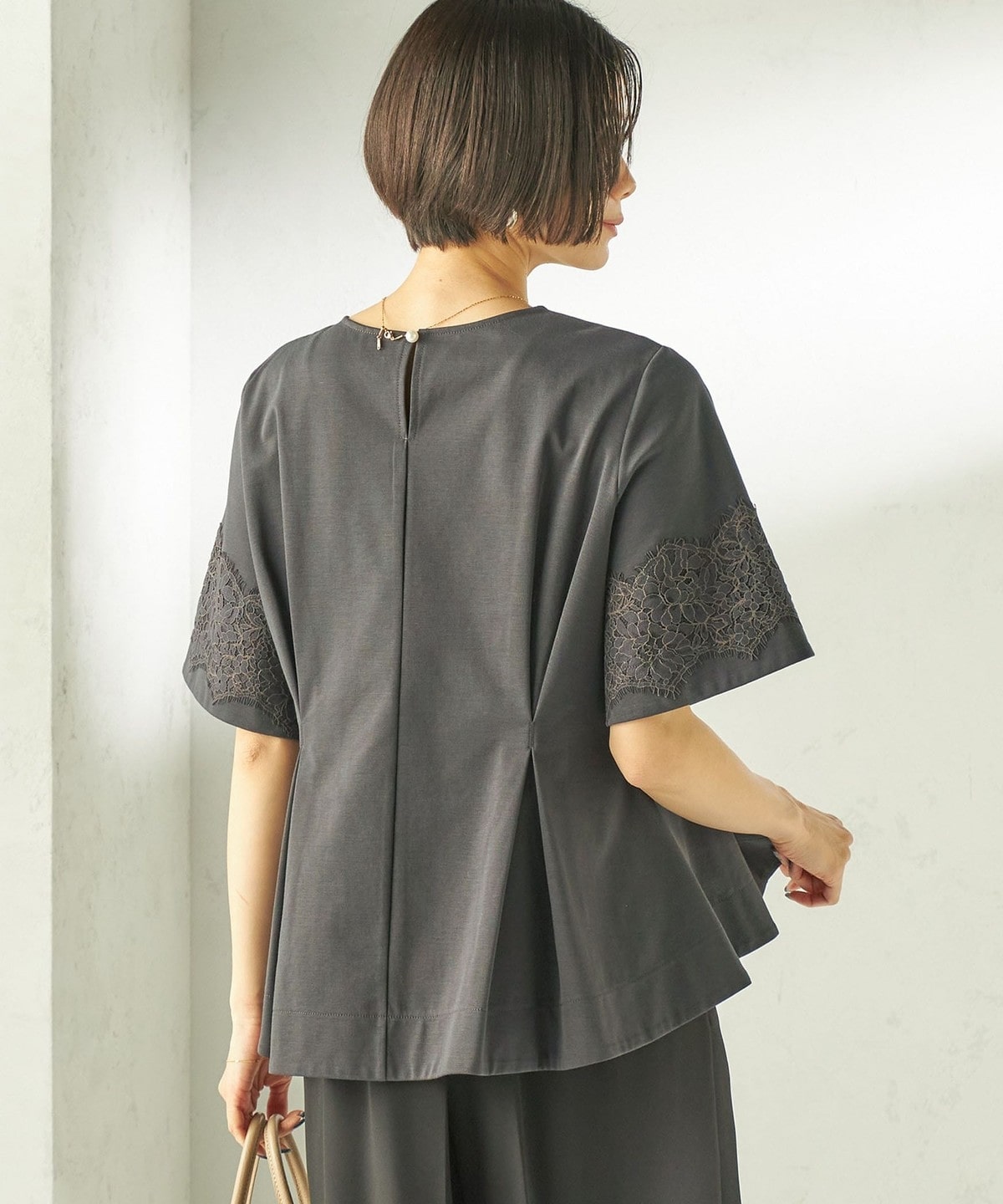 袖のレースはボディと同色でまとめ、さりげない華やかさをプラスしています。