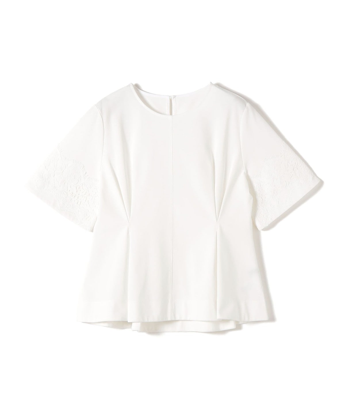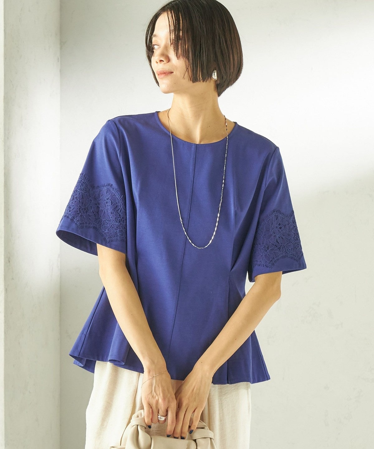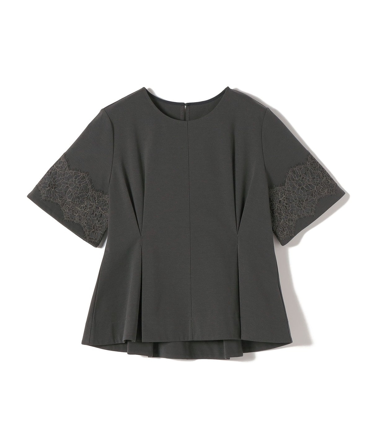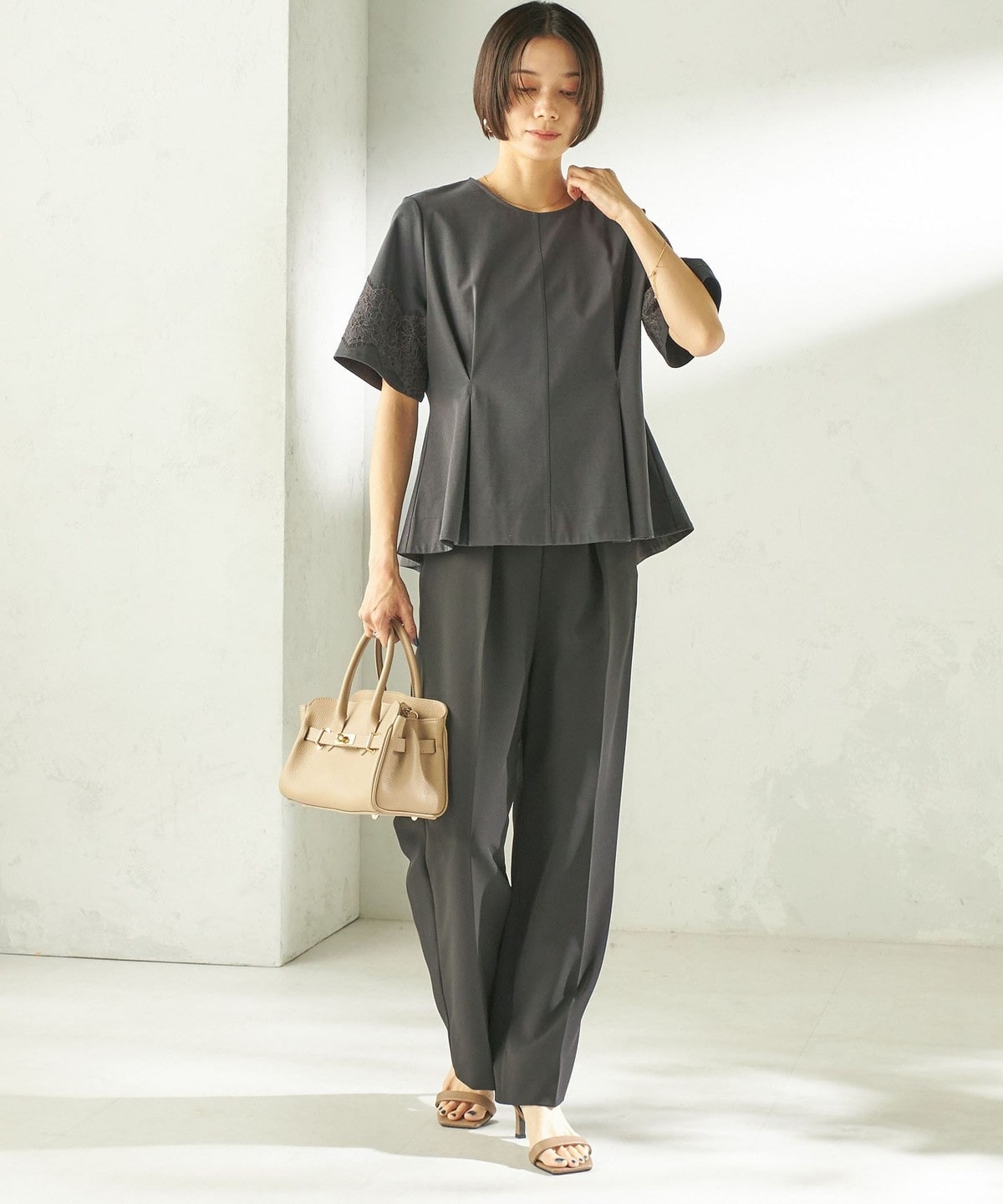 袖のレースはボディと同色でまとめ、さりげない華やかさをプラスしています。