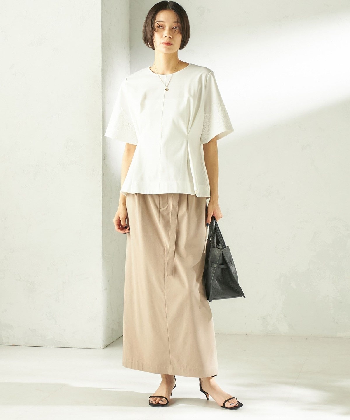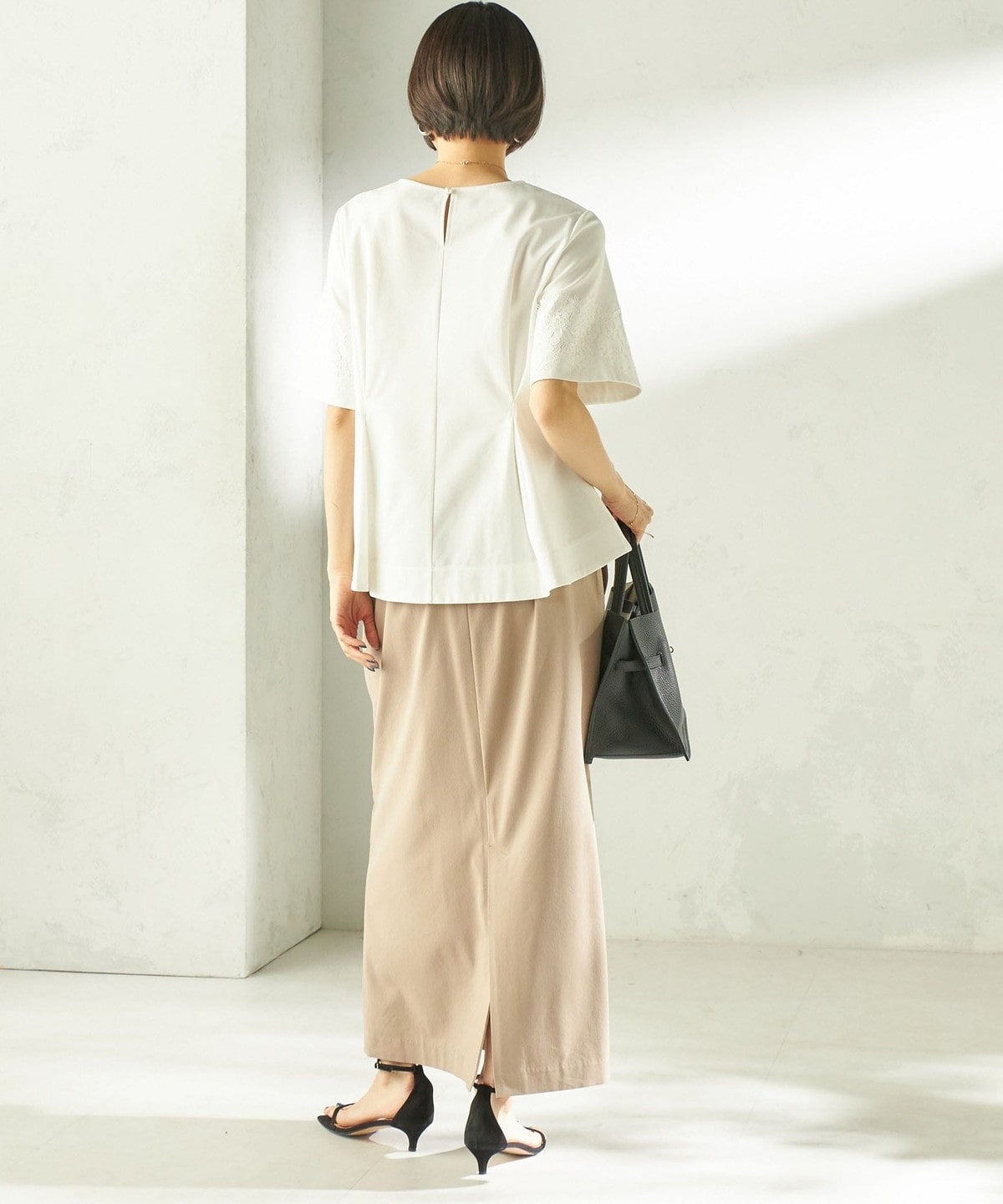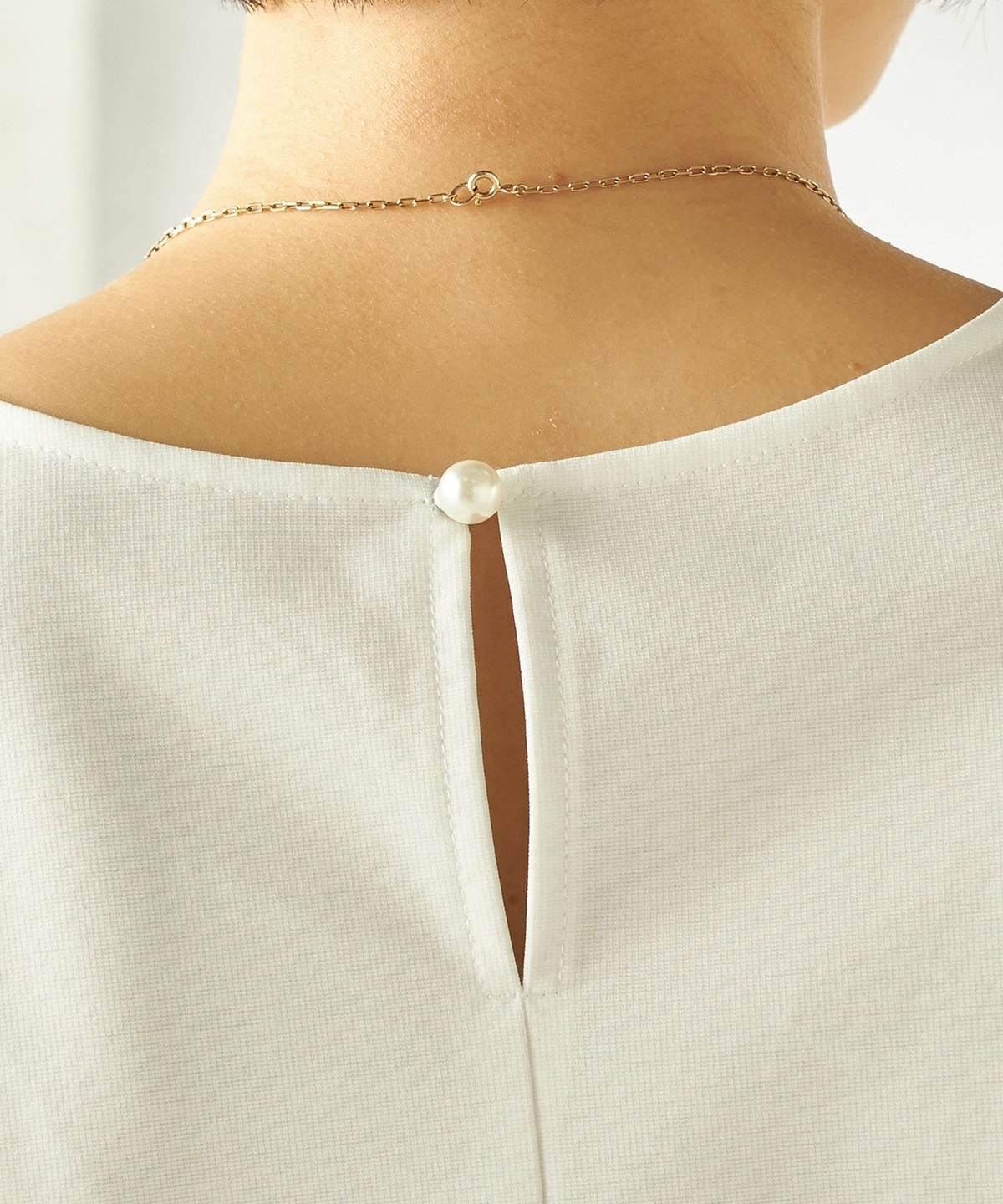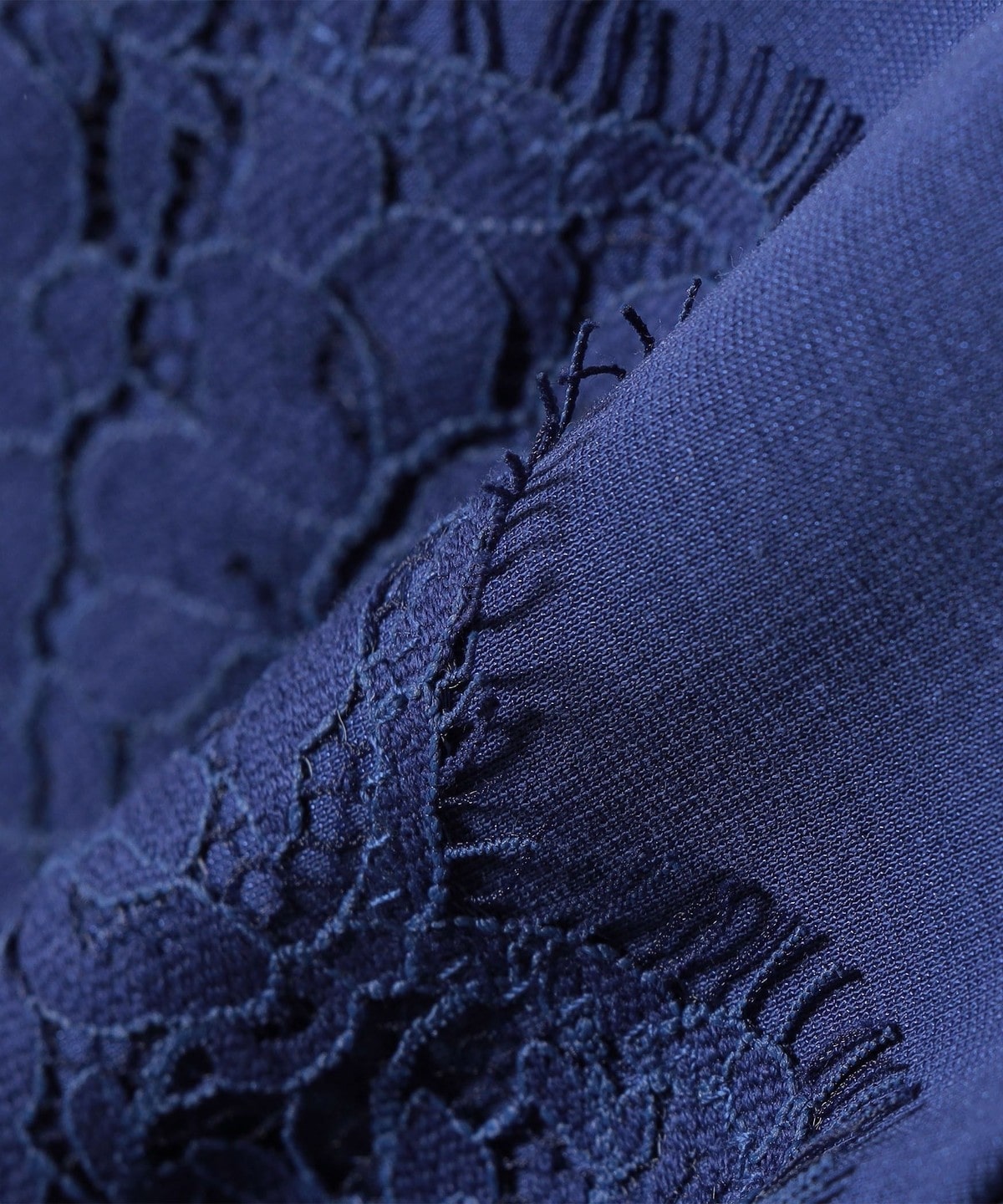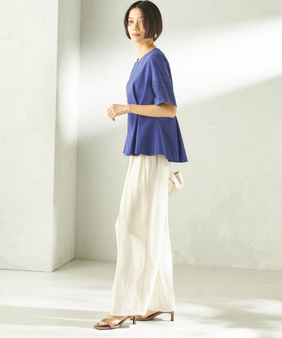 ウエストタックと袖のレース使いで立体感を出し、ブラウスのような上品な印象に仕上げています。