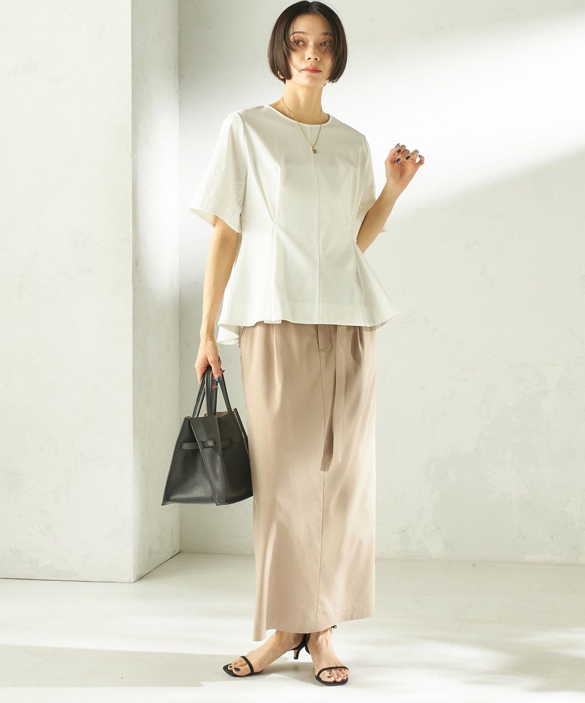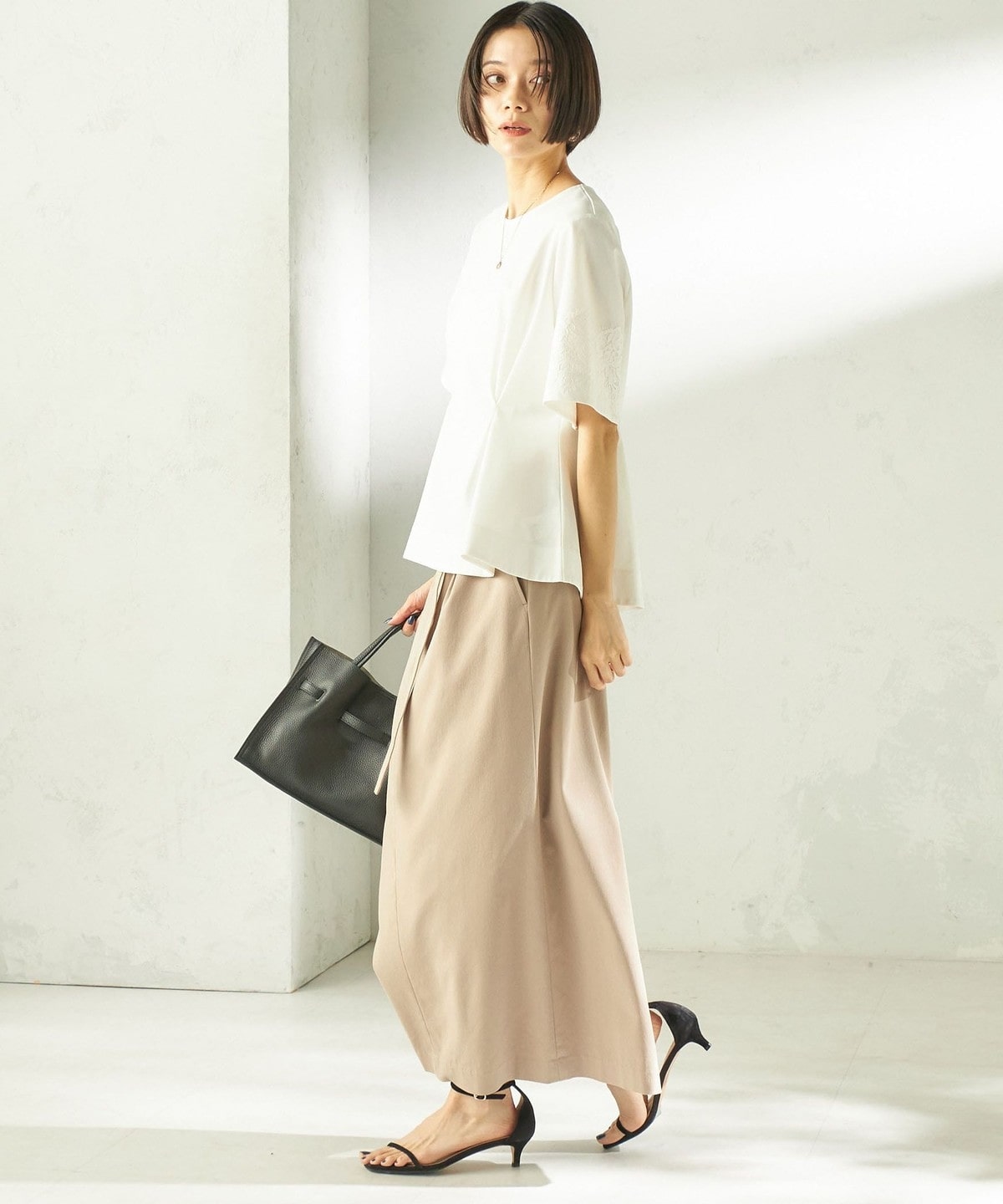 ストレートやテーパードパンツ、アイラインスカートなど幅広いボトムと好相性。