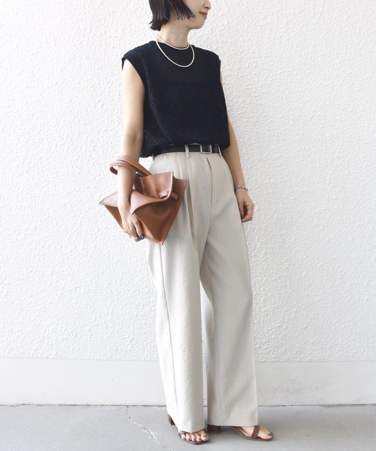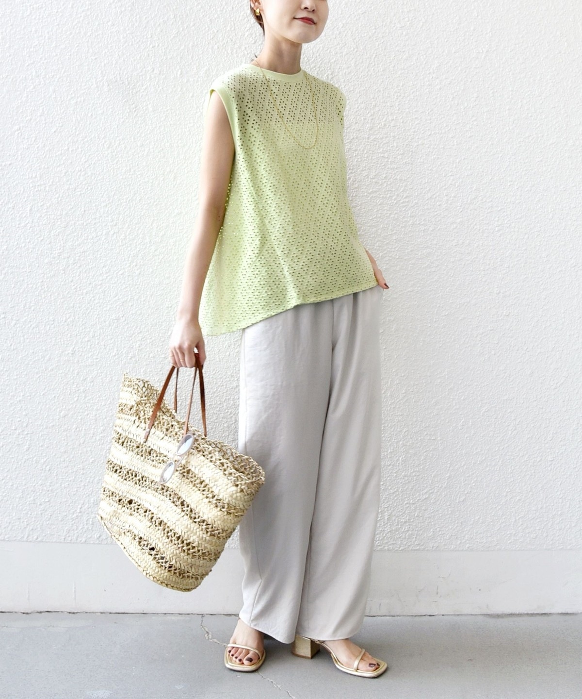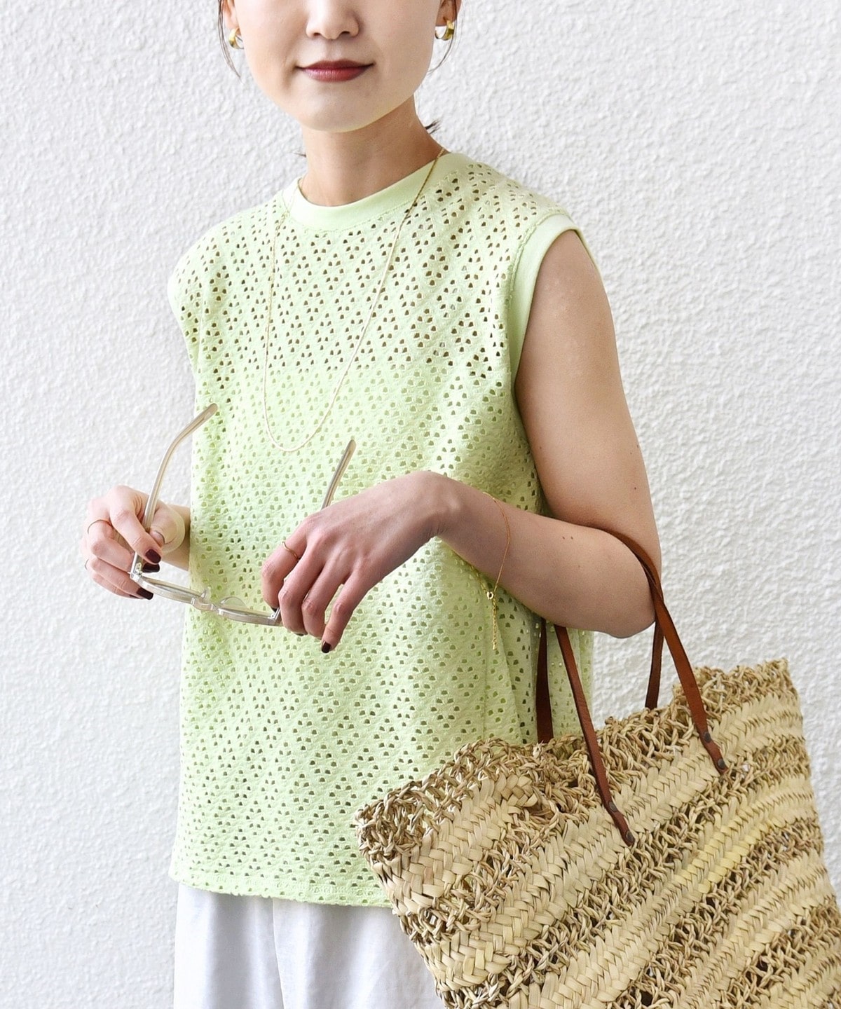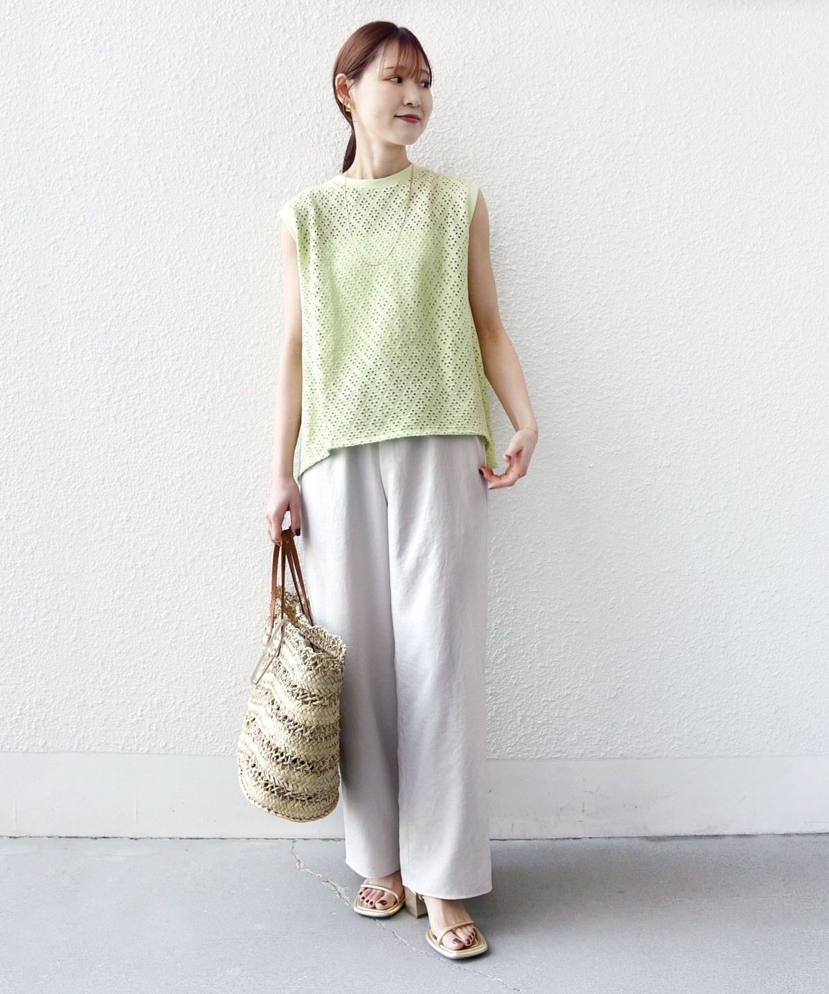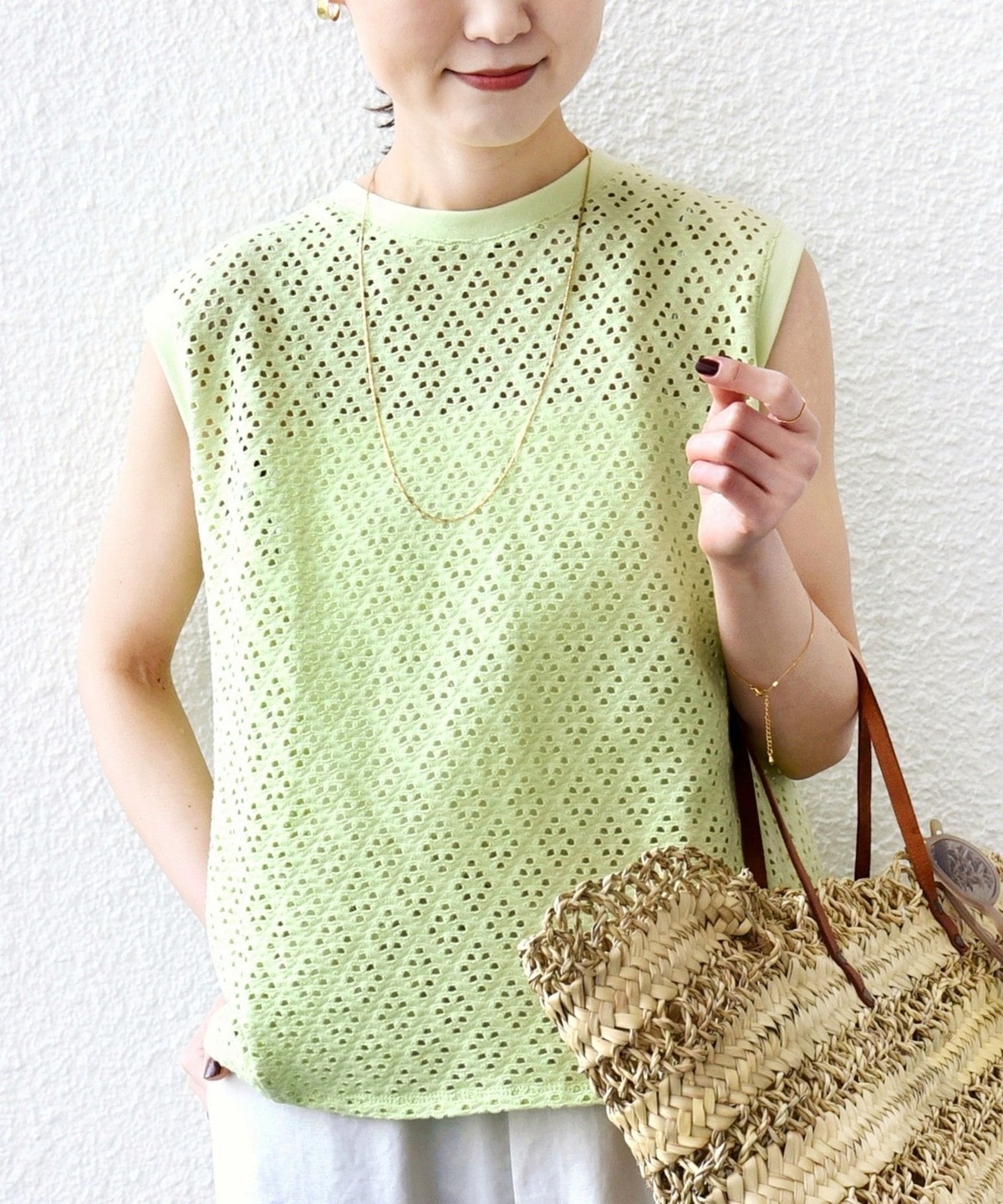 透けすぎず、インナーもキャミソールを合わせれば夏に涼しく着ていただけるのも魅力です。