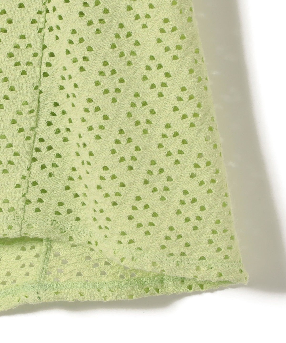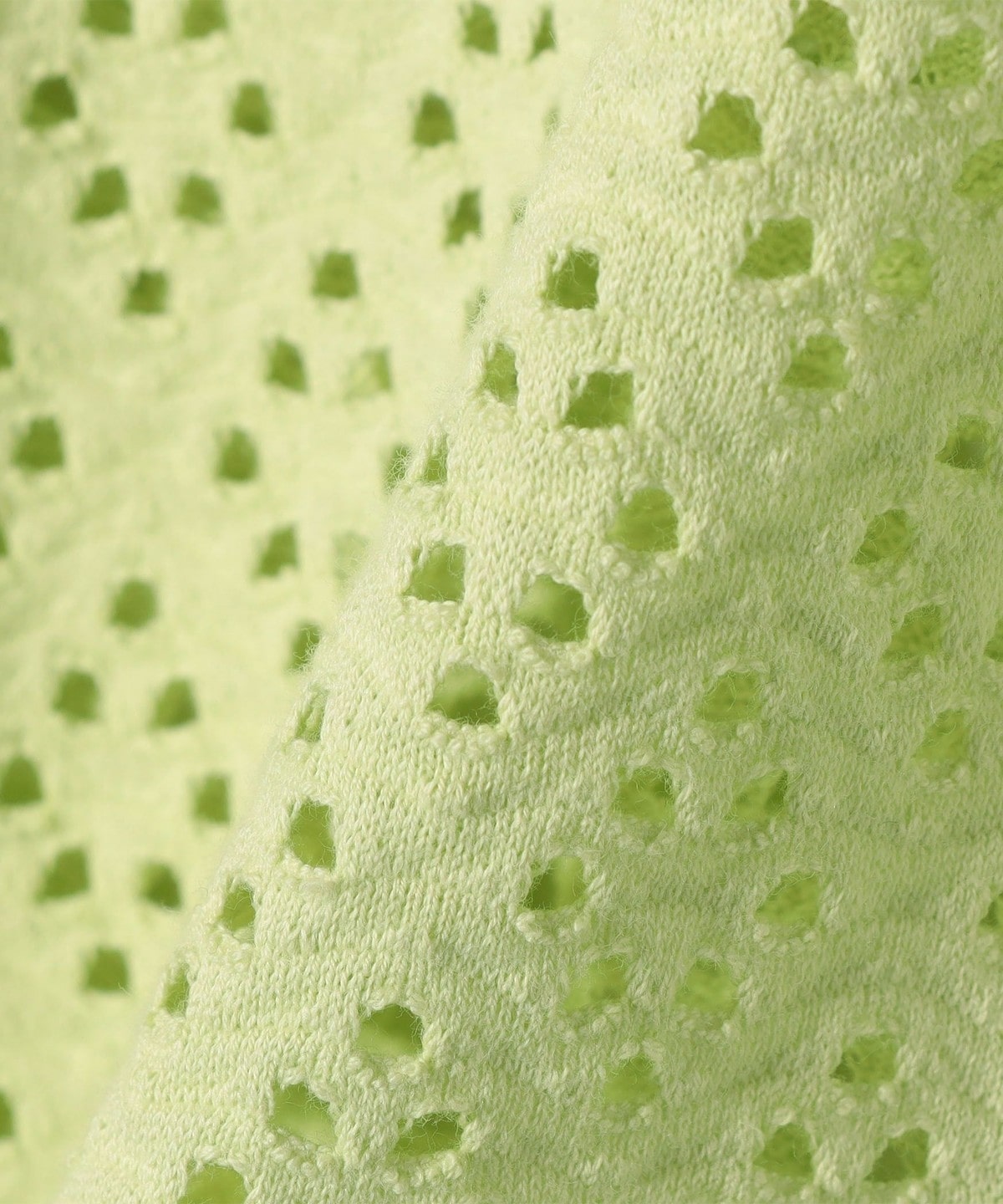 アイレット素材とは、カットソージャガード天竺素材に特殊加工を施し、多彩なレースのような柄を表現したものです。