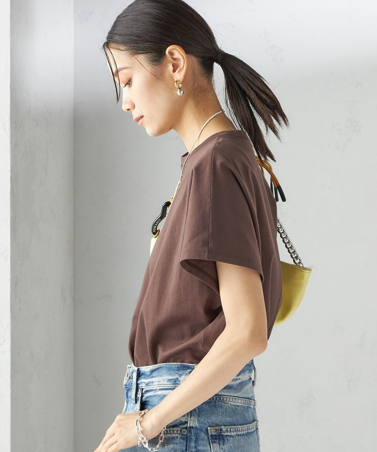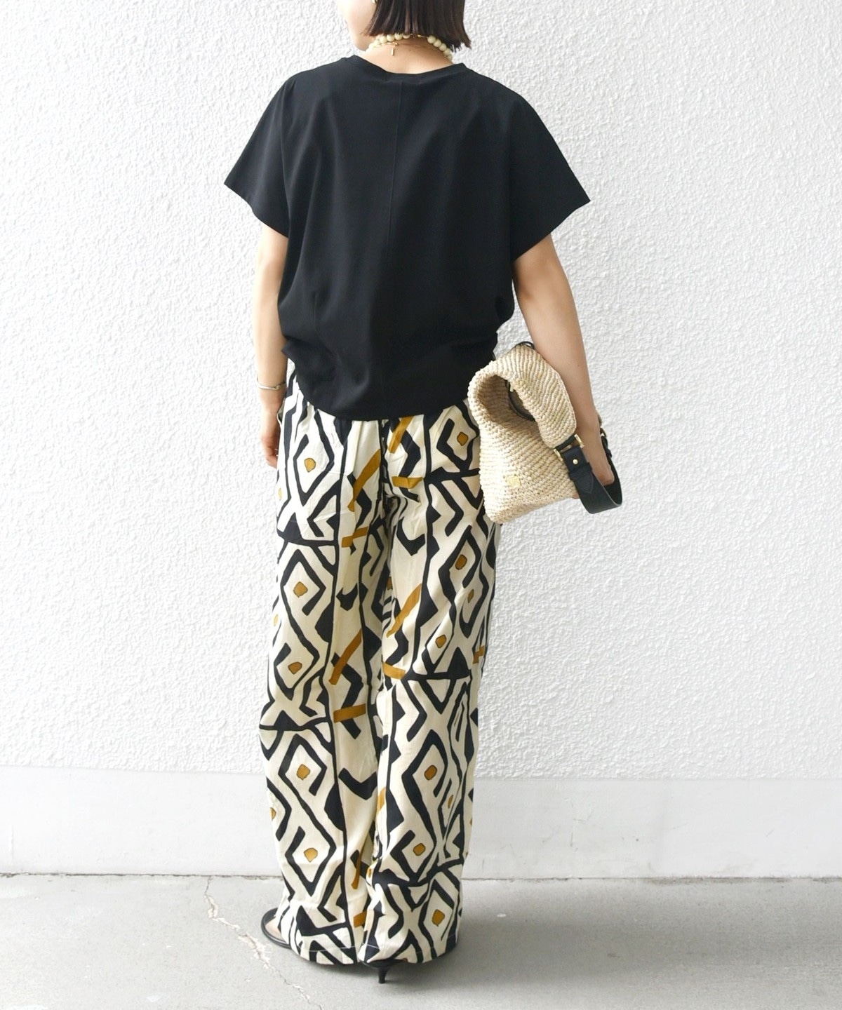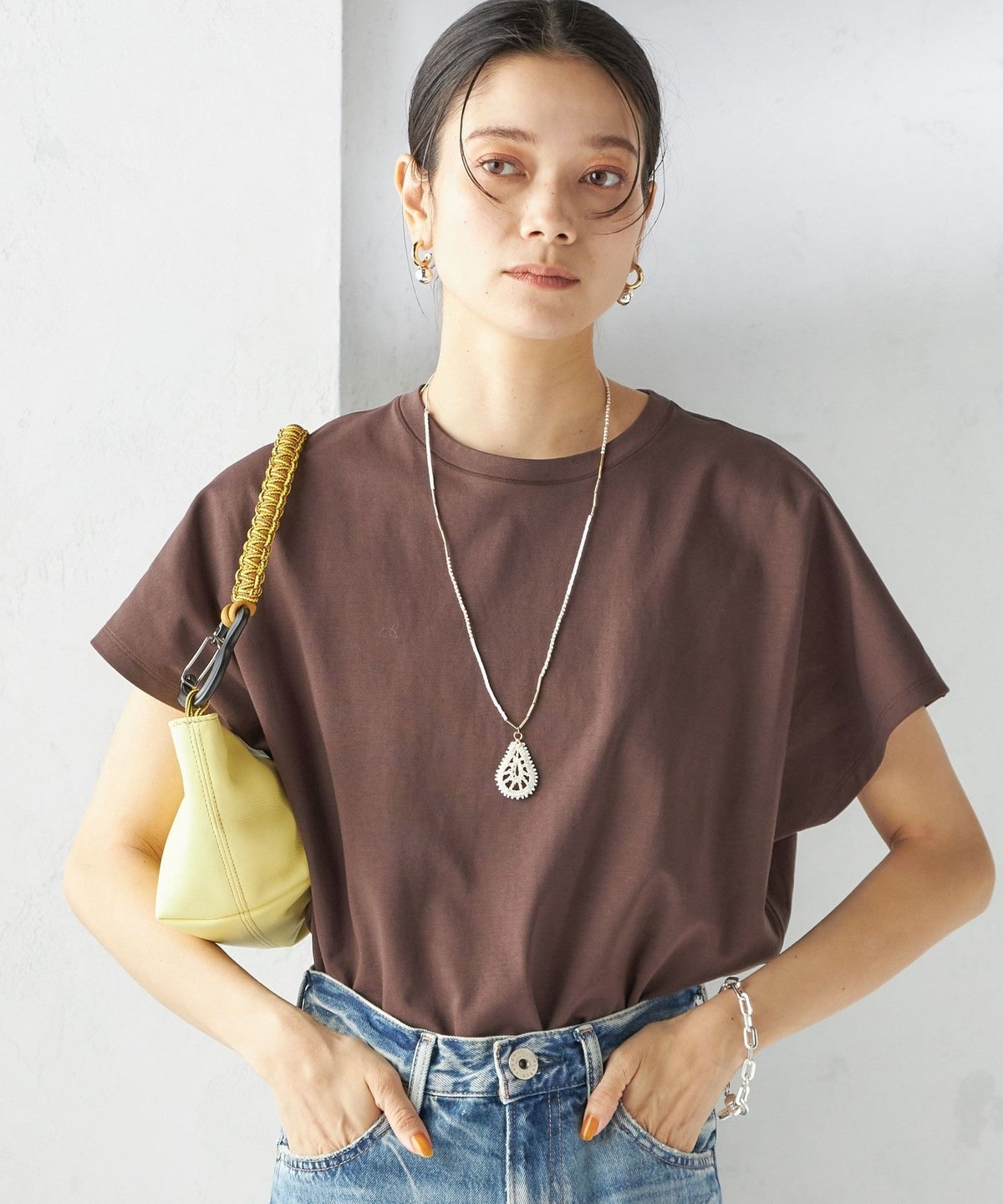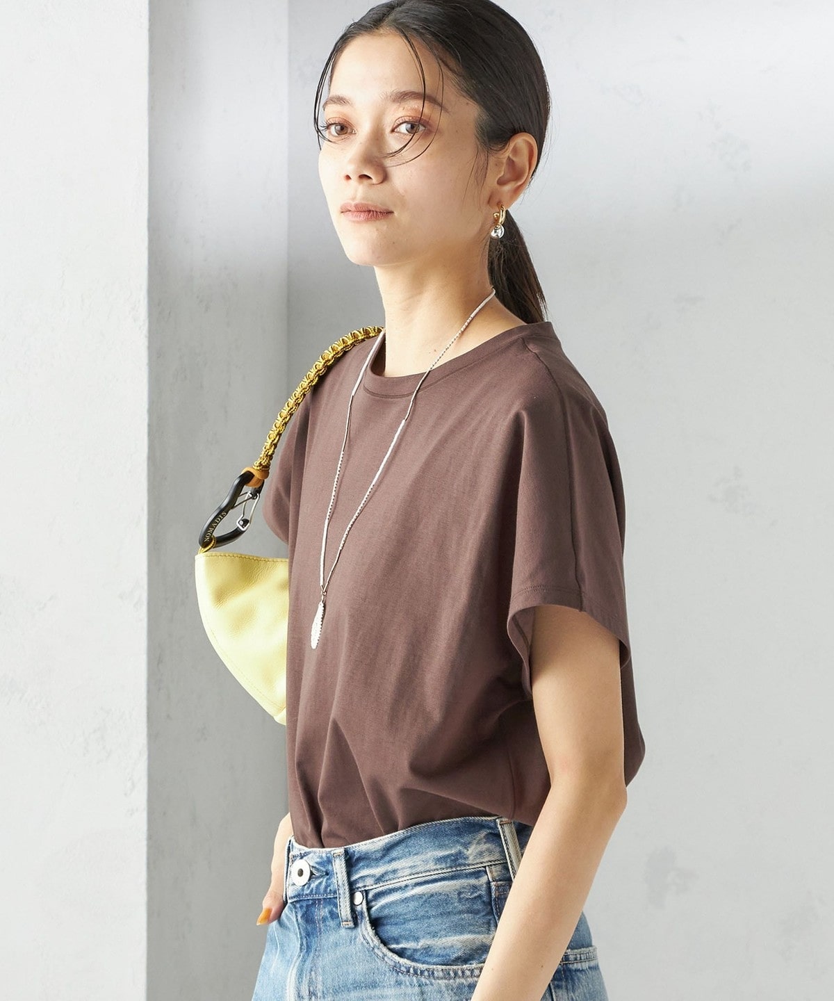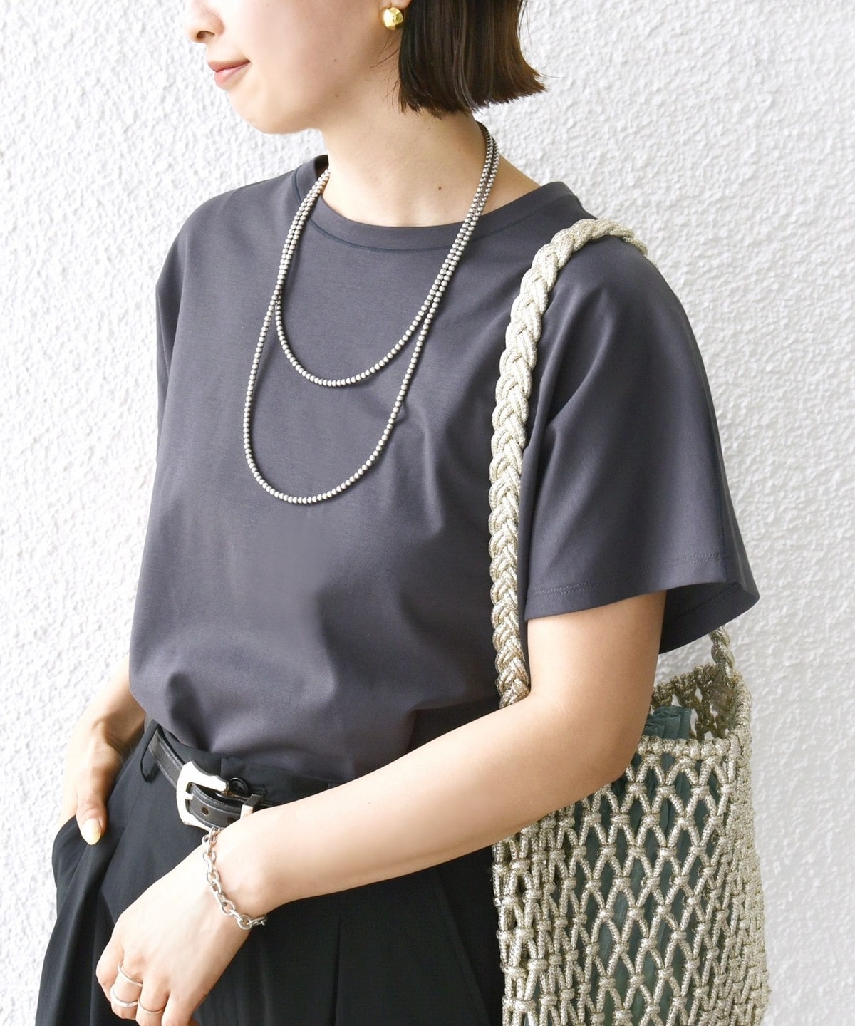半袖のドルマンスリーブで程よくゆったりとしながらも、様々なボトムに合わせやすいショート丈です。