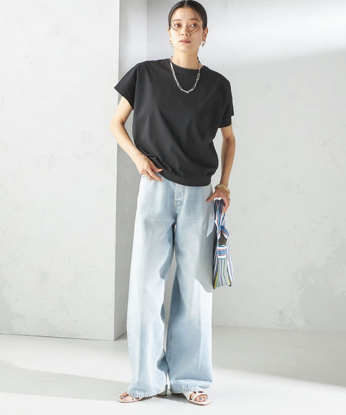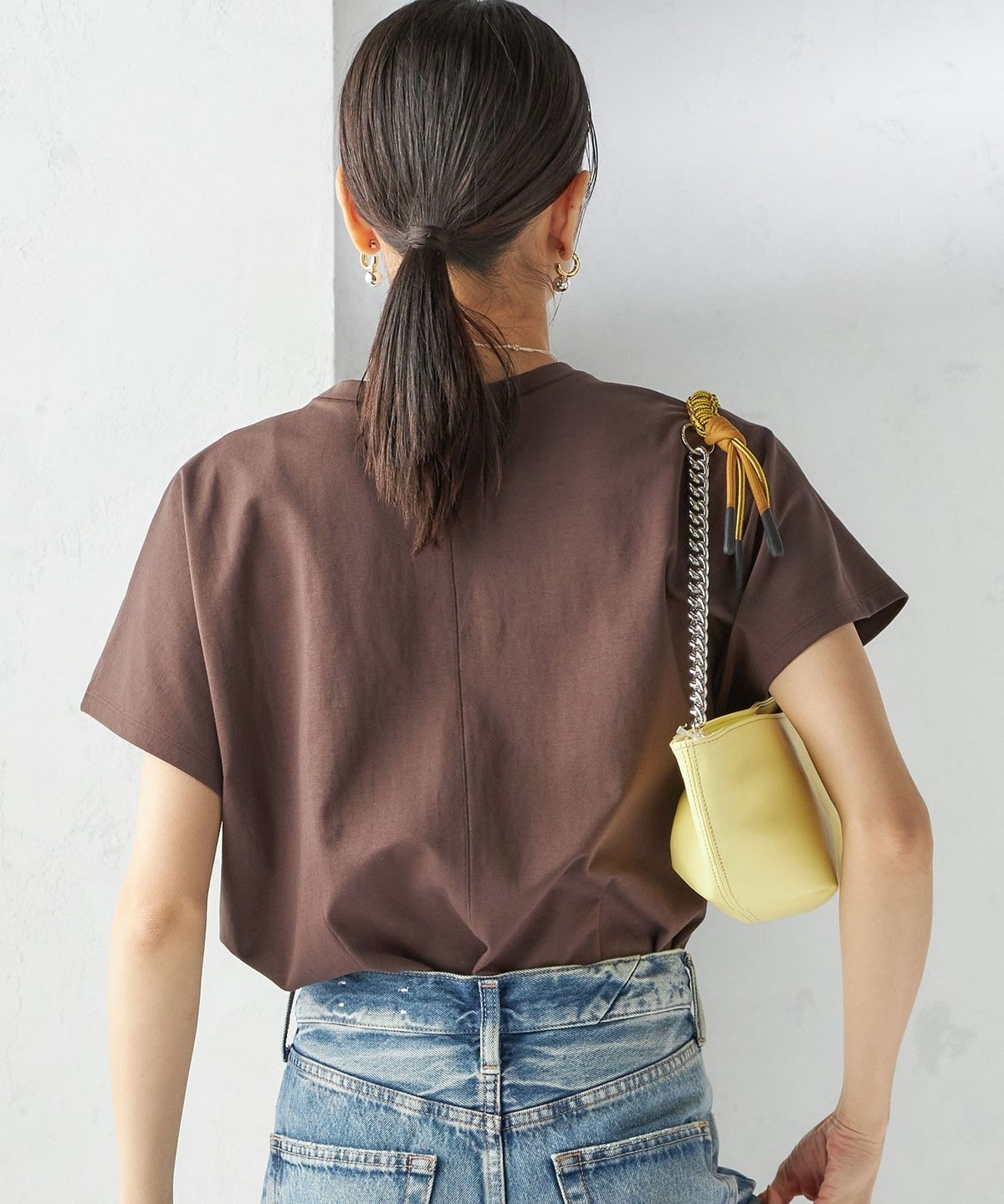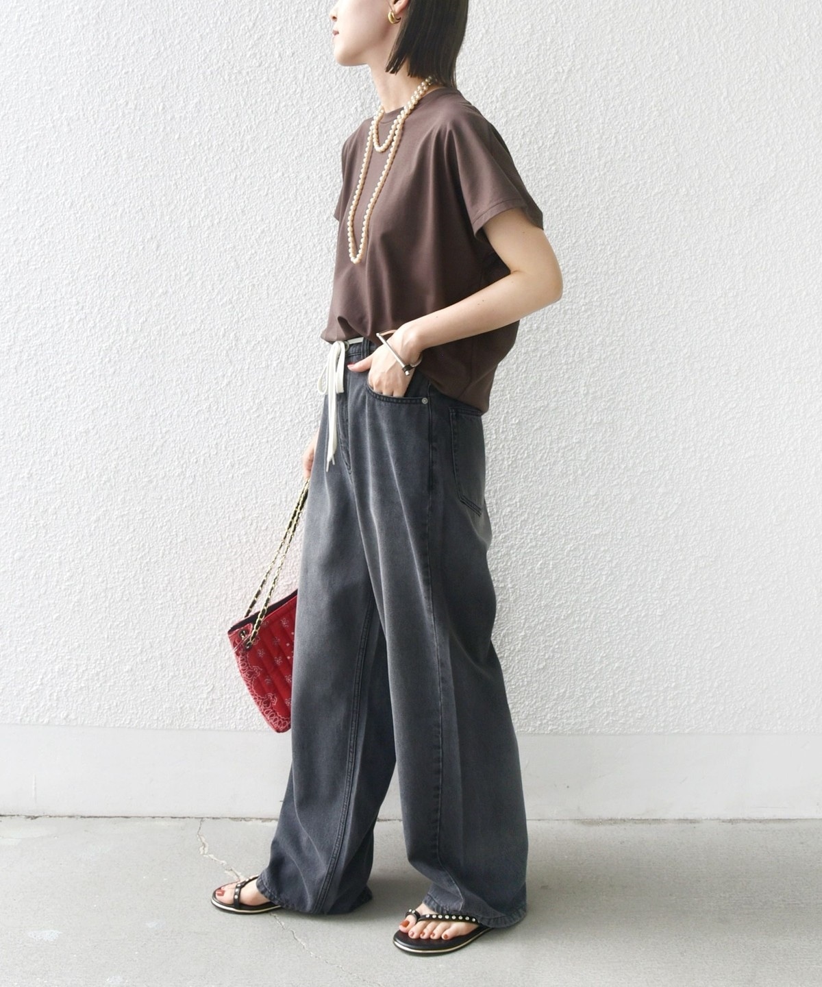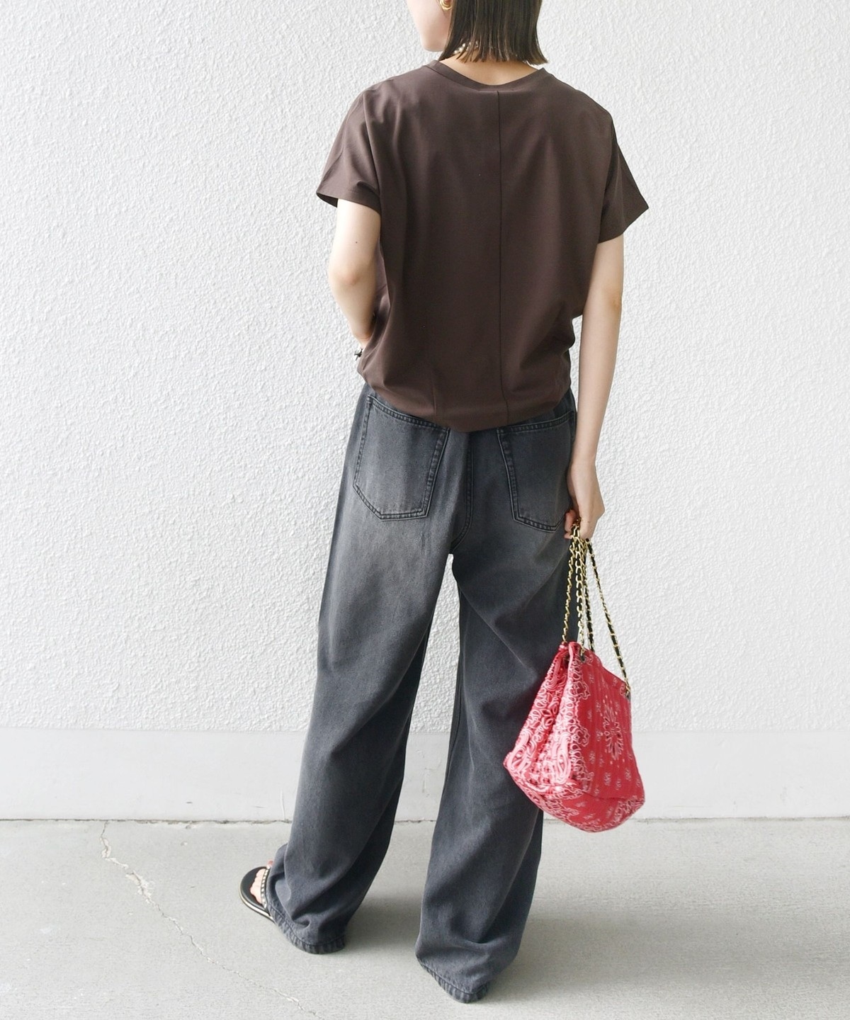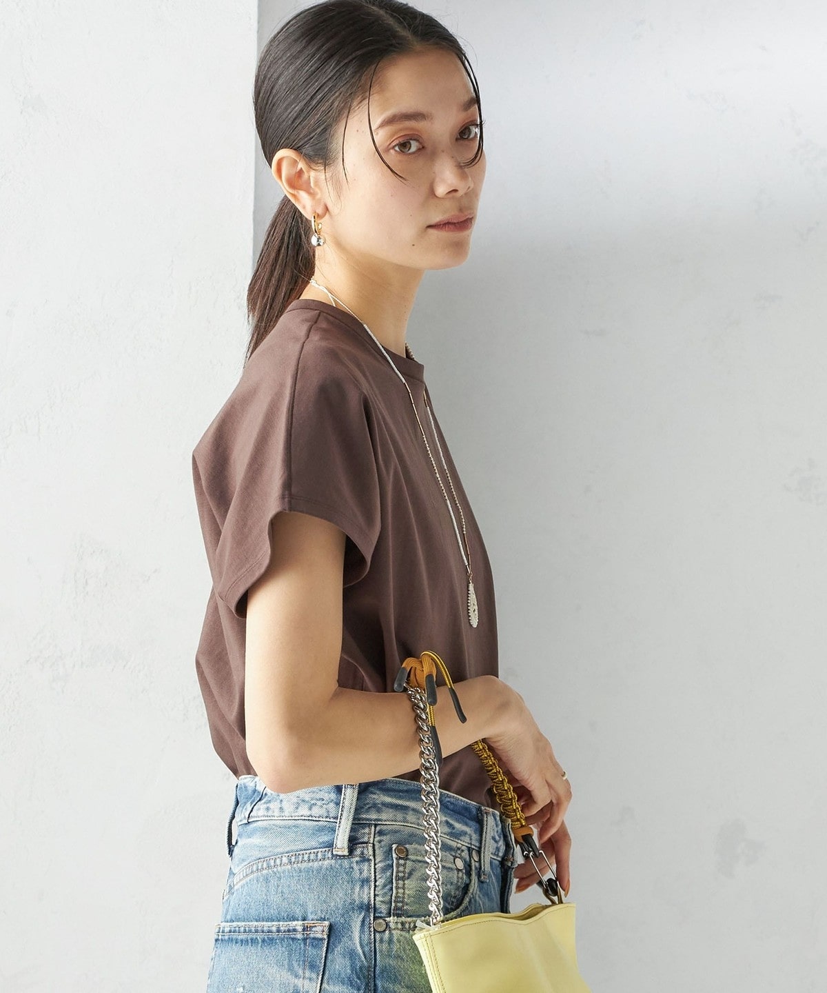 半袖のドルマンスリーブで程よくゆったりとしながらも、様々なボトムに合わせやすいショート丈です。