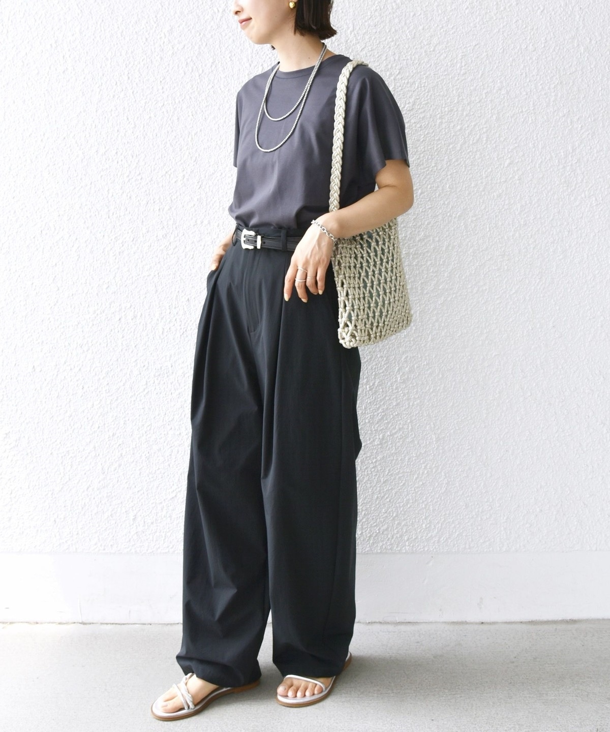 程よい肉感の生地は透けにくく、ハリがあるので身体のラインをカバーくれて、シワになりにくいことも特徴です。