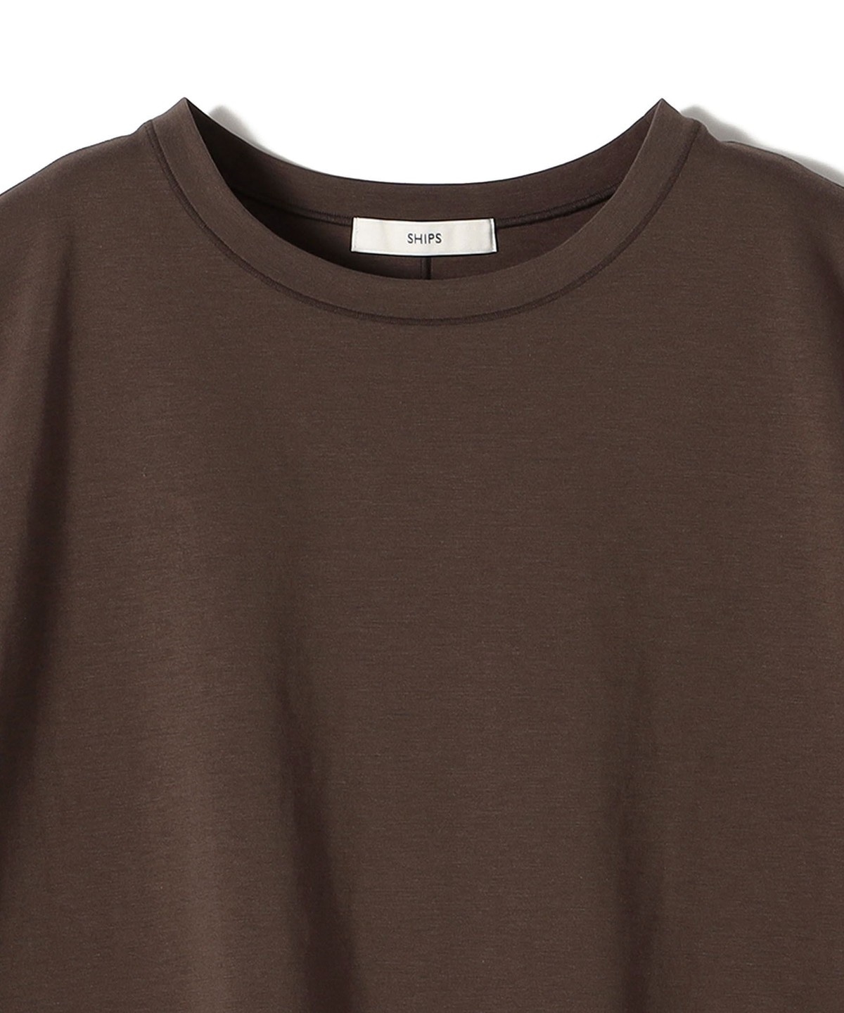 ネックは詰まり過ぎず品のあるクルーネックのデザインに。