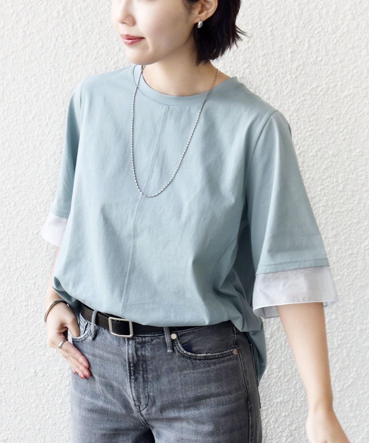 袖のドッキングデザインがポイント!夏のお役立ち機能性カットソー