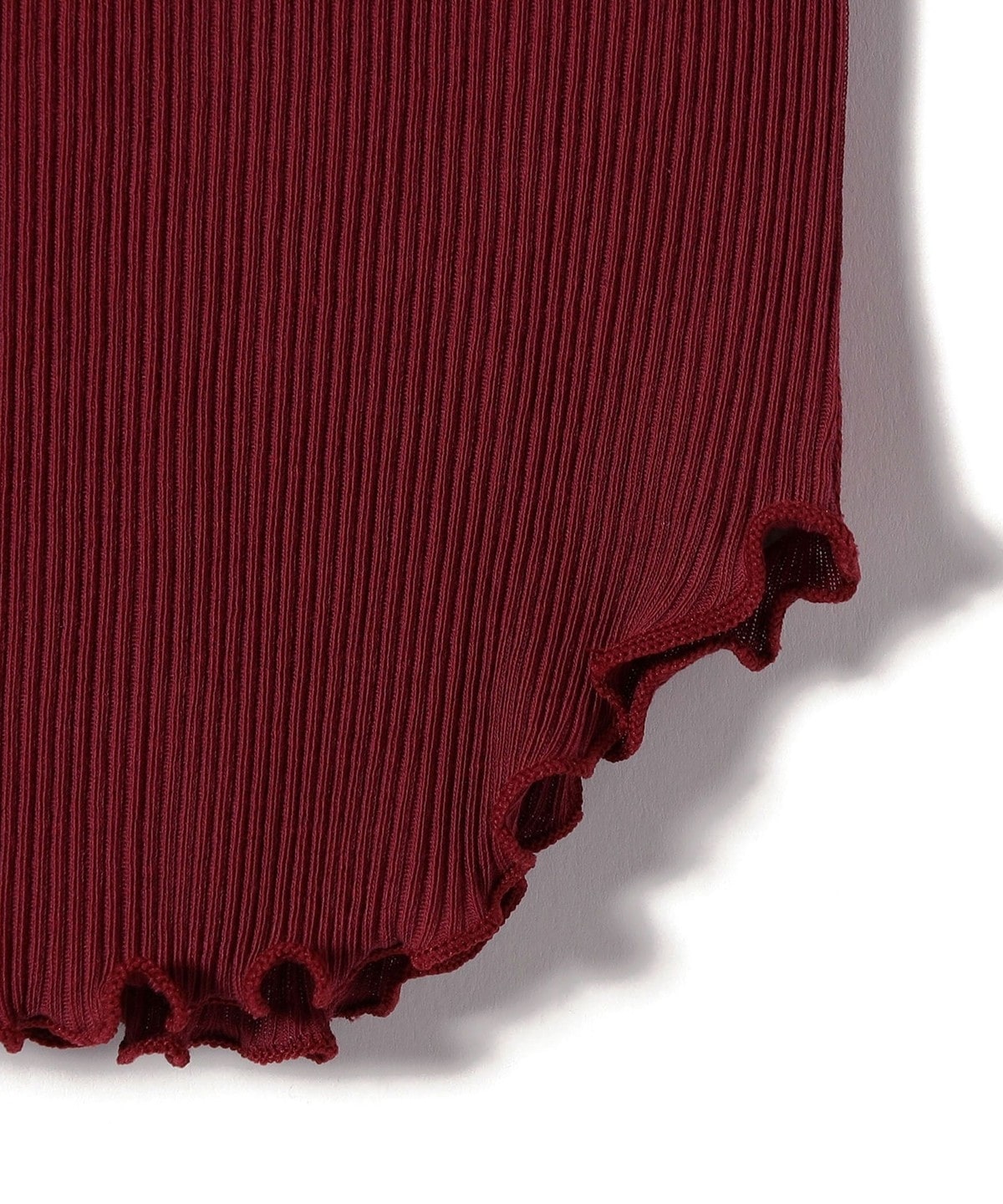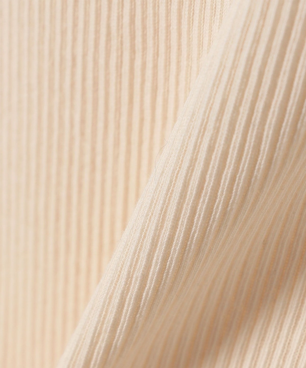 アメリカ産の超長綿を丸胴編み機で編み立てた肌離れのいいサラリとした質感の繊細なリブ生地を使用。