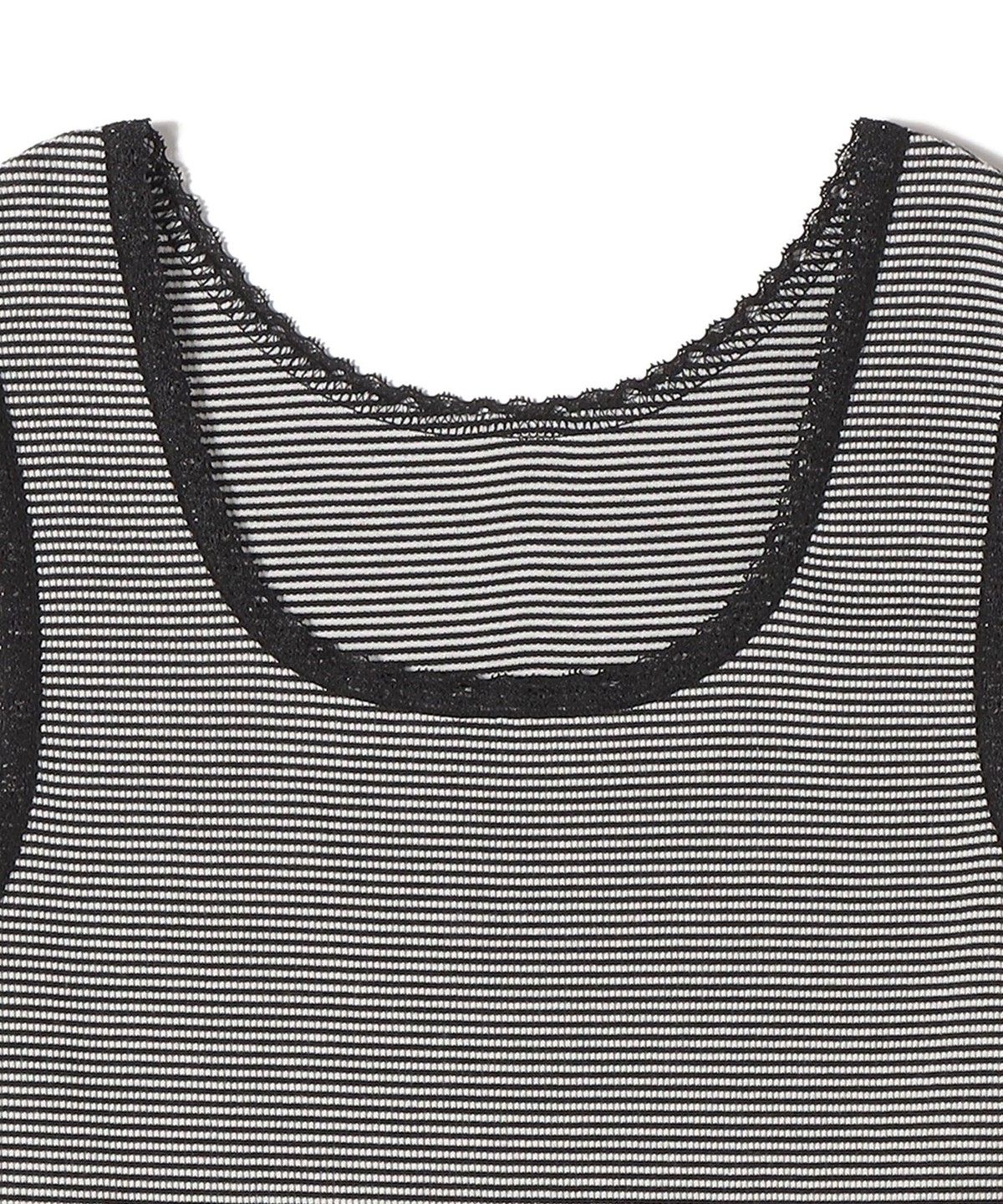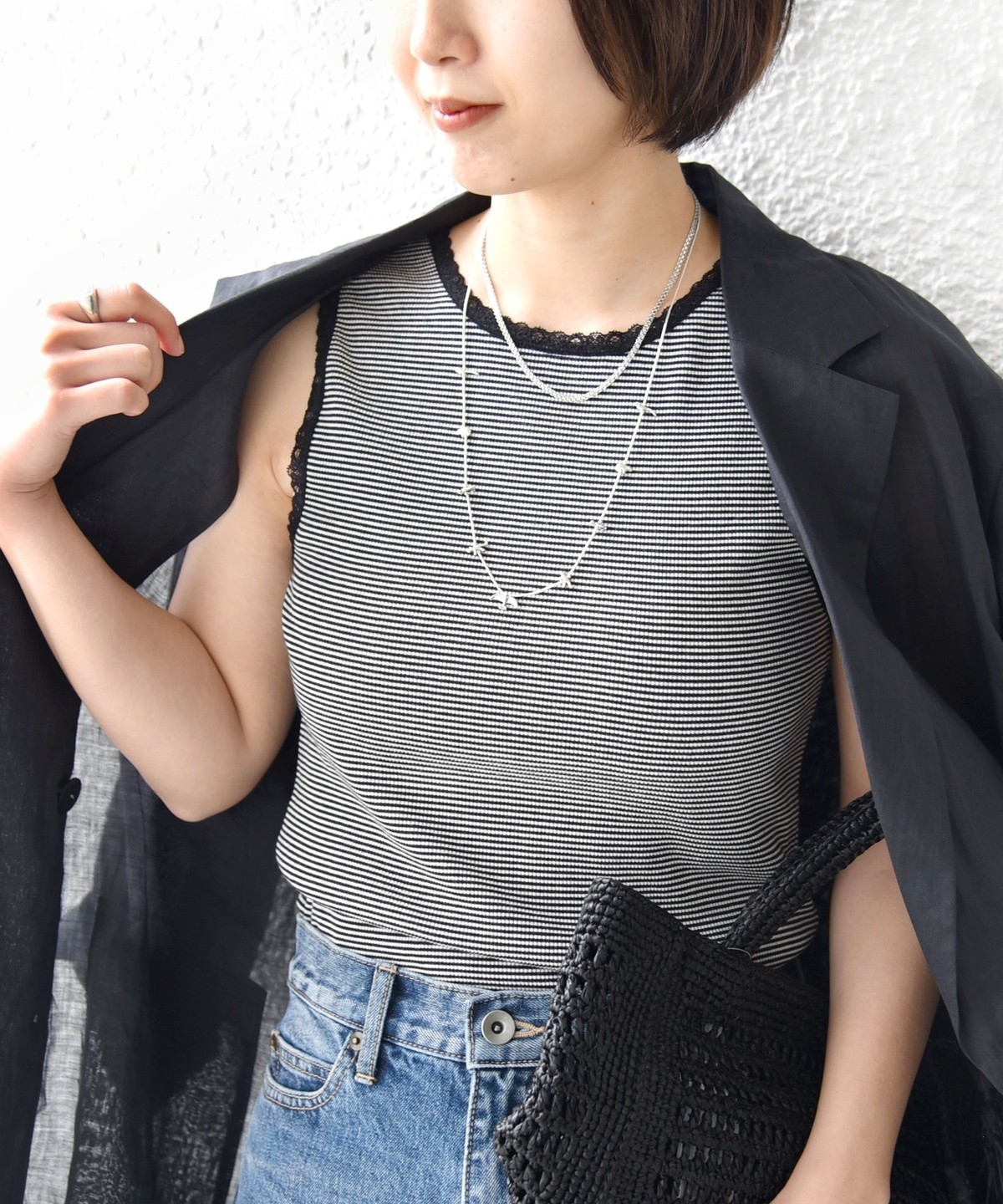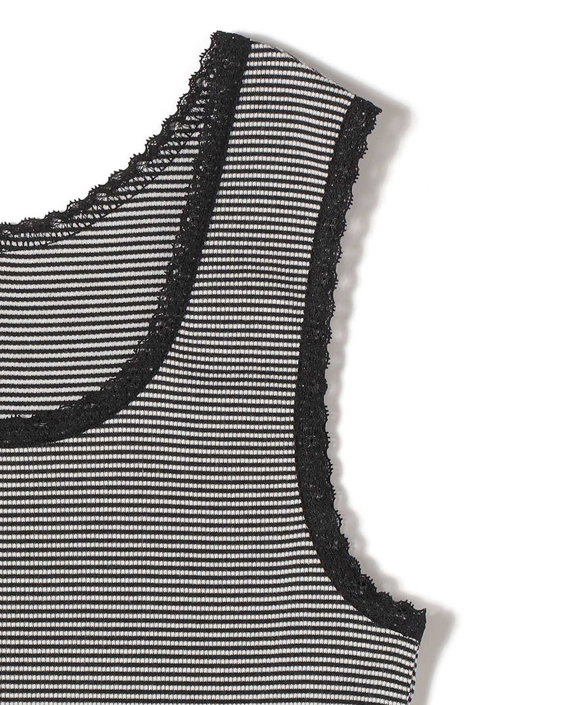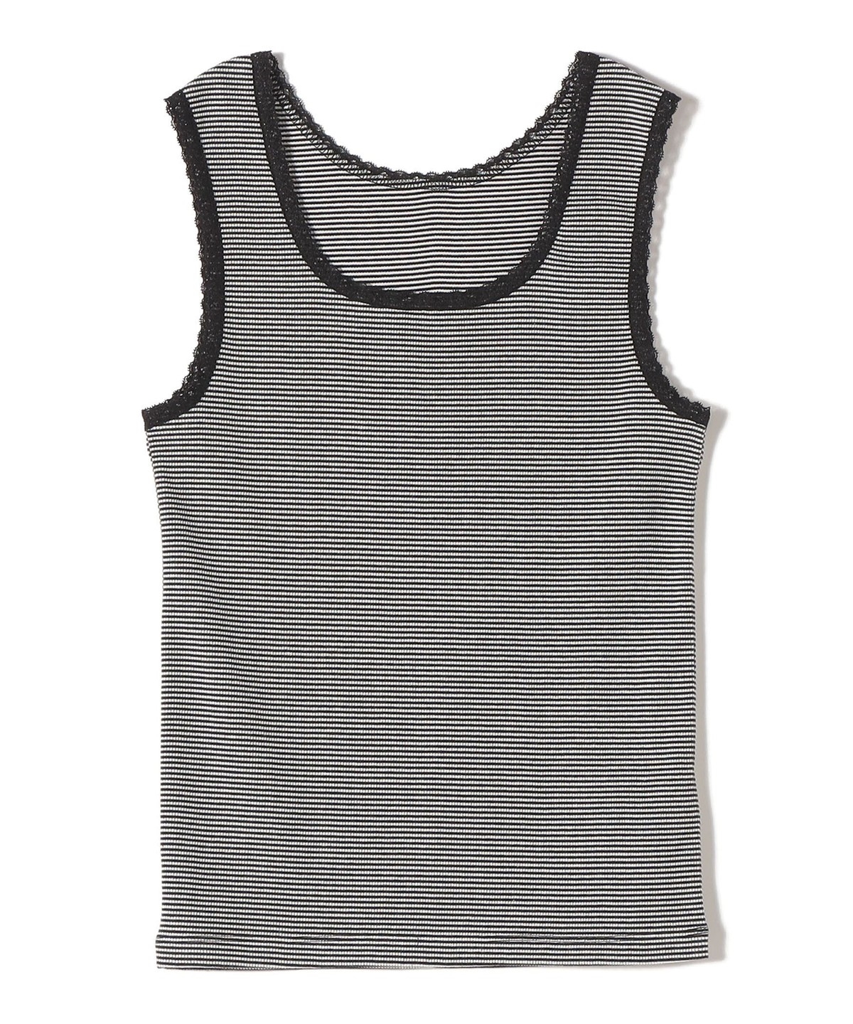 〈手洗い可能〉ボーダー レース トリミング 2WAY タンクトップ