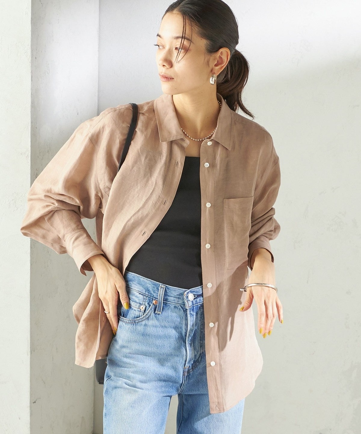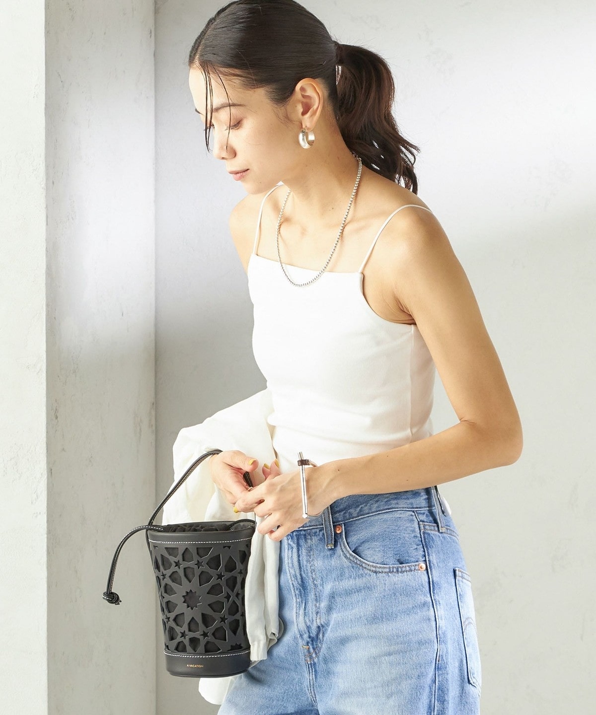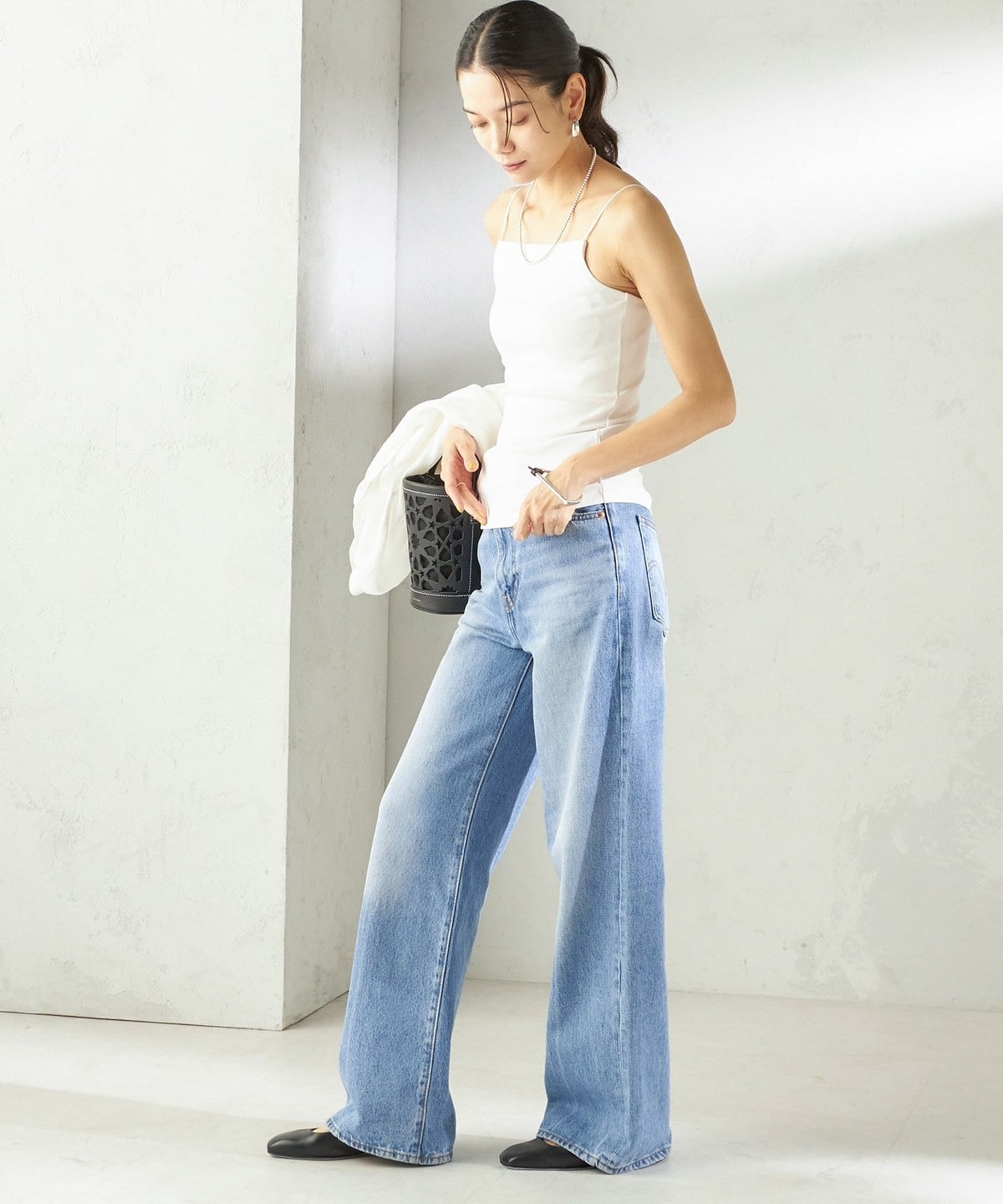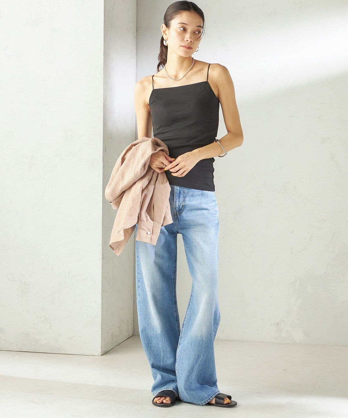 シャツやサマーニットのインナーとしてはもちろん、透け感のあるトップスと合わせてヘルシーな肌見せもおすすめ。