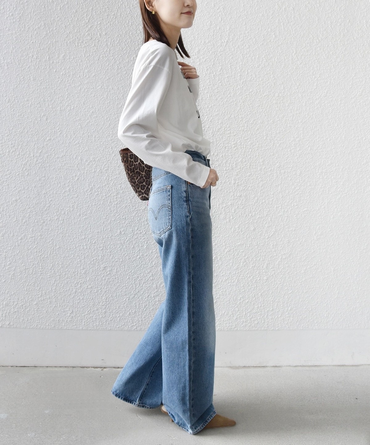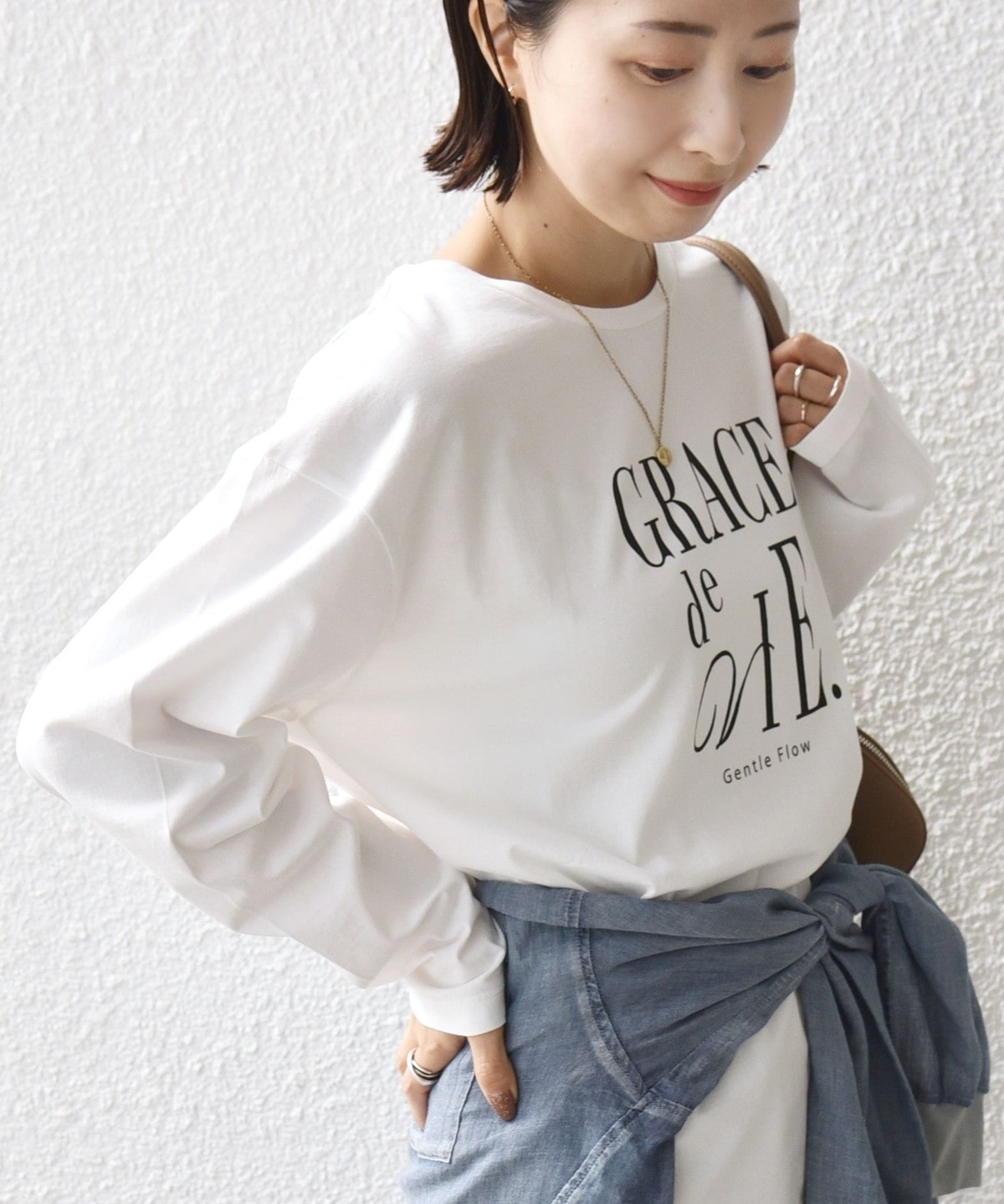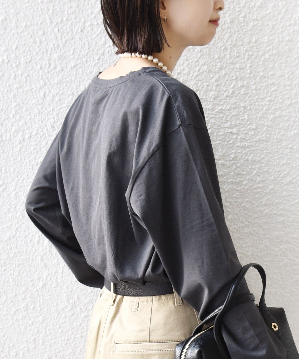 素材の柔らかさのおかげで生地に落ち感がでて、着用すると自然に抜け感がでます。