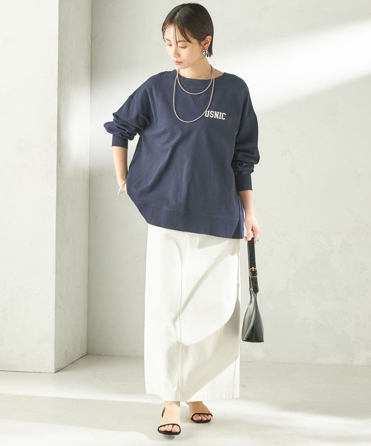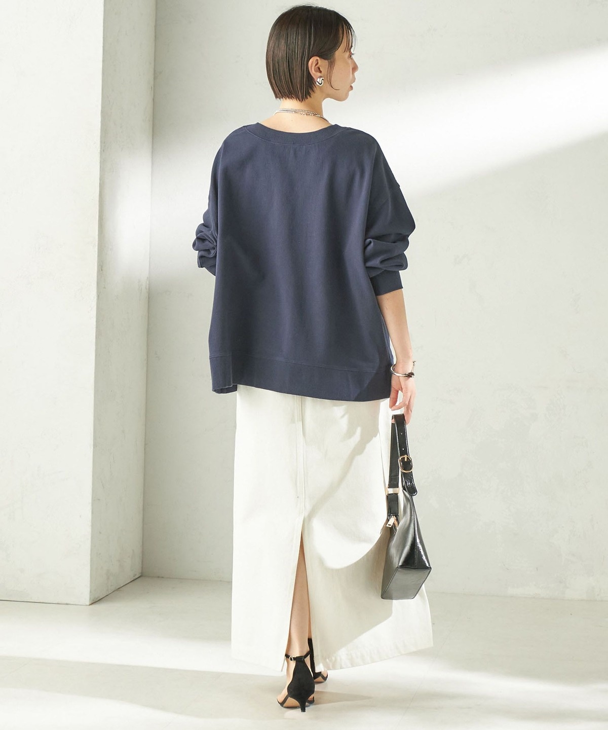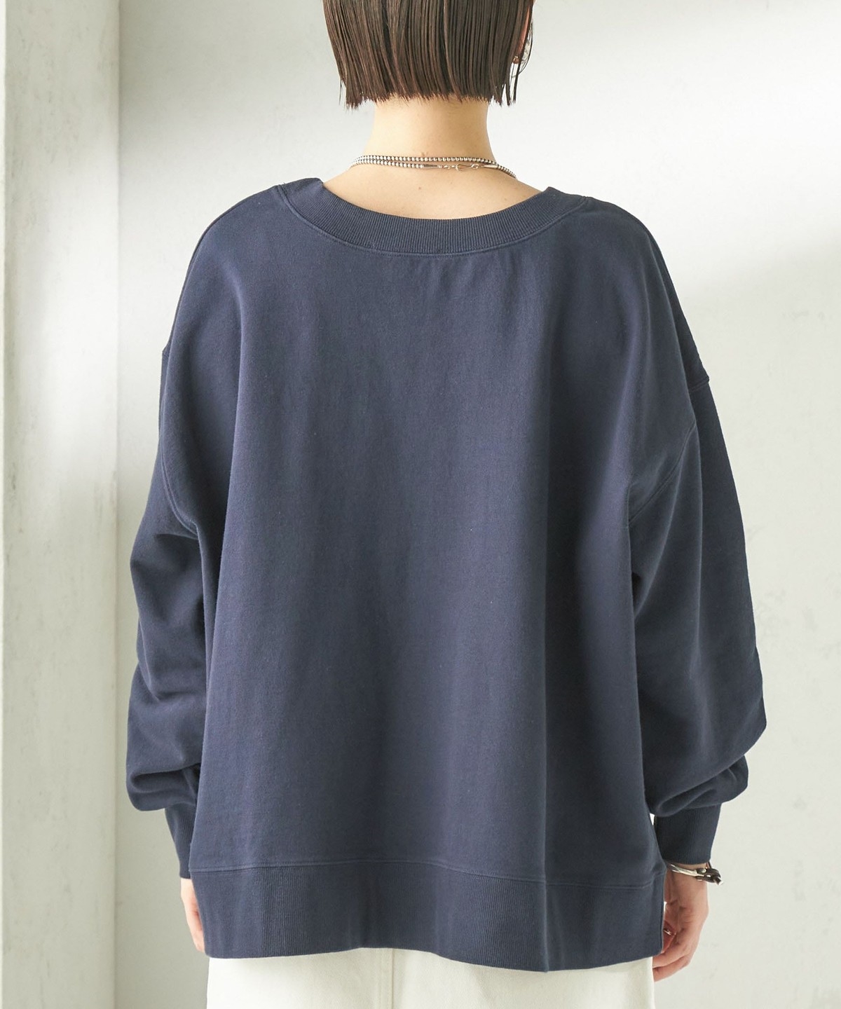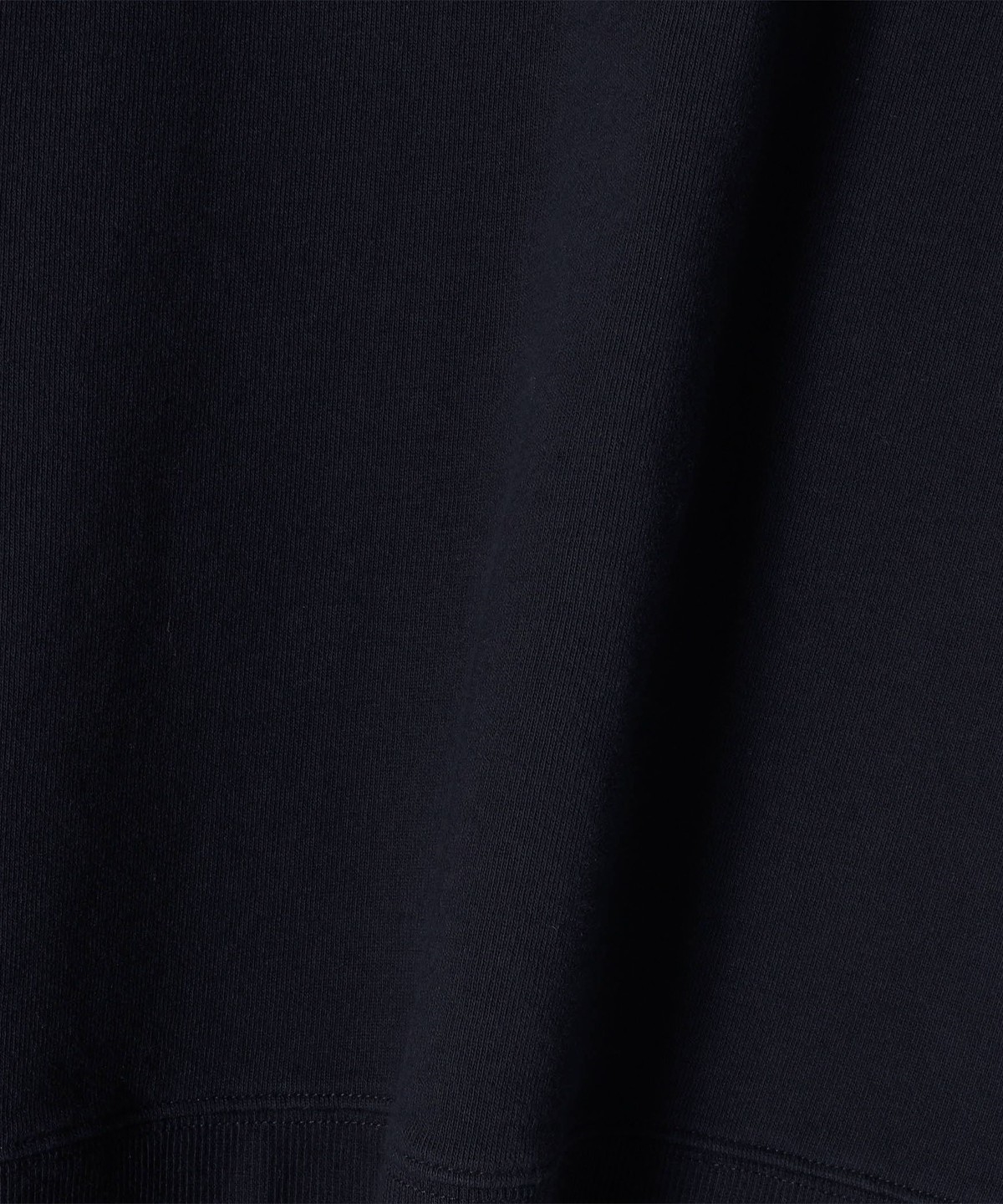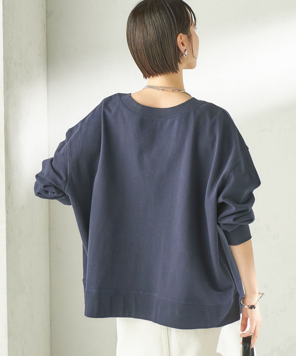 ワイドな身幅と春先まで長く着れるよう、軽やかなミニ裏毛を使用。