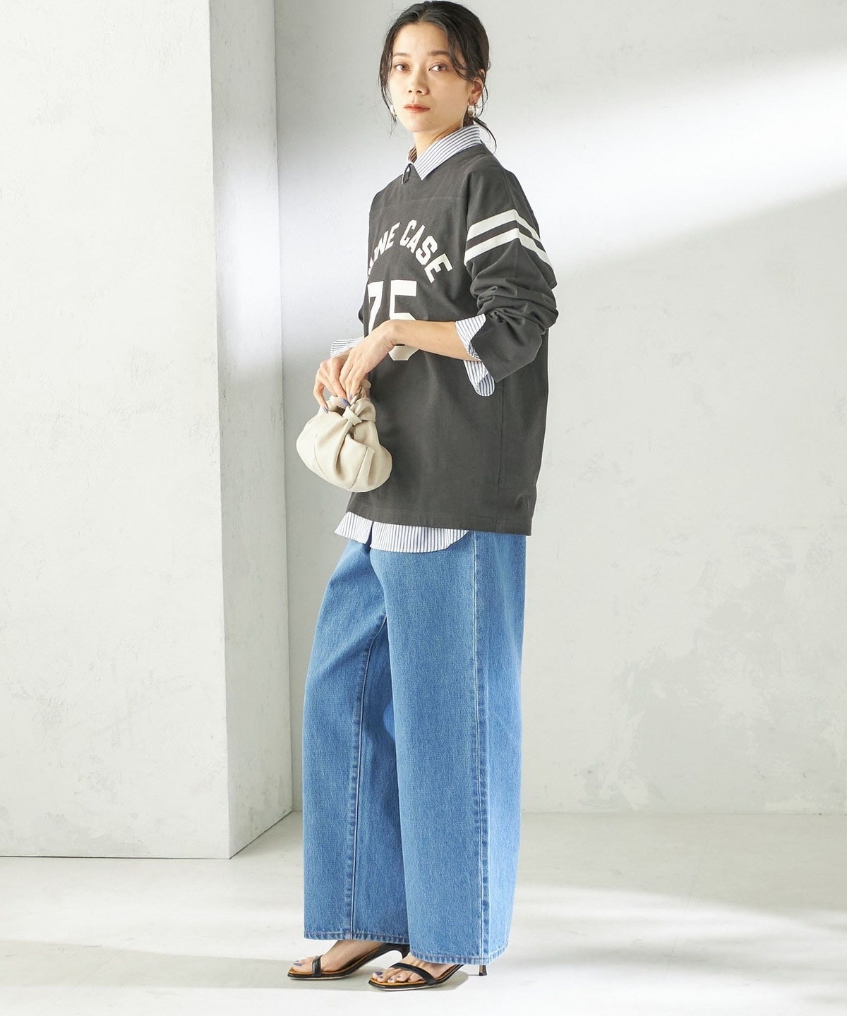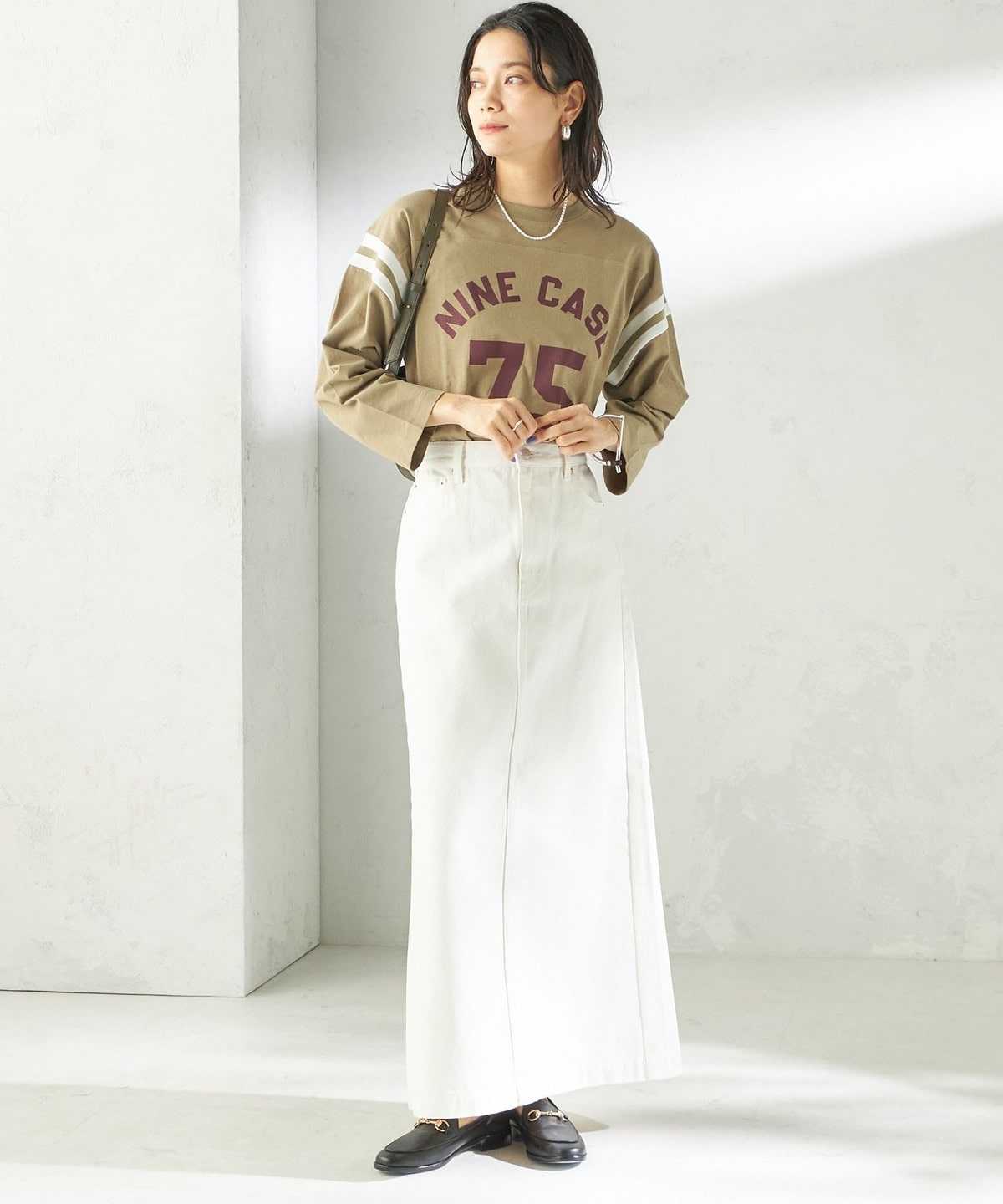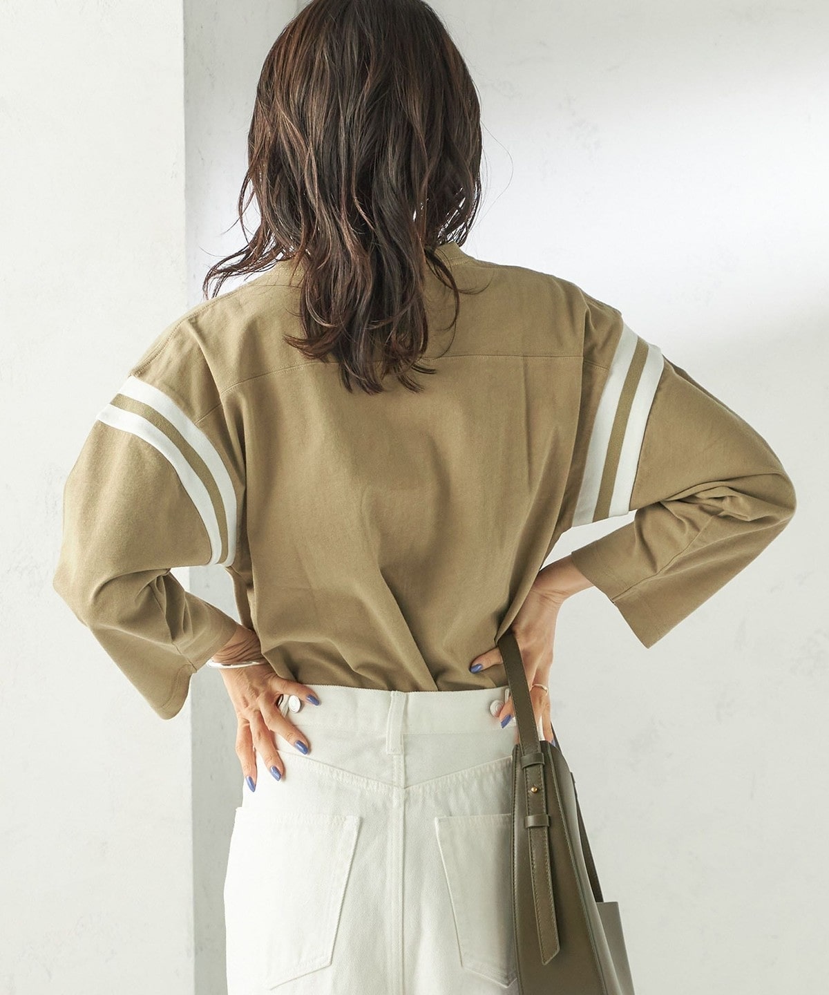 程よいルーズ感で、パンツとスカートどちらも合わせやすい一枚になっています。