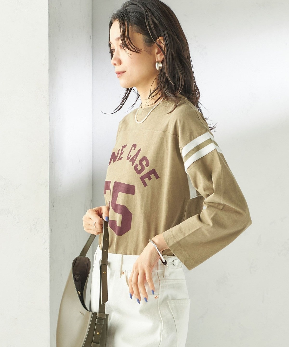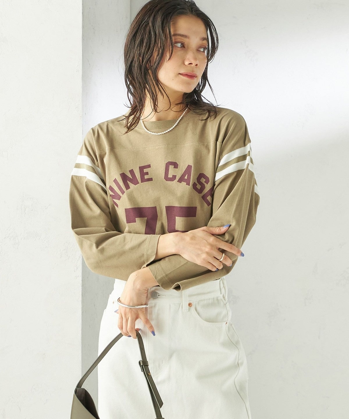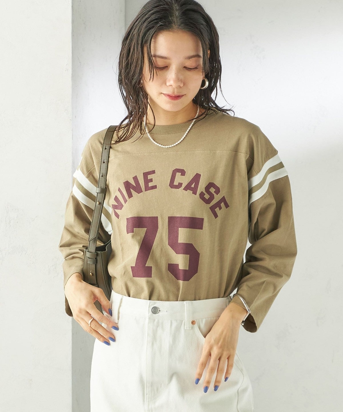 2. 《予約》NINE CASE:〈洗濯機可能〉七分袖 フットボール TEE ベージュ