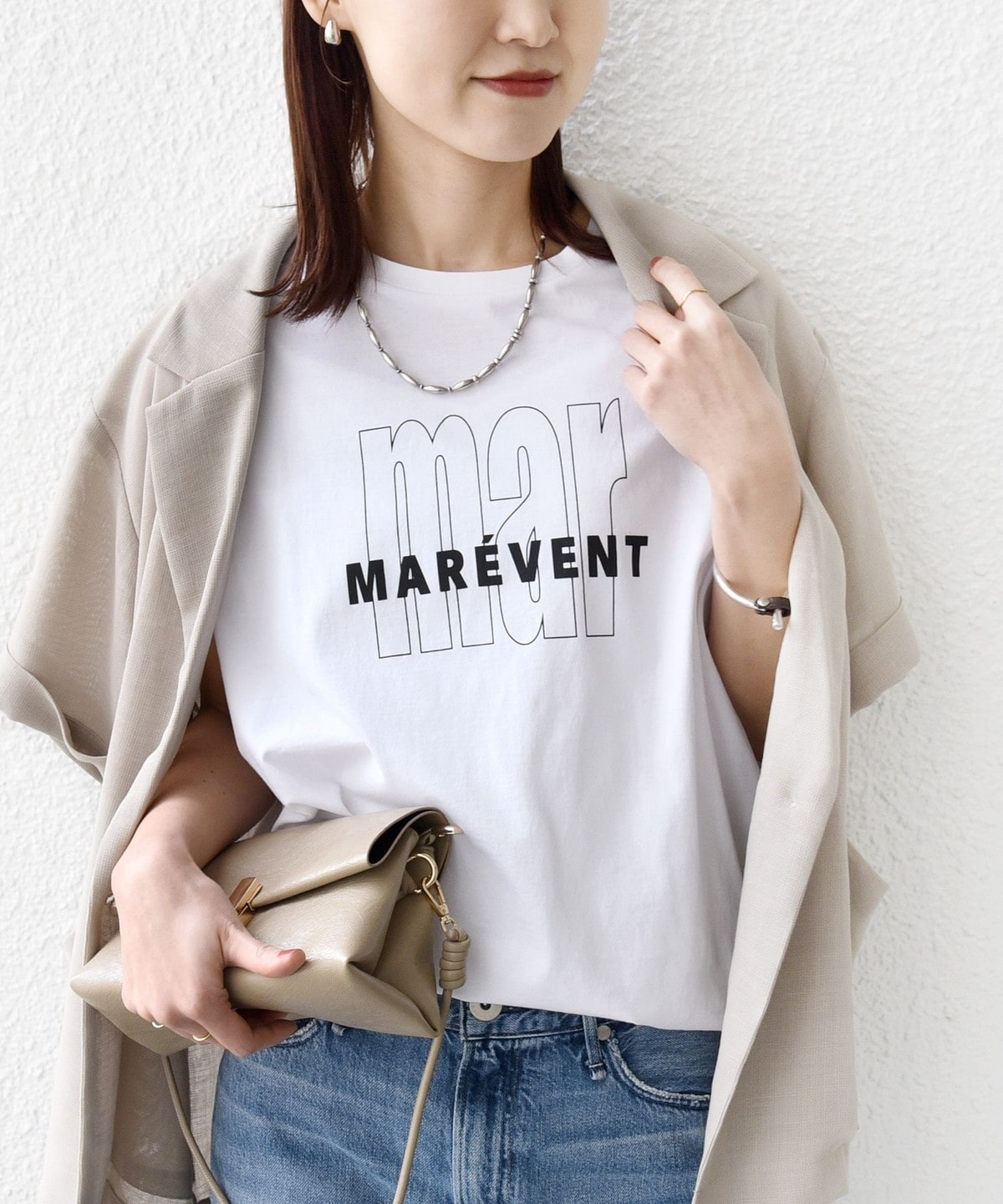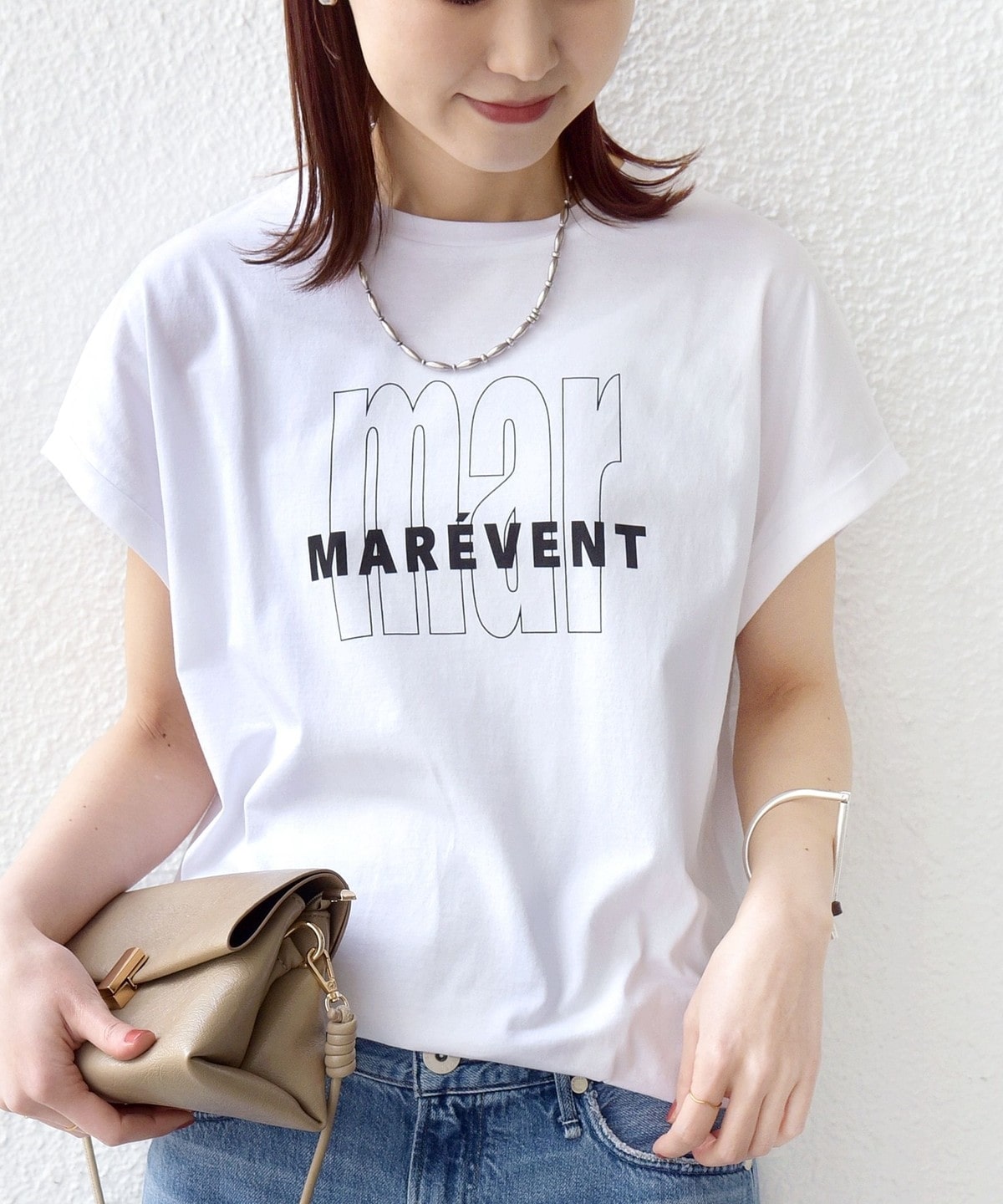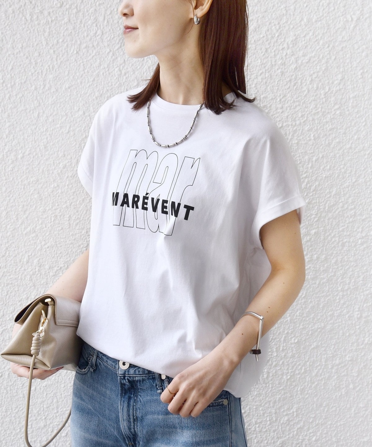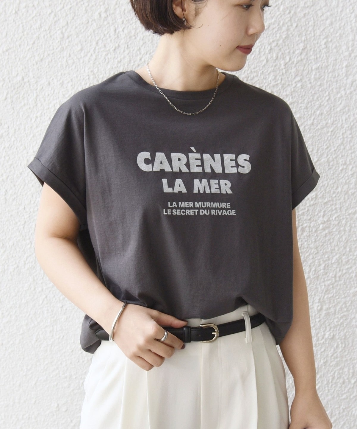 カジュアルに見えがちなロゴTシャツも柔らかい手触りと大人っぽいきれいな印象の素材感に仕上げました。