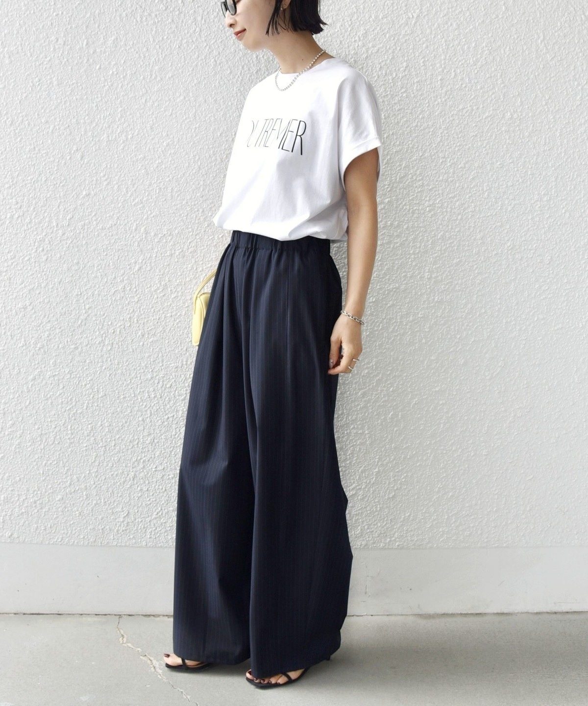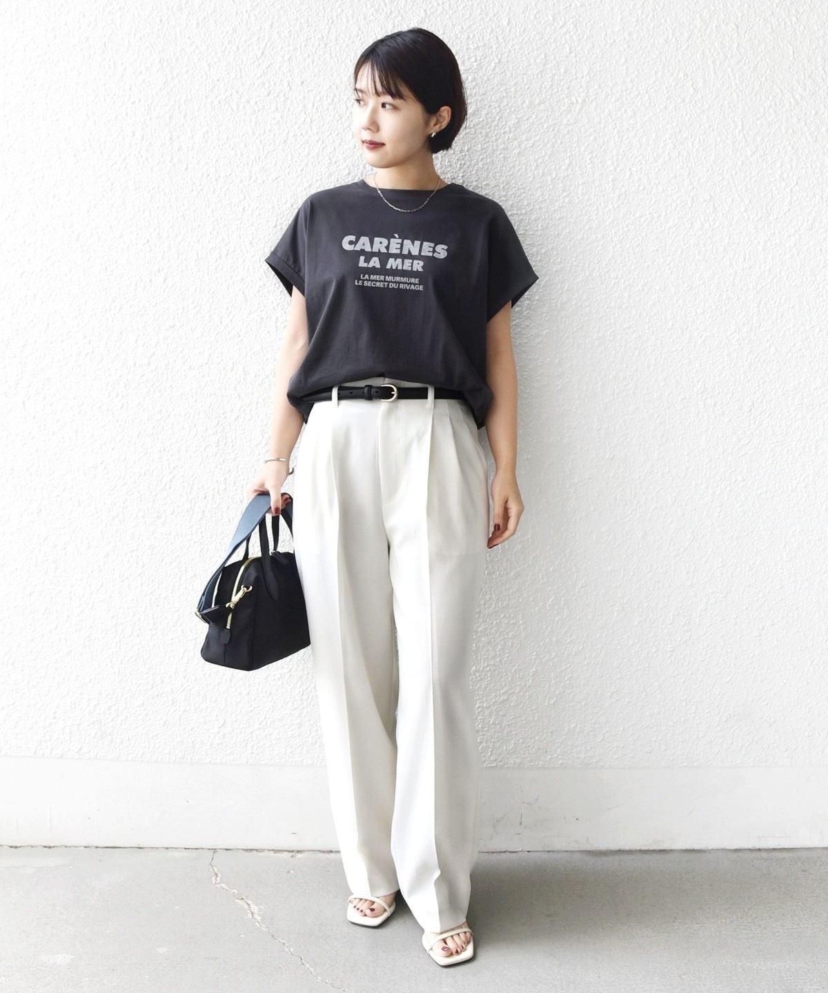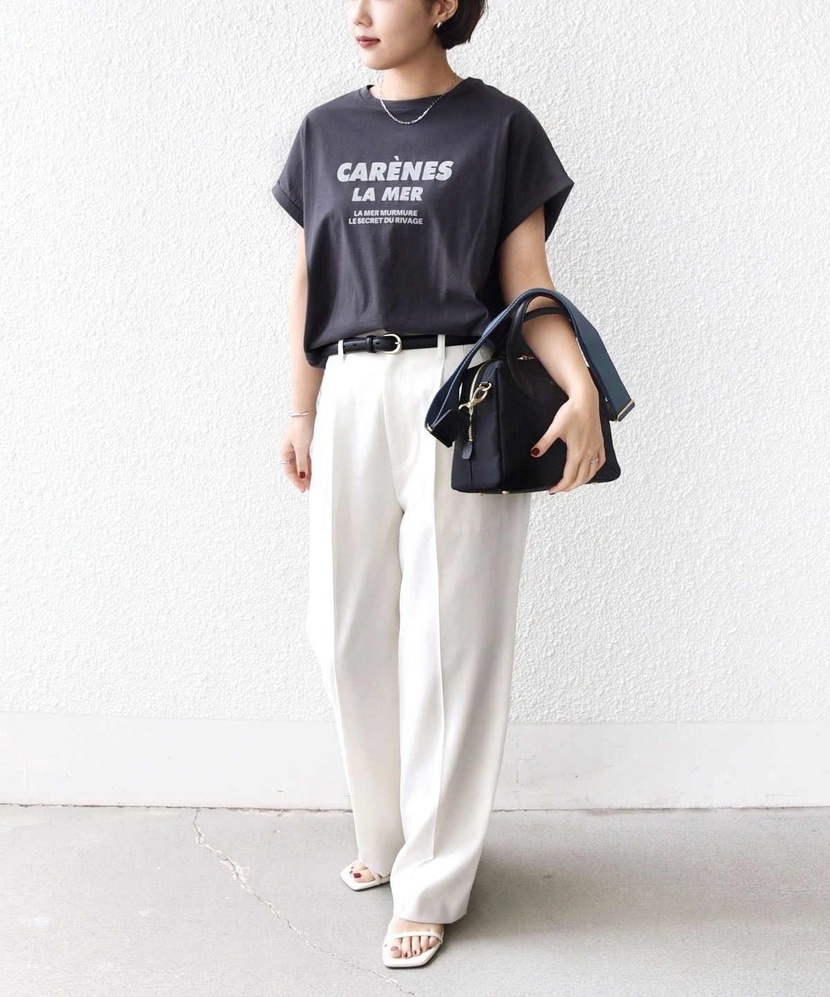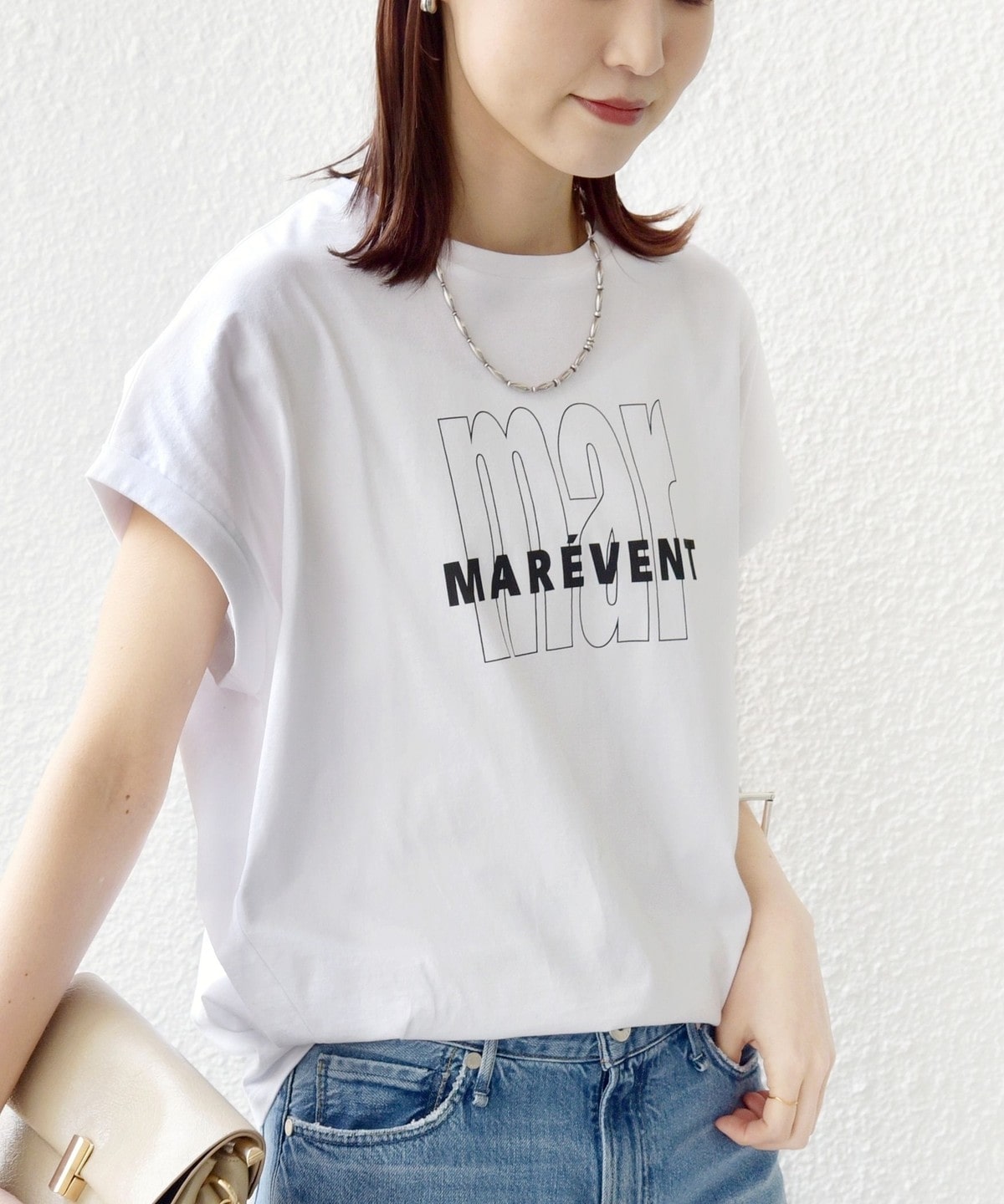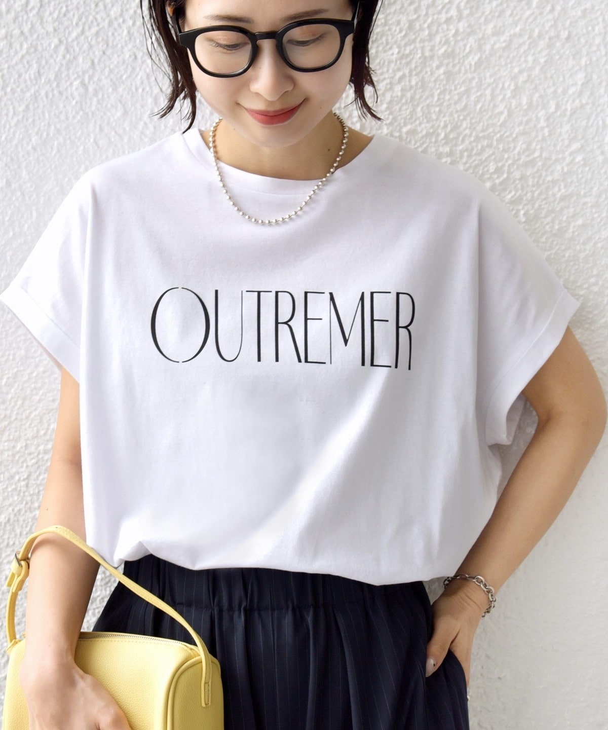 袖を折り返しにしたことでさっぱり見えがちな半袖Tシャツもデザイン性のある見え方に。